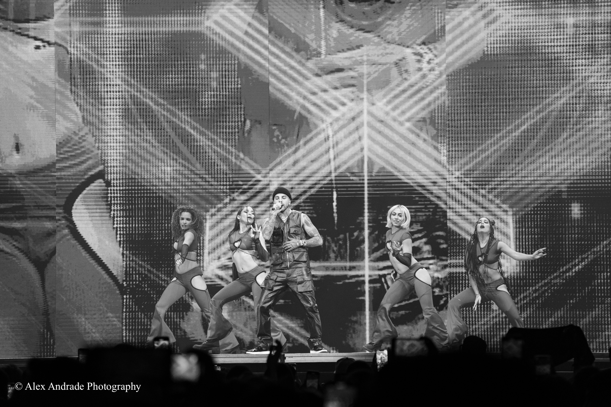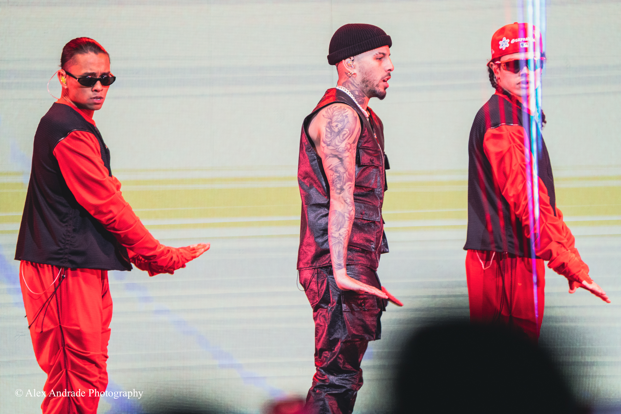 Rauw teased his audience by playing the next song having them guess the song that was about to play and joined in on que. Towards the ending of the show, he had his dancers help him amp up the fans by having each section high and low to sing his song for him. All you could hear were the lyrics being sung back to him along with screams when their section was next. His stage was one of the highlights of the night with streamers popping off into the audience, light beams circling into every section with every color turning SAP Center into a night club, and confetti exploding at the finale.