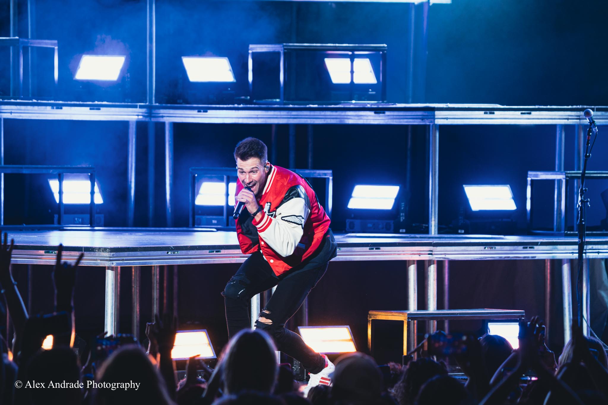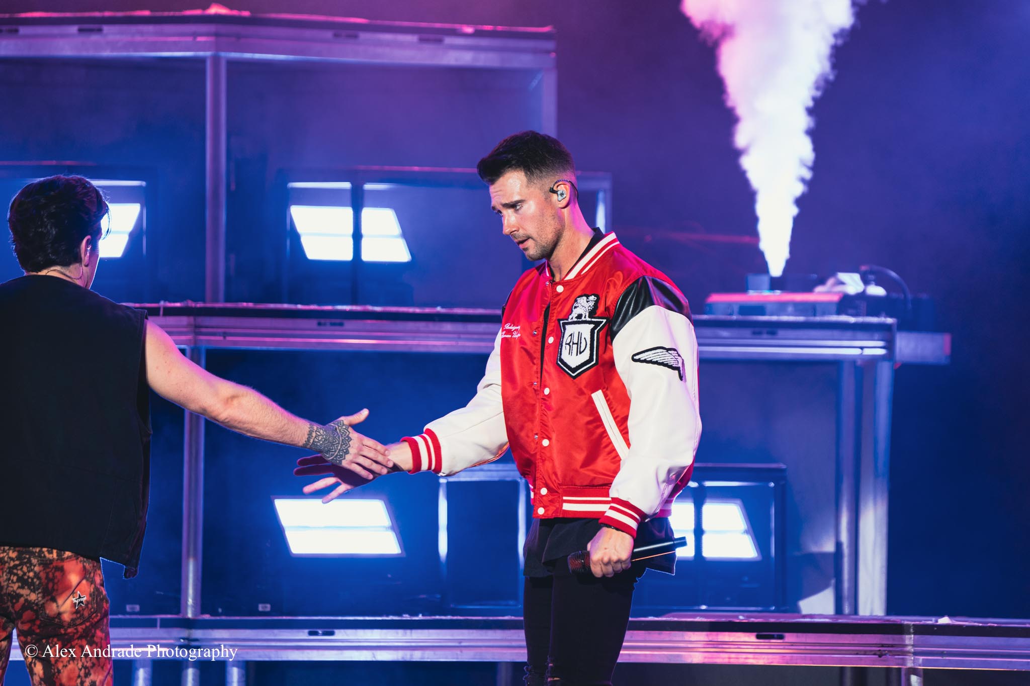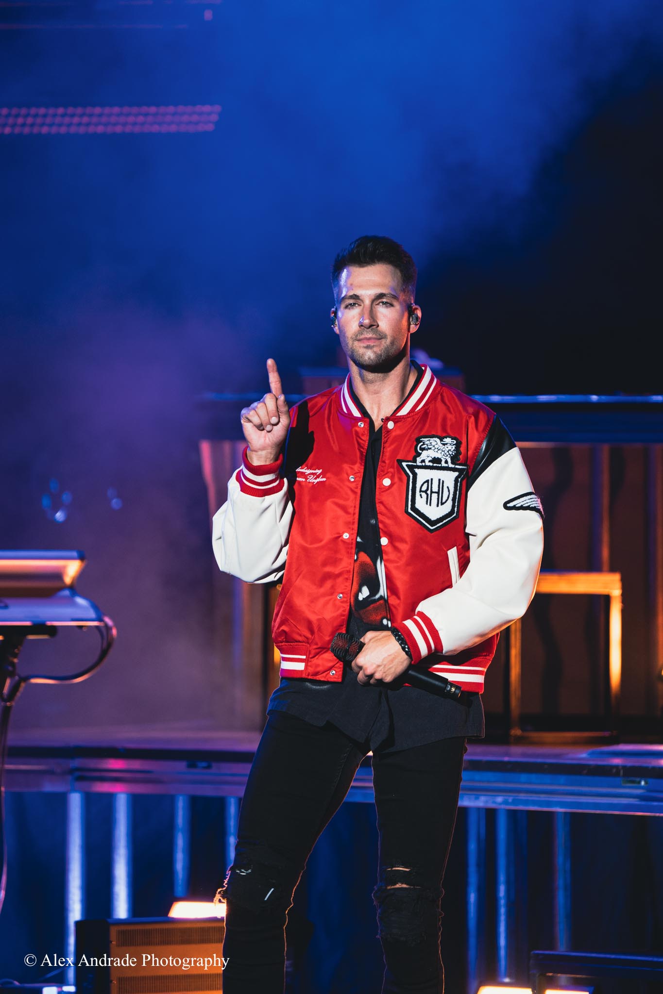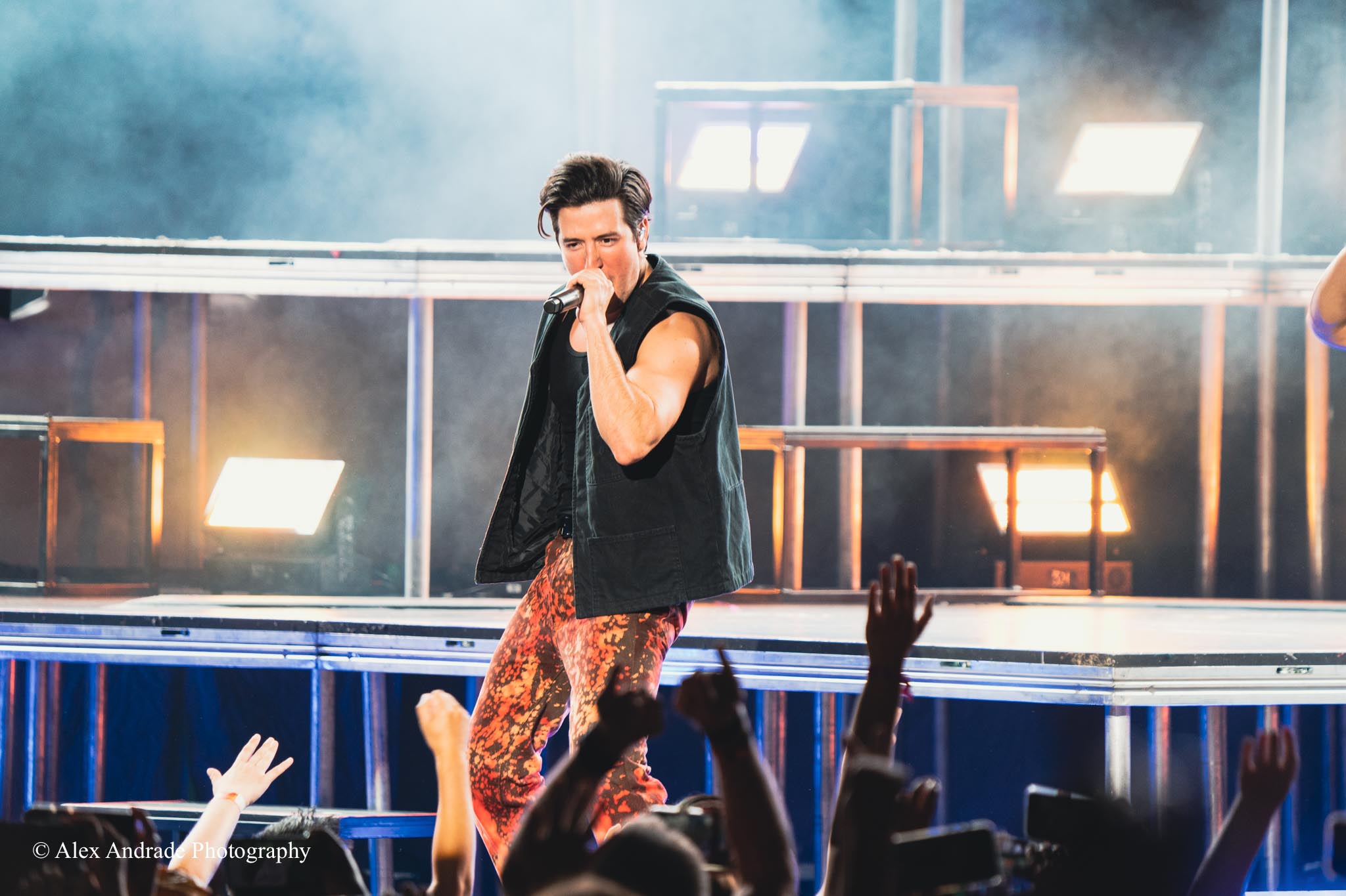 The band members jumped off a podium to on stage performing the opening song “Windows Down”. Throughout the first song it was such a rush, literally. Each of them were going across the stage doing their own thing. Carlos PenaVega and Logan Henderson were upfront grabbing hands of the audience showing great engagement, Kendall Schmidt was pacing back and forth, and James Maslow did his signature backflip and showed off a smile. As BTR was closing out the first act of show, each member grabbed a rolled up tee shirts and were tossing them into the crowd.