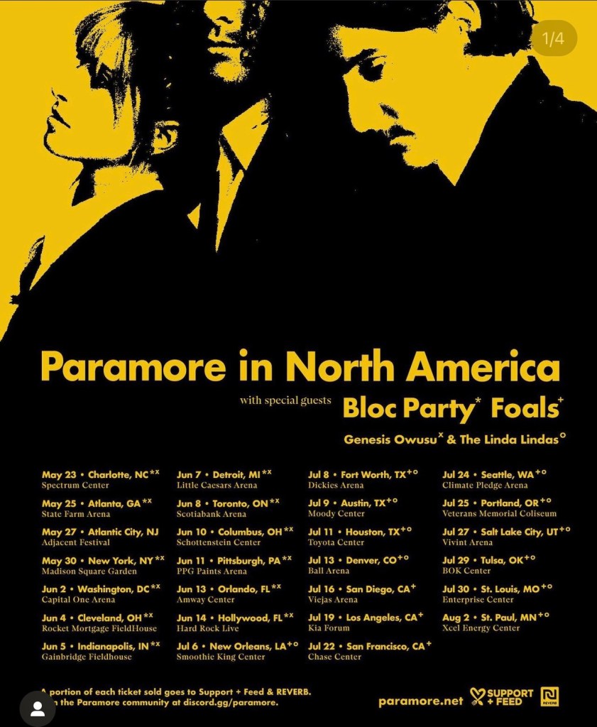 Earlier this week, Paramore has announced via Instagram that they will be doing a North America tour in 2023. The band will have rotating openers from Block Party, Foals, Genesis Owusu, and The Linda Linda’s in selected cities. Paramore just had an amazing set at the When We Were Young Fest in Las Vegas, NV. The band will also have a stop in Northern California at Chase Center in San Francisco, CA on July 22, 2023.