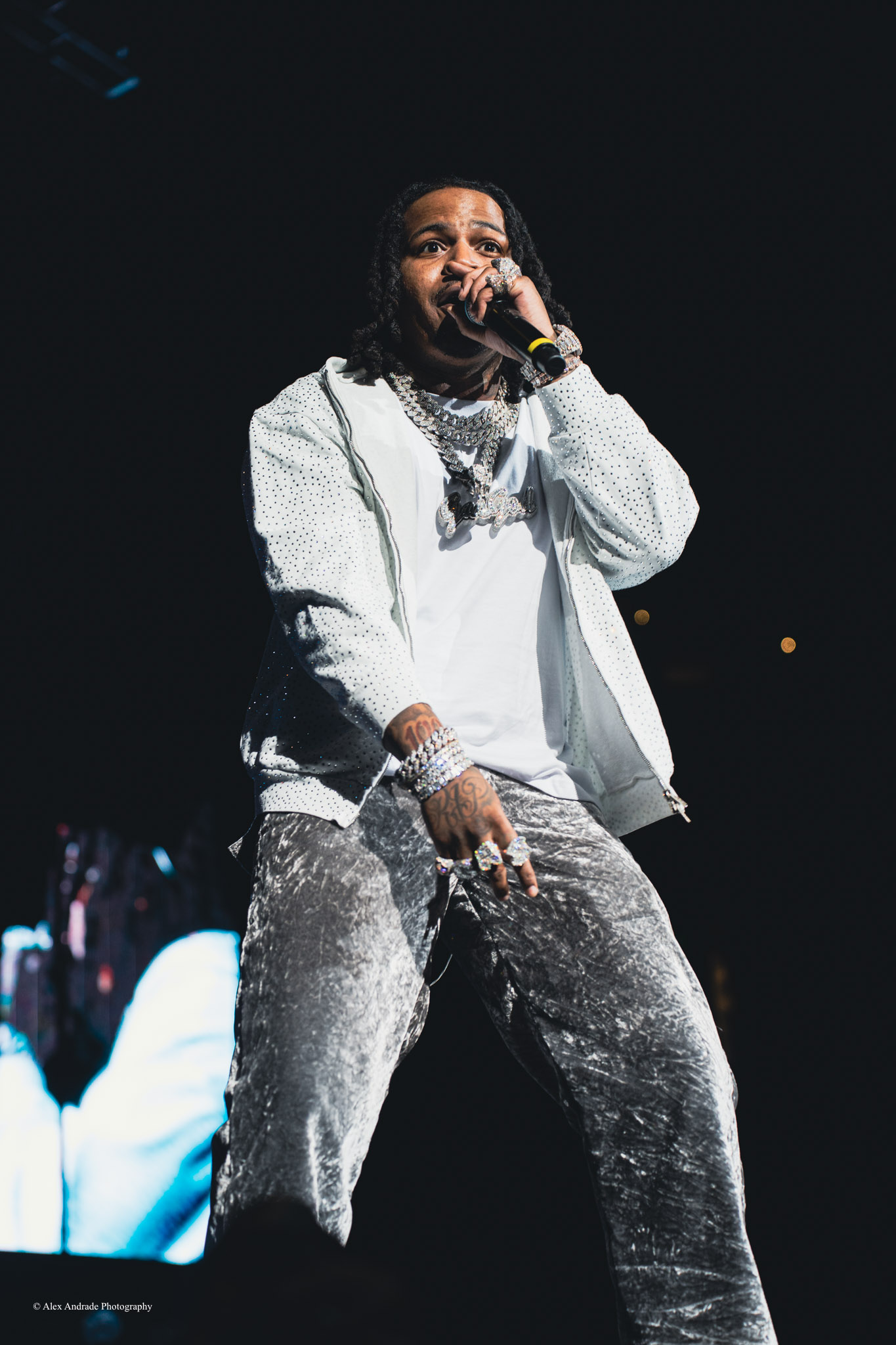 Chicago rapper, G Herbo, took the stage by kicking off his set with the fiery track “Aye,” from his latest album Survivor’s Remorse, released in 2022. His performance was electric as he belted out hits like “Ridin Wit It,” “Sessions,” and “I Like”. Adding a personal touch to his show, G Herbo brought his girlfriend, Taina, on stage and requested help from the crowed to sing “Happy Birthday” for her. He then raised a toast and took a shot with her.
