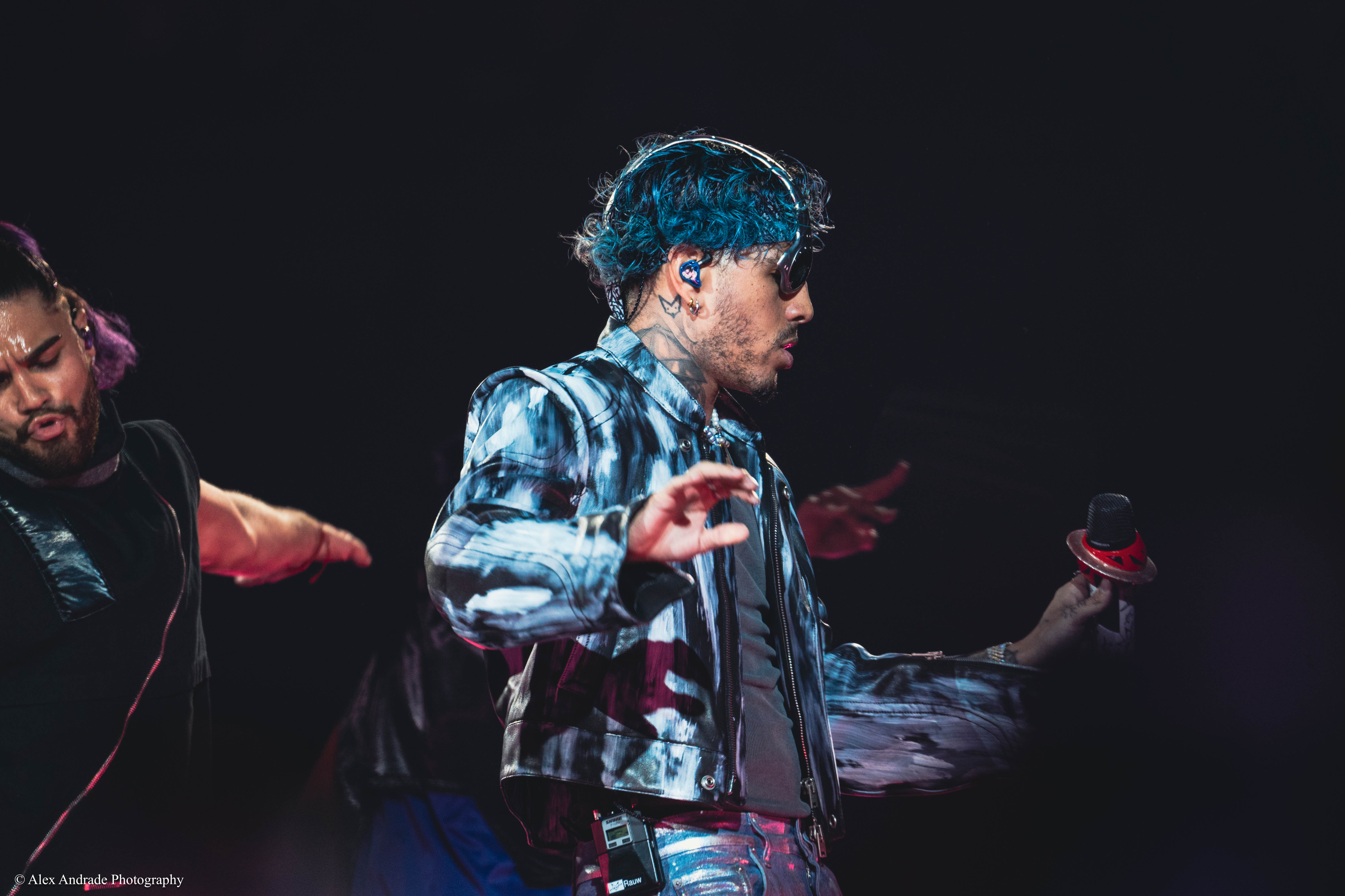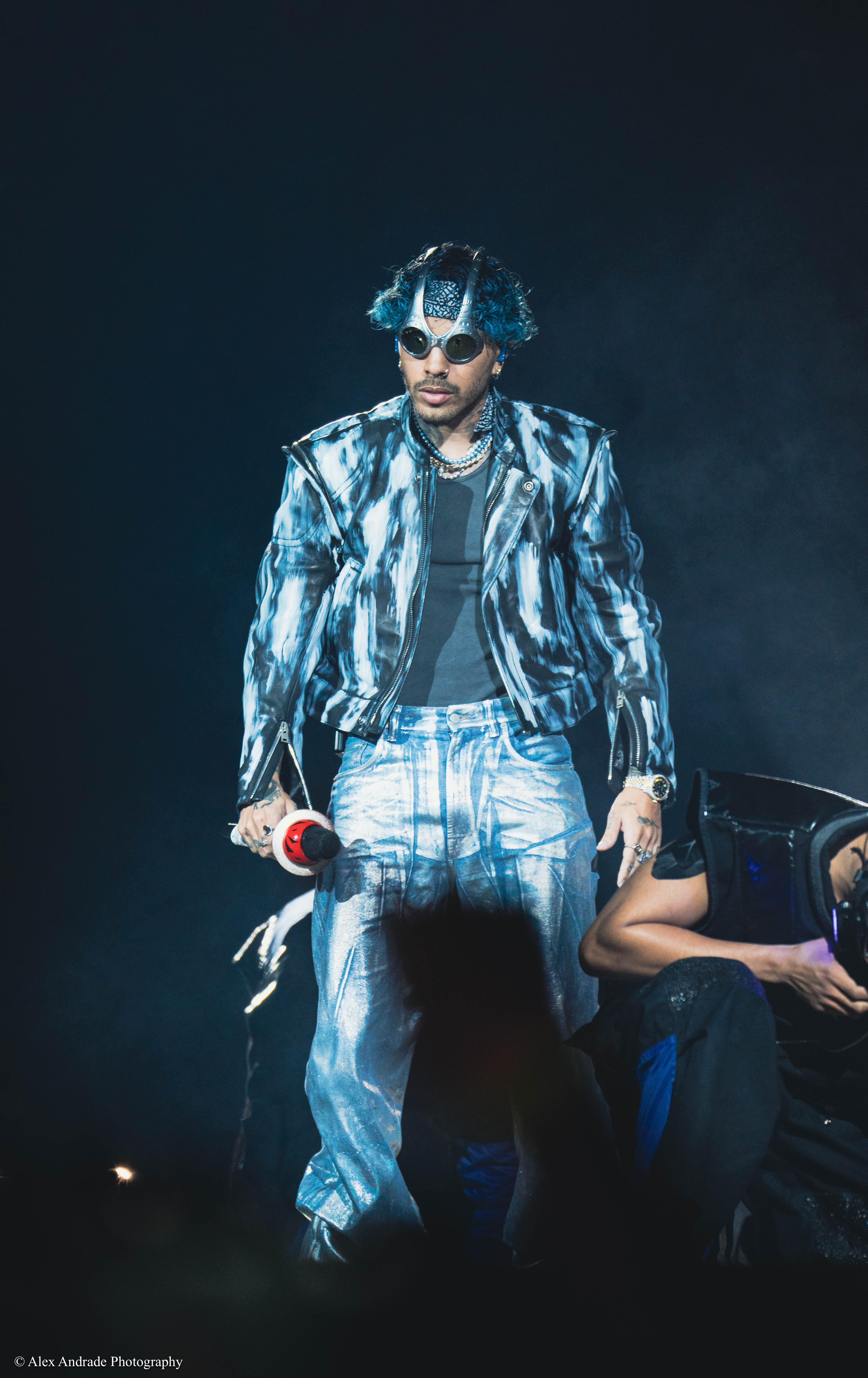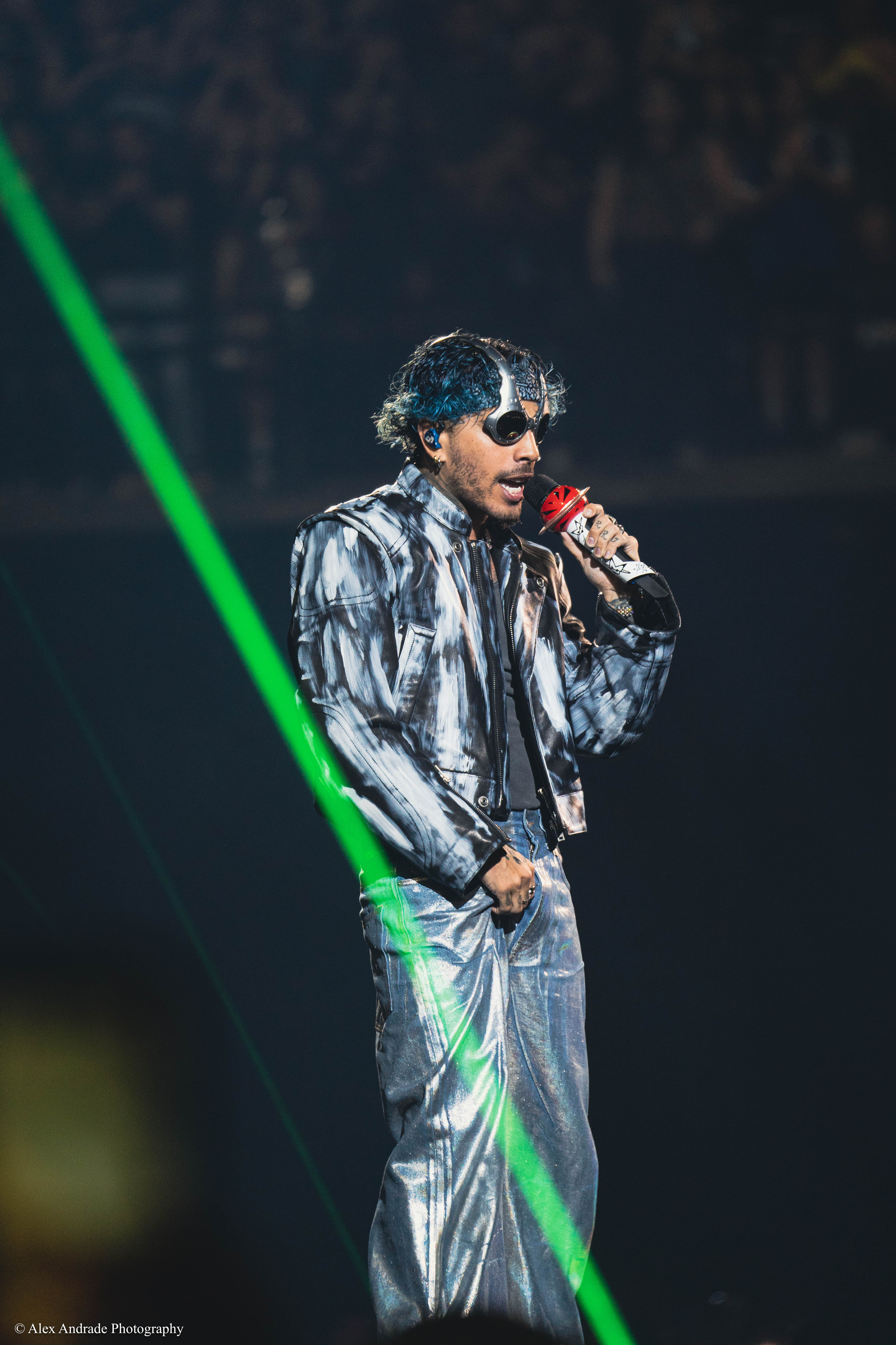 Rauw Alejandro made a grand entrance, elevated slowly to meet his thousands of screaming fans, wearing a silver metallic trench coat and pants combo, with alien-like sunglasses that held over his head. The superstar performed hit after hit, showcasing his dance crew with fancy footwork, bumpin’ and plenty of throwback styles.