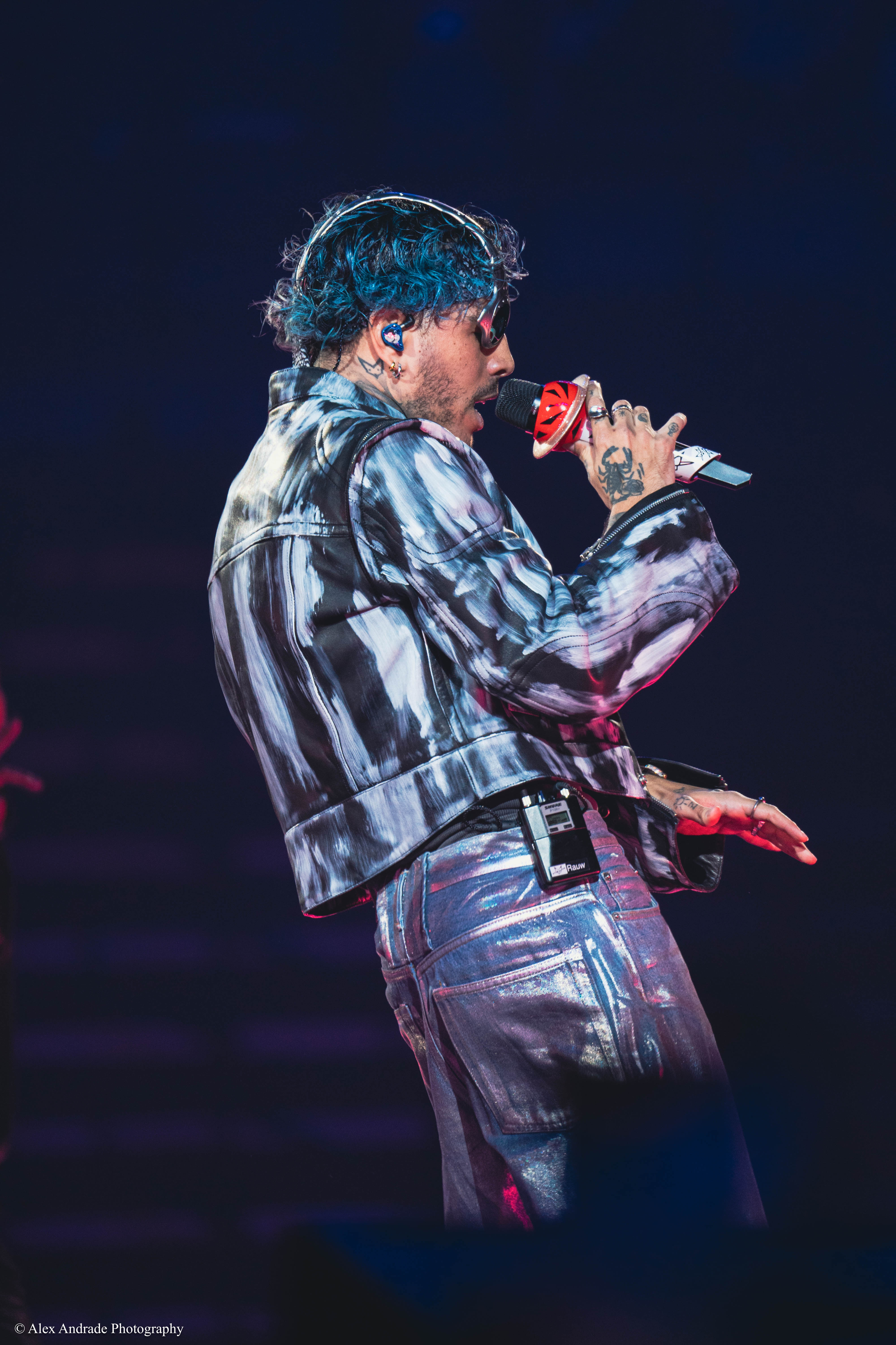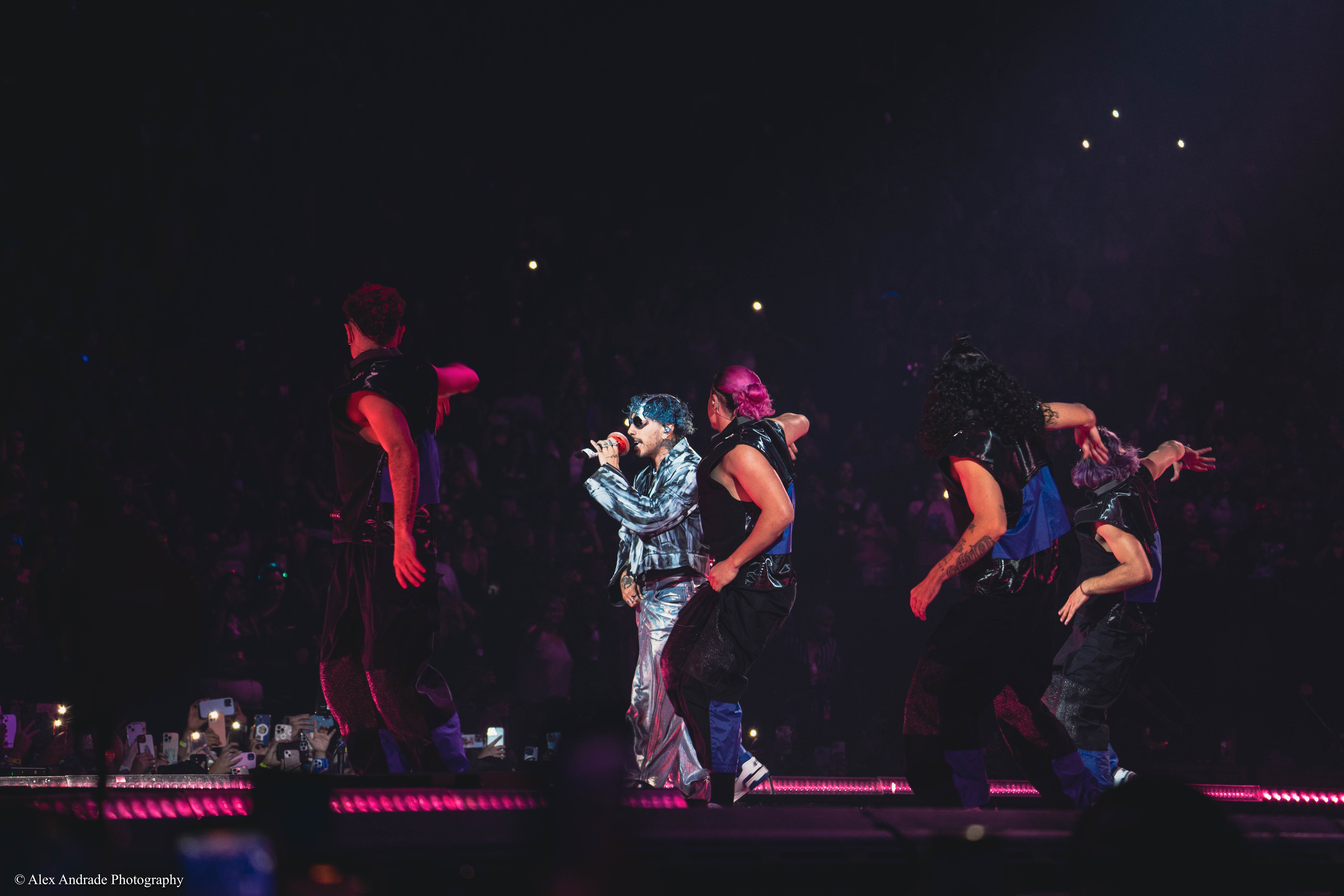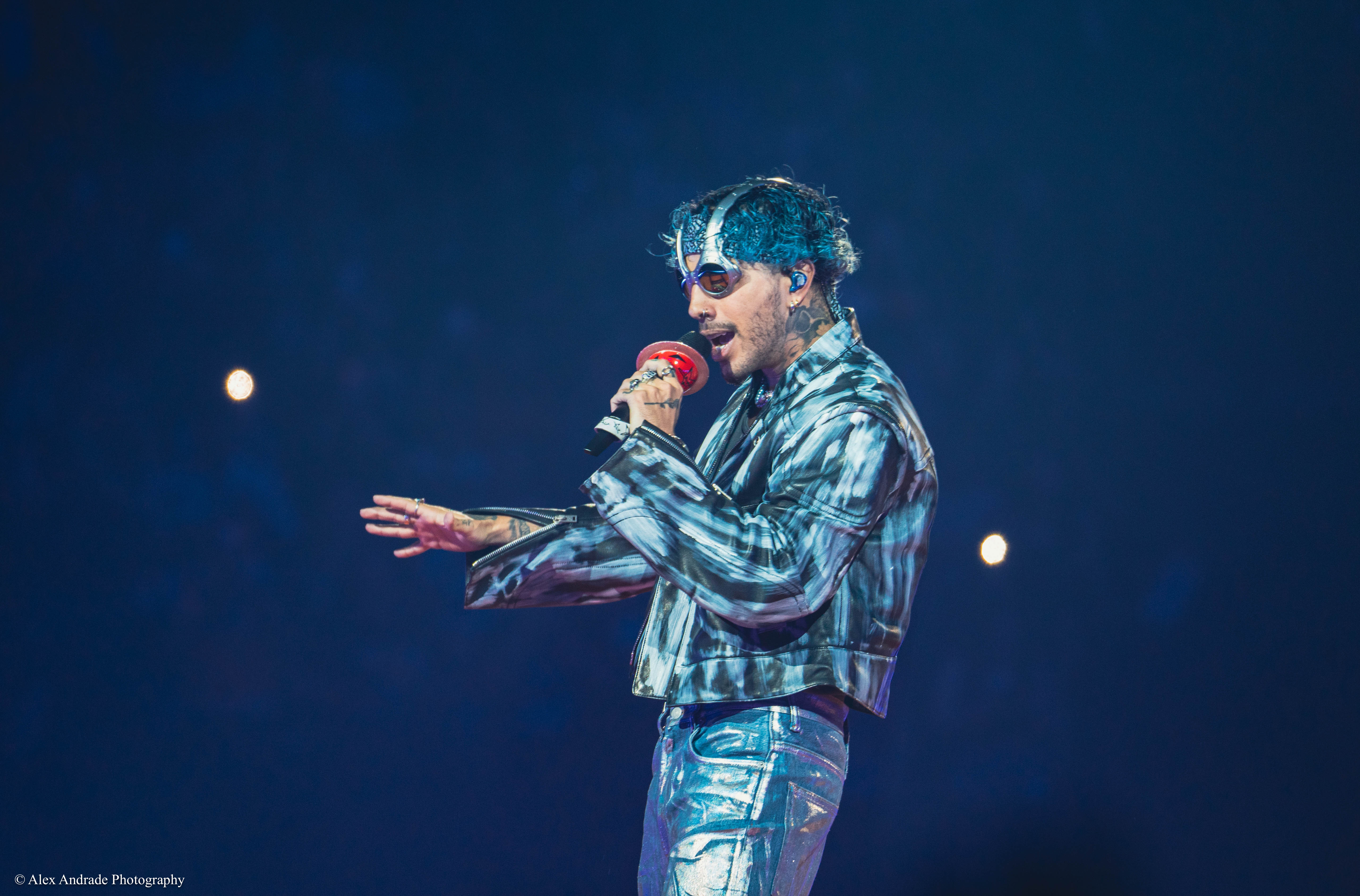 Rauw Alejandro made a grand entrance, elevated slowly to meet his thousands of screaming fans, wearing a silver metallic trench coat and pants combo, with alien-like sunglasses that held over his head. The superstar performed hit after hit, showcasing his dance crew with fancy footwork, bumpin’ and plenty of throwback styles.