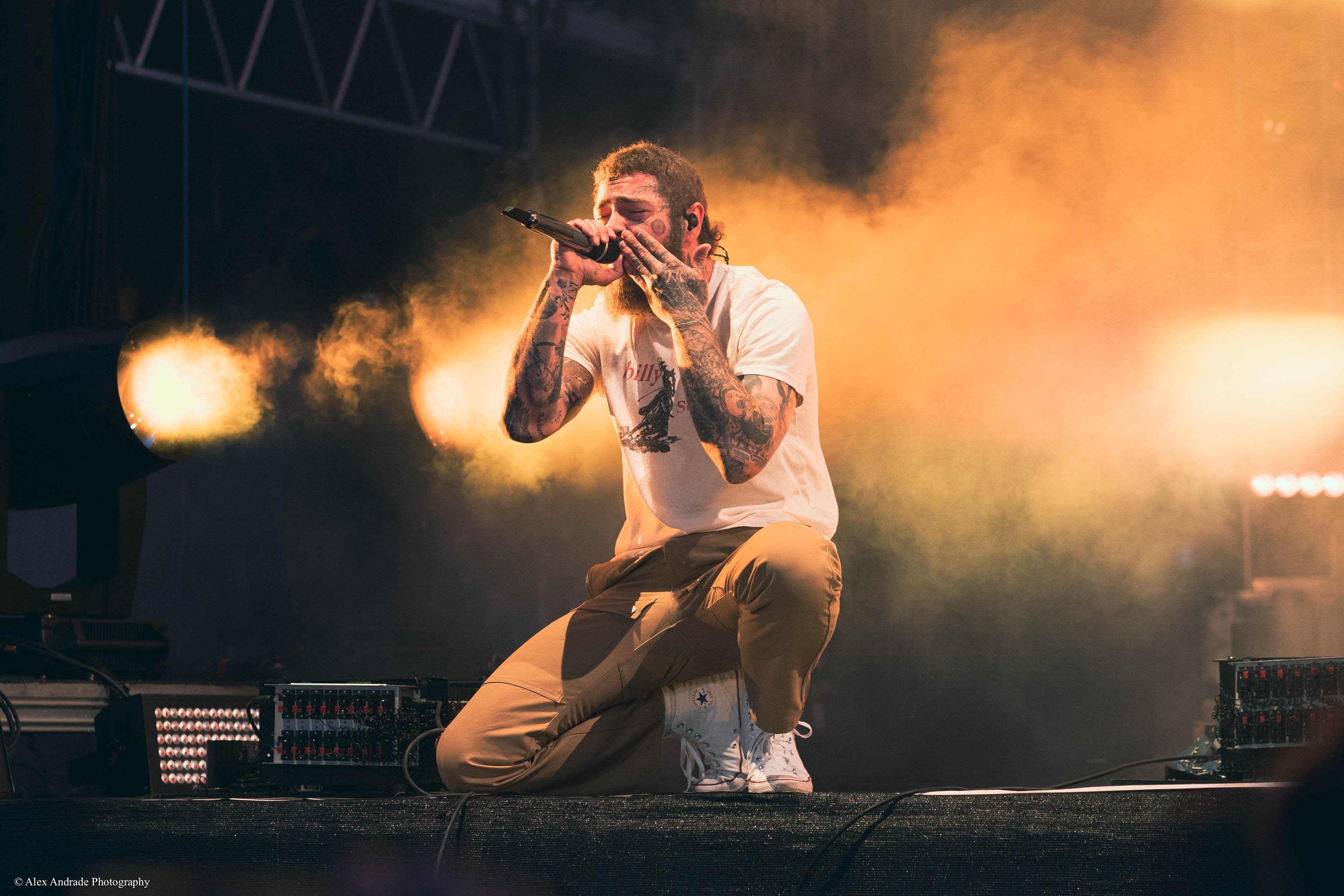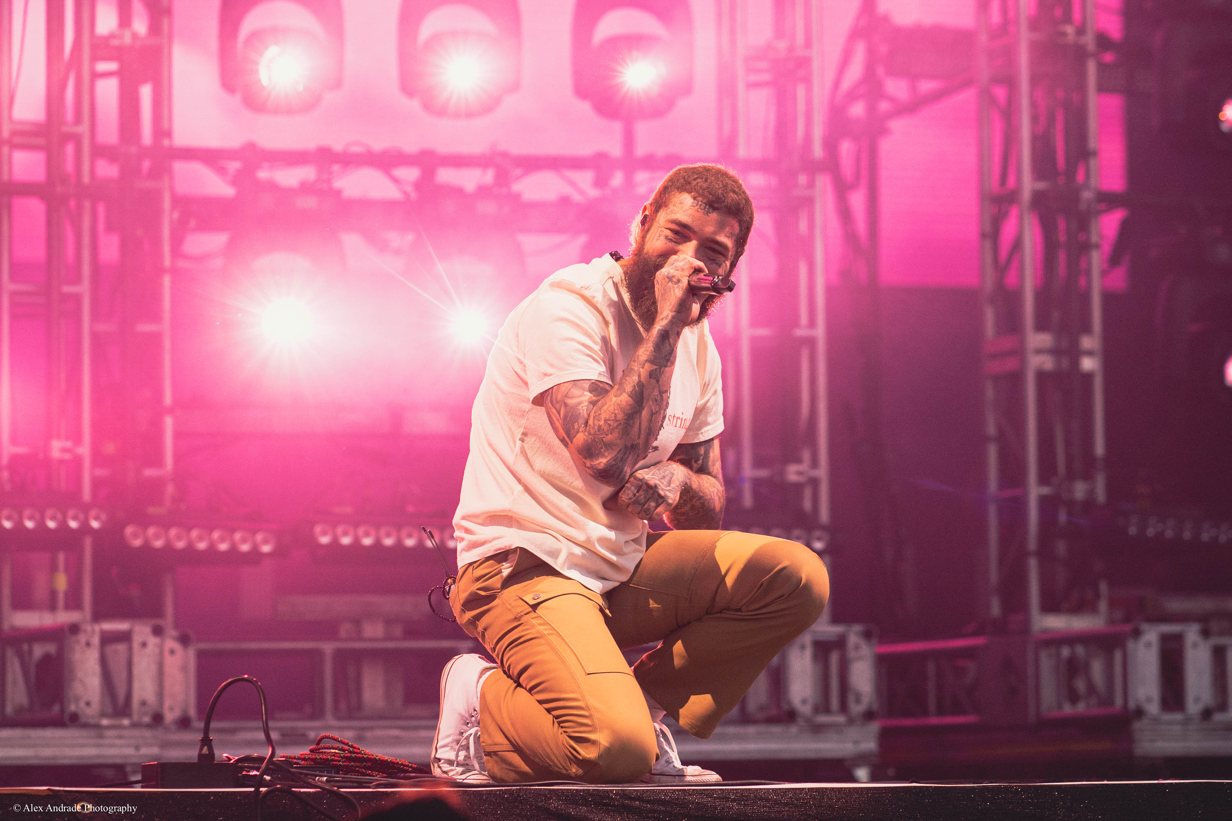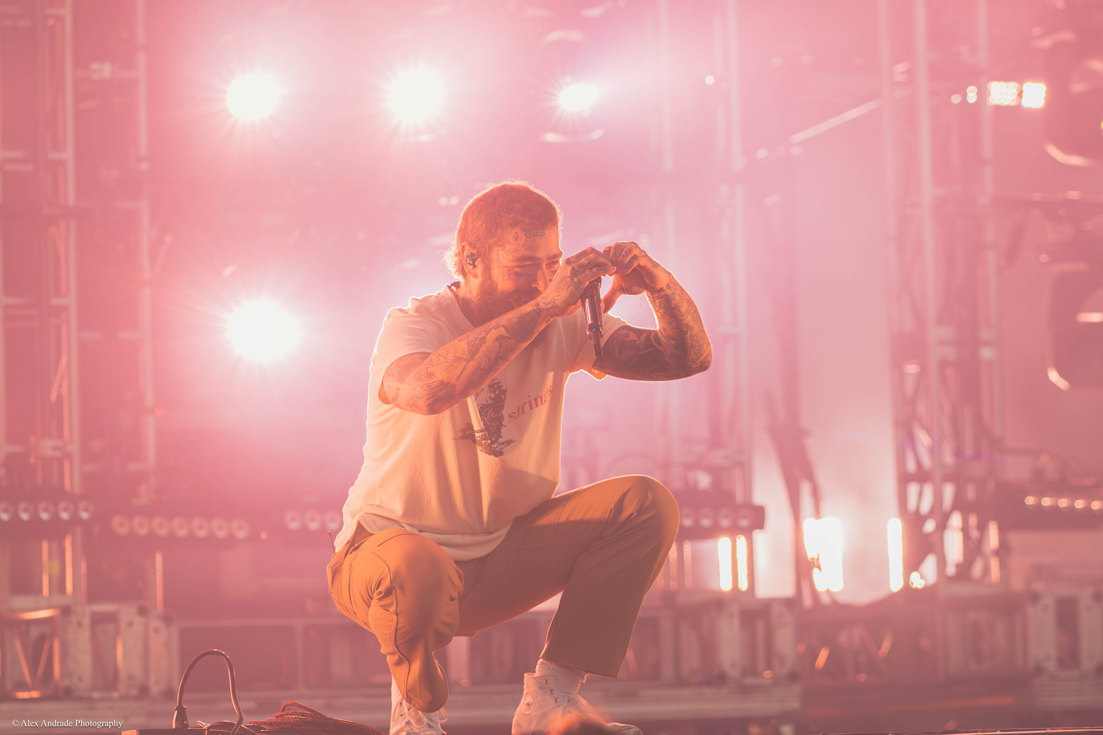 Expressing his appreciation for life, he exclaimed, “I wanted to say how awesome it is that we can celebrate life together.” This sentiment led seamlessly into a medley of his older hits, including “Psycho” and “Candy Paint.” The heart-wrenching rendition of “I Fall Apart” followed, eliciting raw emotions from both the artist and the audience.