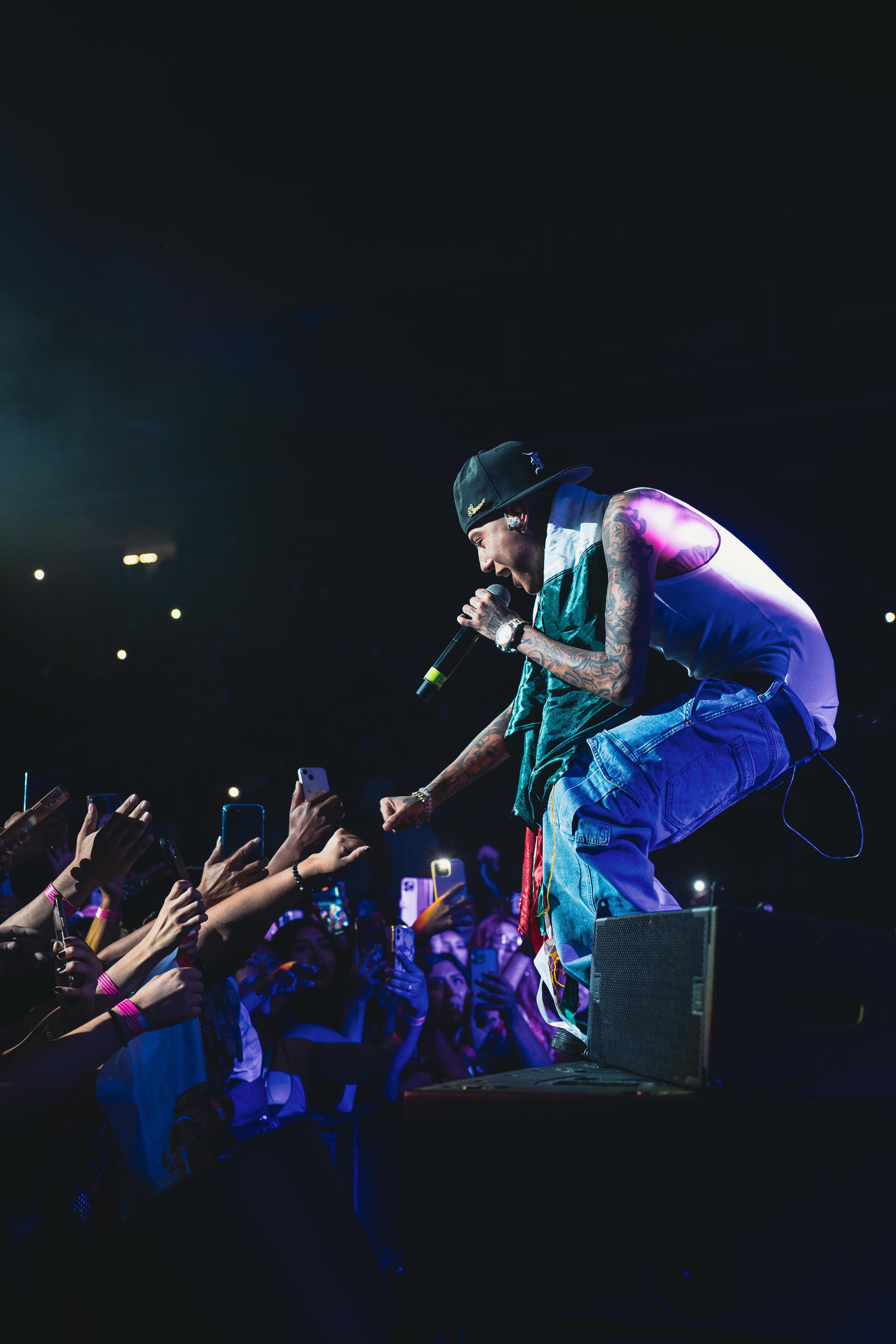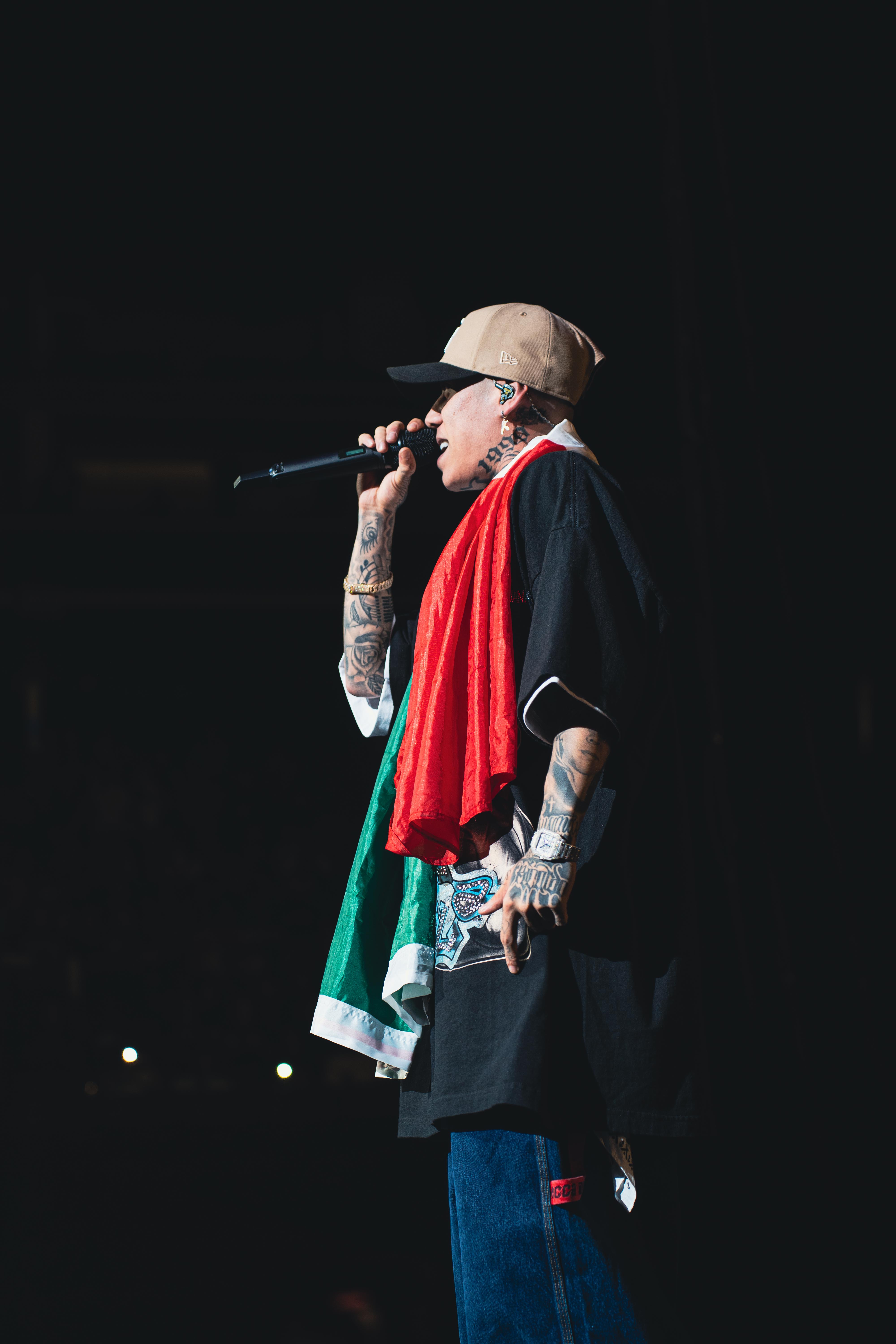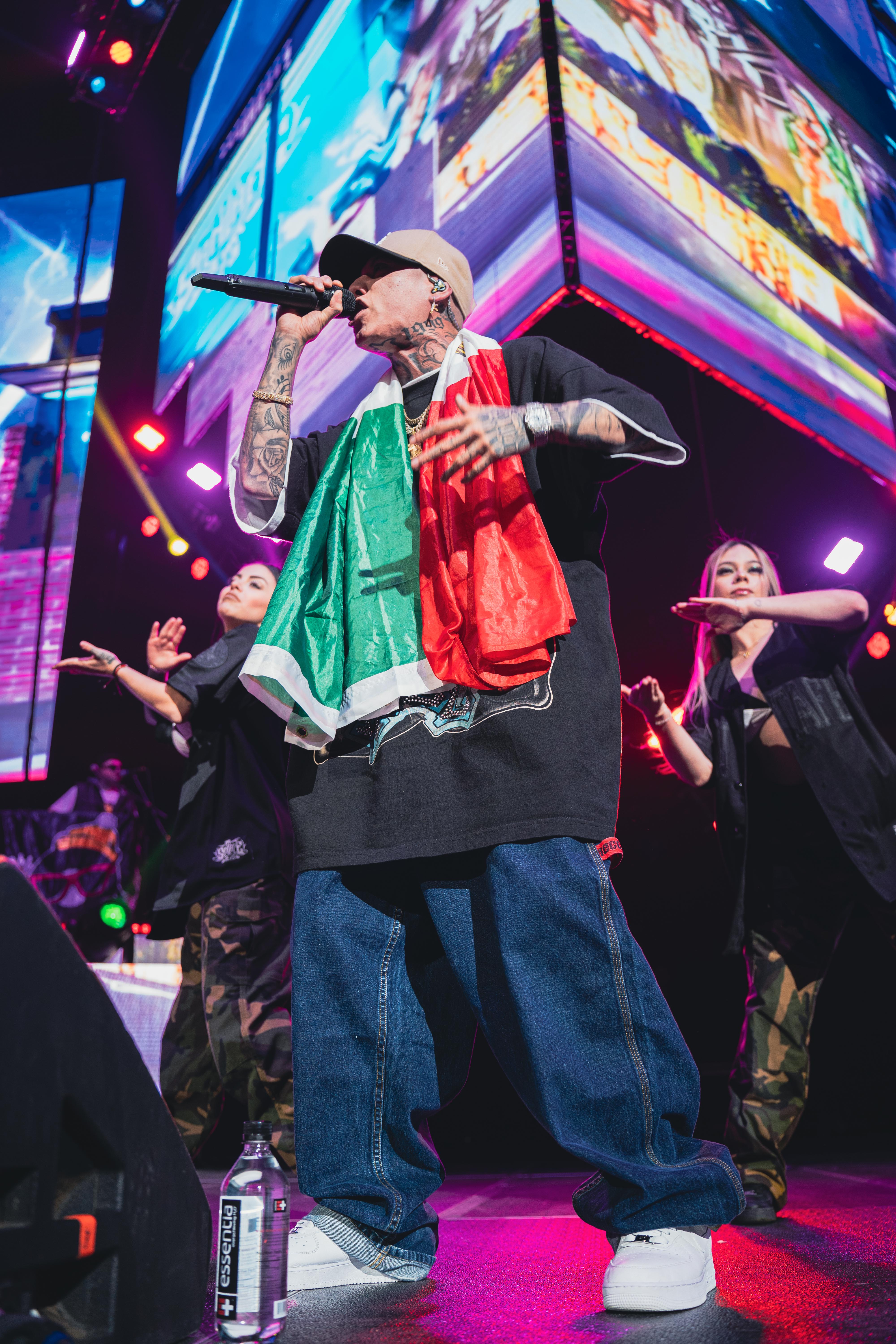 At 8:35pm, Tornillo took center stage, dripping in opulent chains and watches. Euphoria surged as fans eagerly passed him a joint, solidifying the unity between artist and audience. Draped in a Mexico flag, Tornillo exuded national pride, captivating the crowd by engaging with their recording phones and playfully recording himself. The ecstatic atmosphere escalated when he handed the microphone to a fan, allowing them to complete a verse. Inviting a fan on stage for an unforgettable collaboration, Tornillo’s bond with his audience reached exhilarating heights. The sea of Mexico flags waving in the front row testified to the vibrant cultural celebration that defined the night.