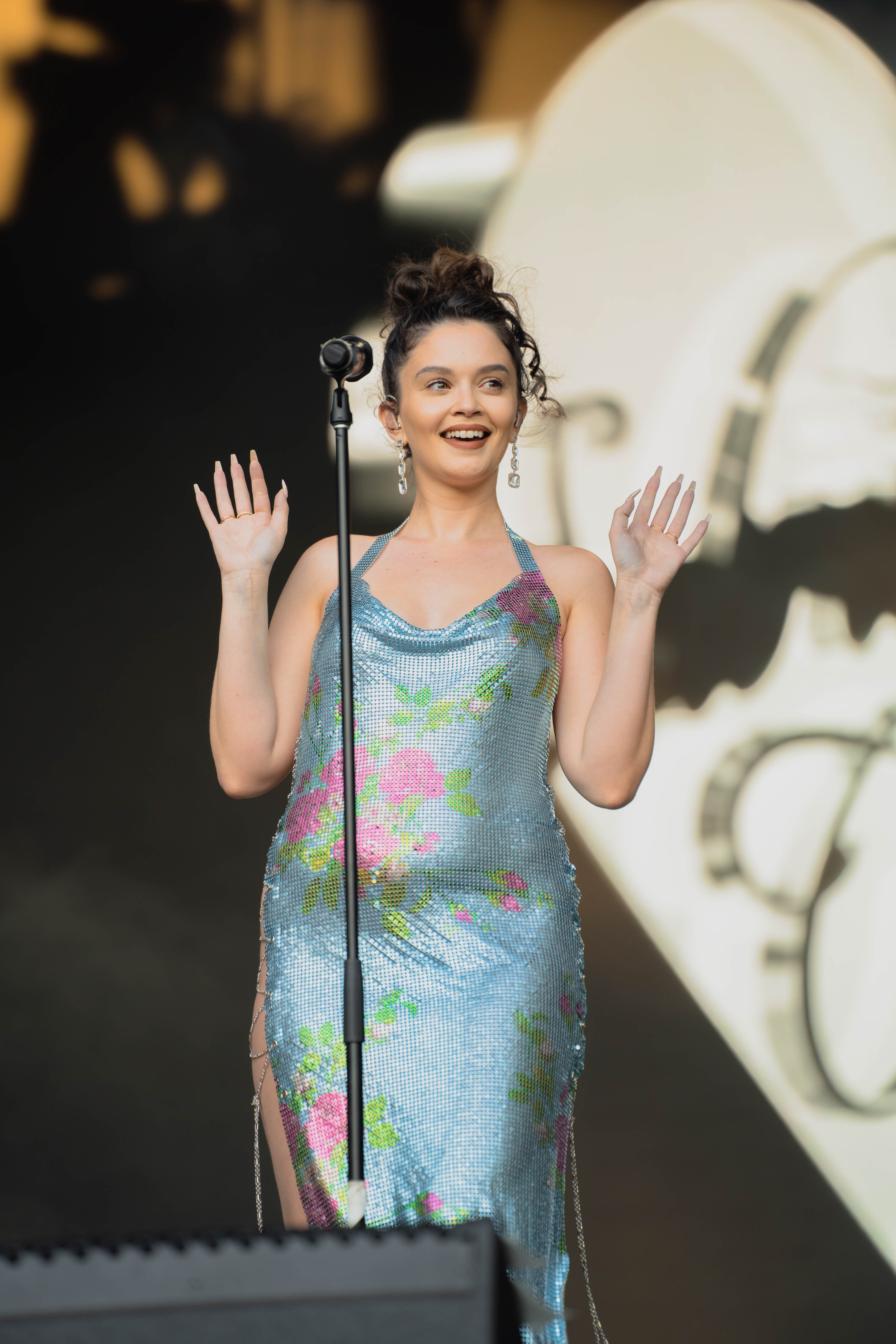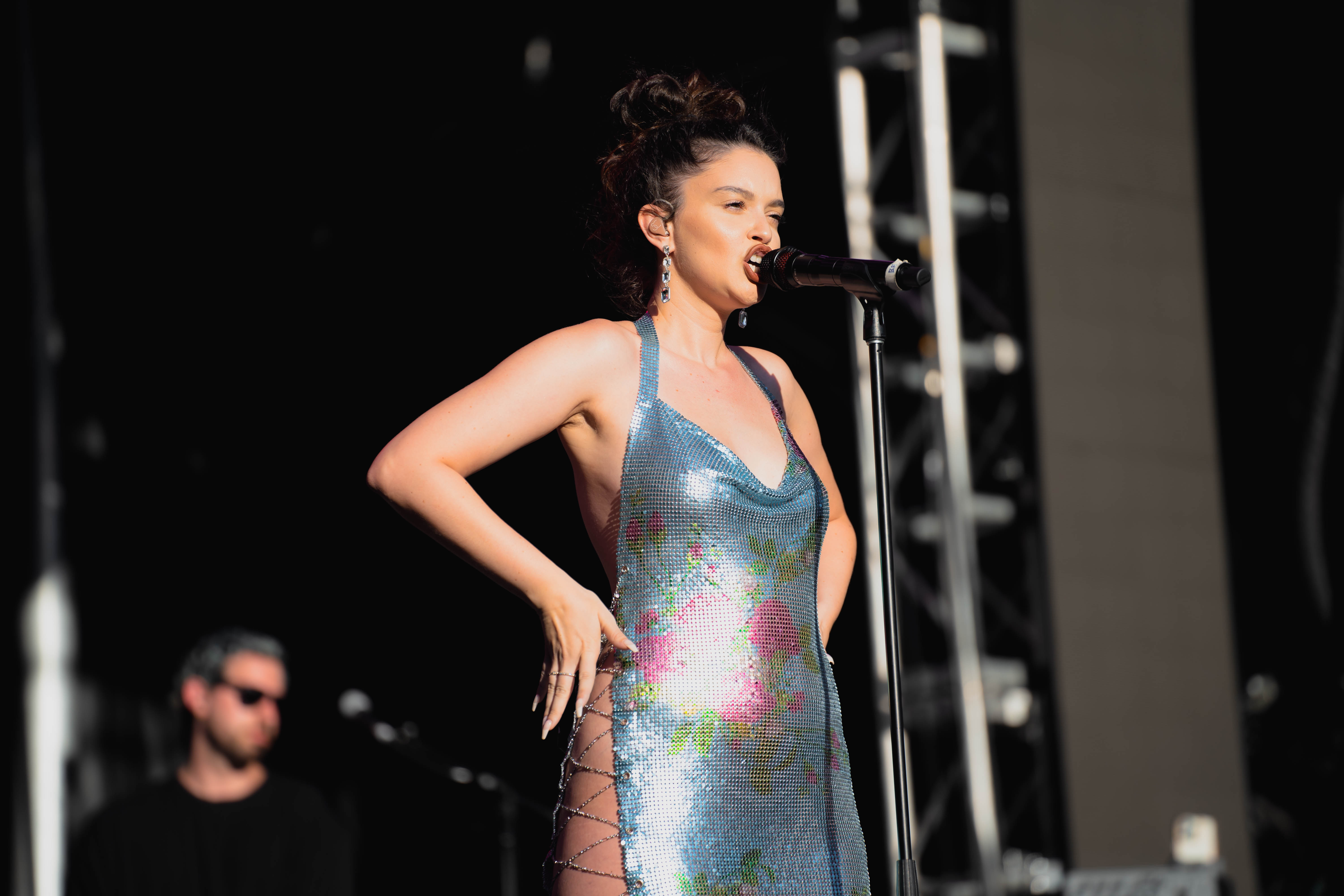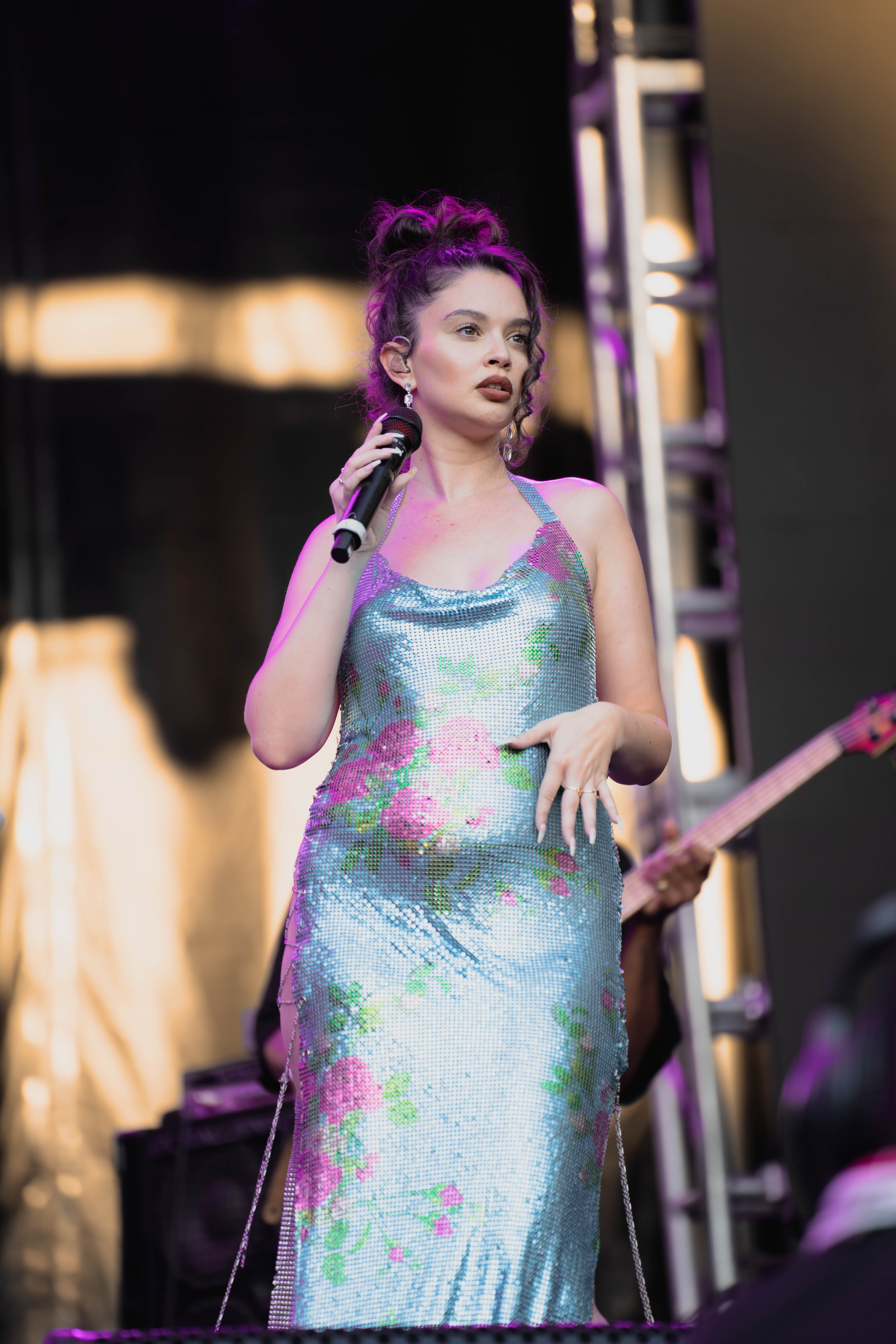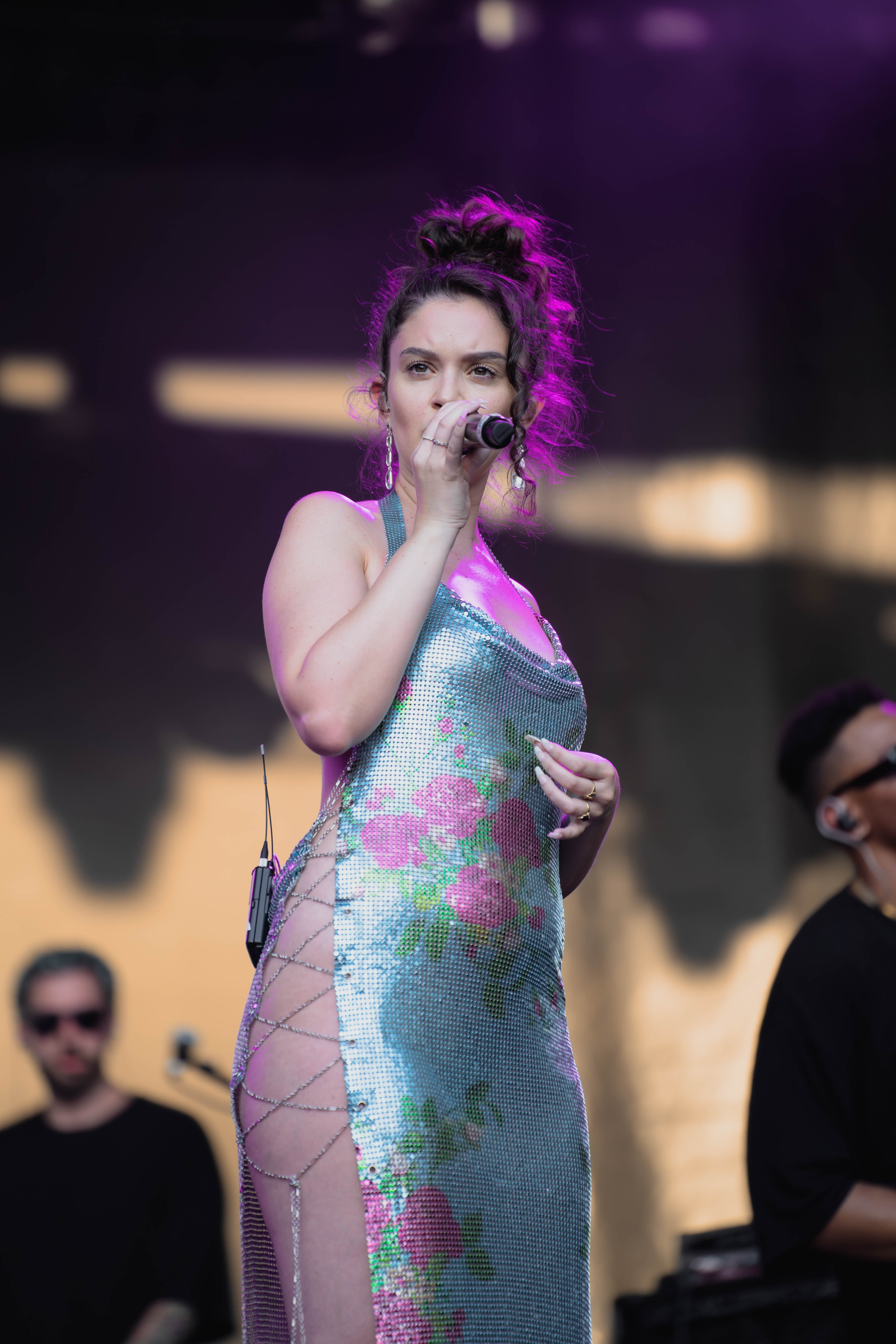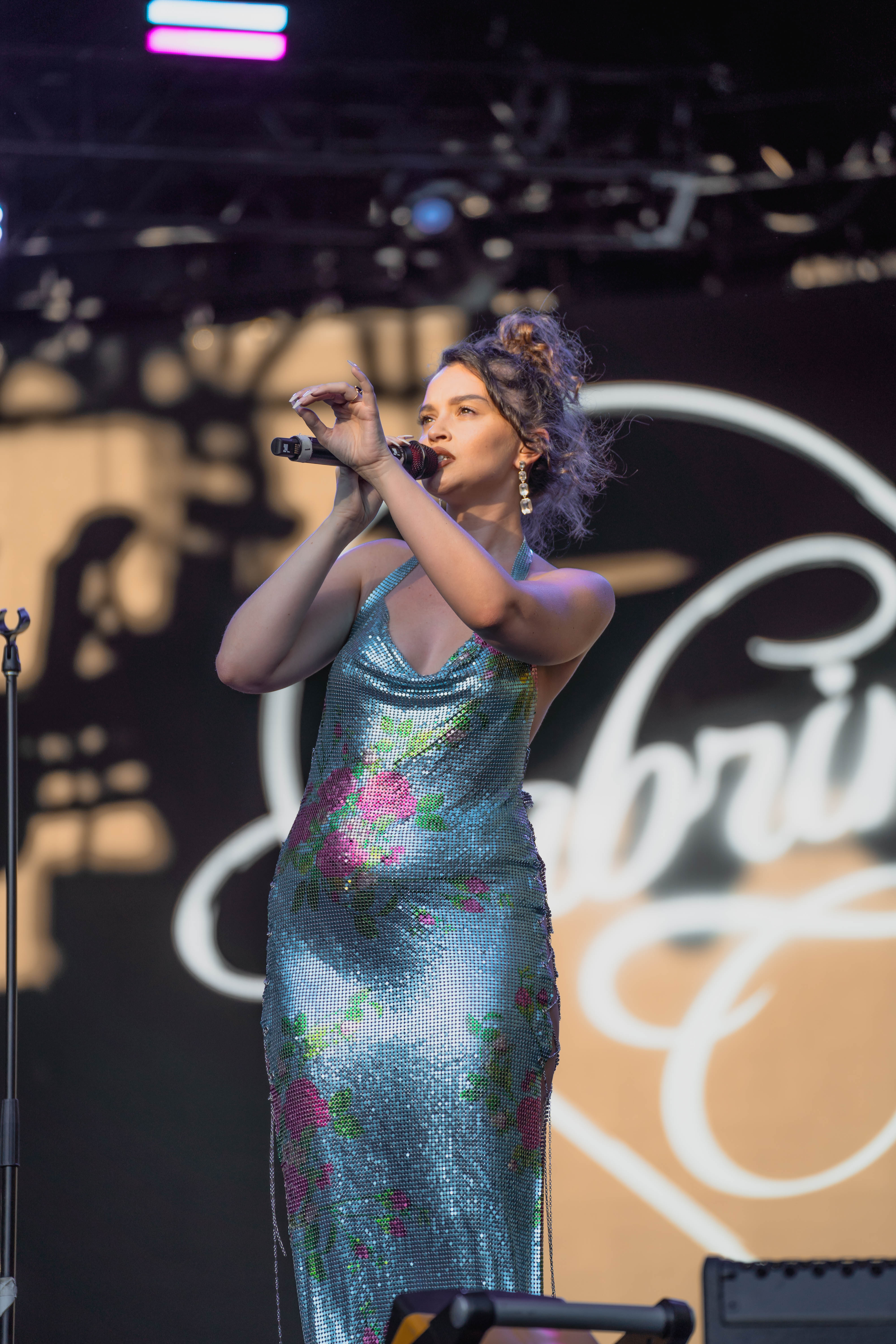 Taking the Blume Stage, Sabrina Claudio delivered an electrifying 30-minute set that left the crowd in awe. Despite the abbreviated performance duration compared to her full concerts, Claudio managed to captivate and invigorate her audience. At precisely 6:30 PM, a beaming Sabrina Claudio emerged onto the stage, eliciting roars of excitement from the crowd. Dressed in a sparkling sequin dress adorned with delicate flowers, she effortlessly commanded attention. An unforgettable moment occurred as Claudio interacted with a fan in the front row, playfully inquiring, “Are you from TikTok? Oh my god, I love your videos.” The exchange, met with laughter, seamlessly melded into her musical journey, leaving the audience yearning for more.