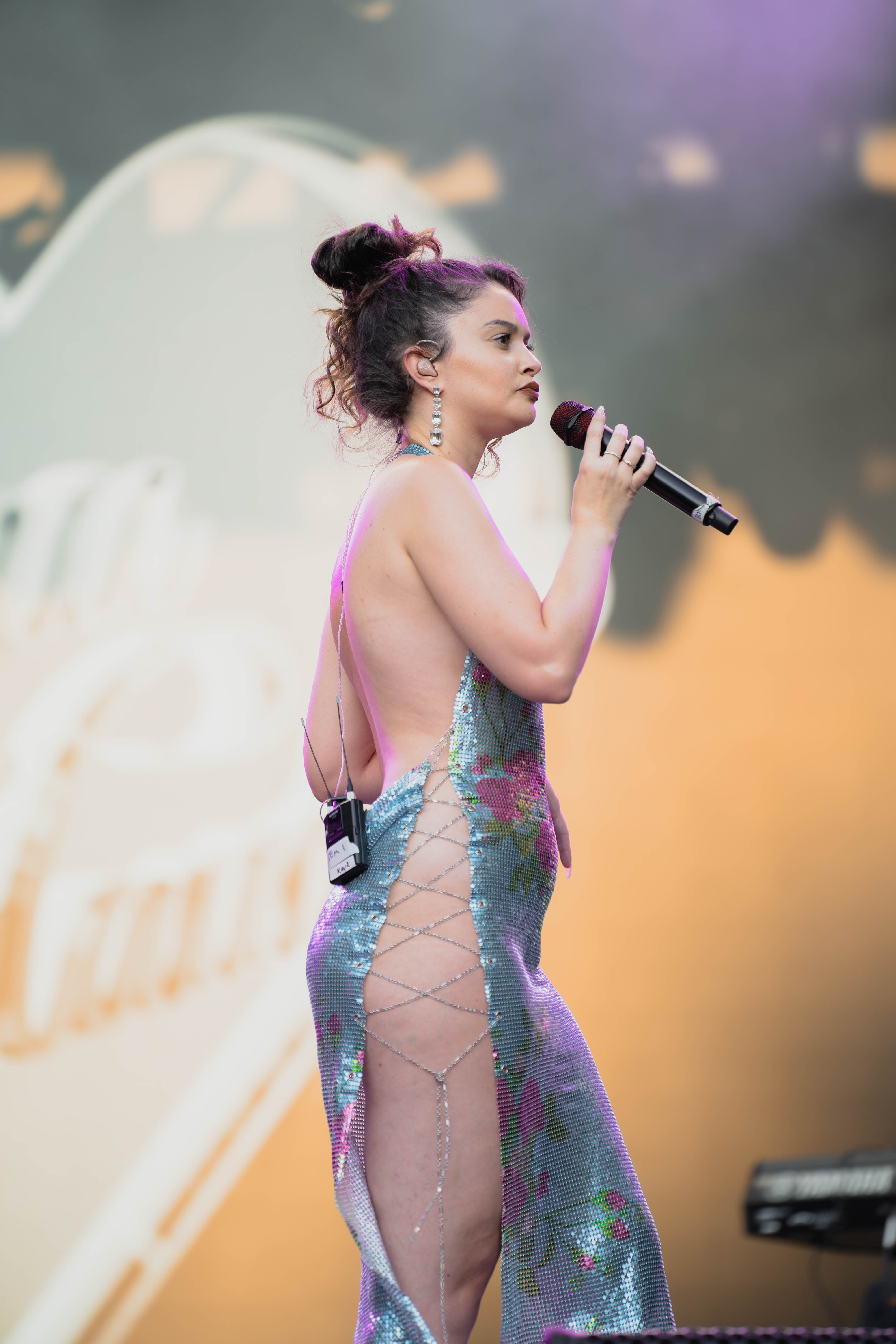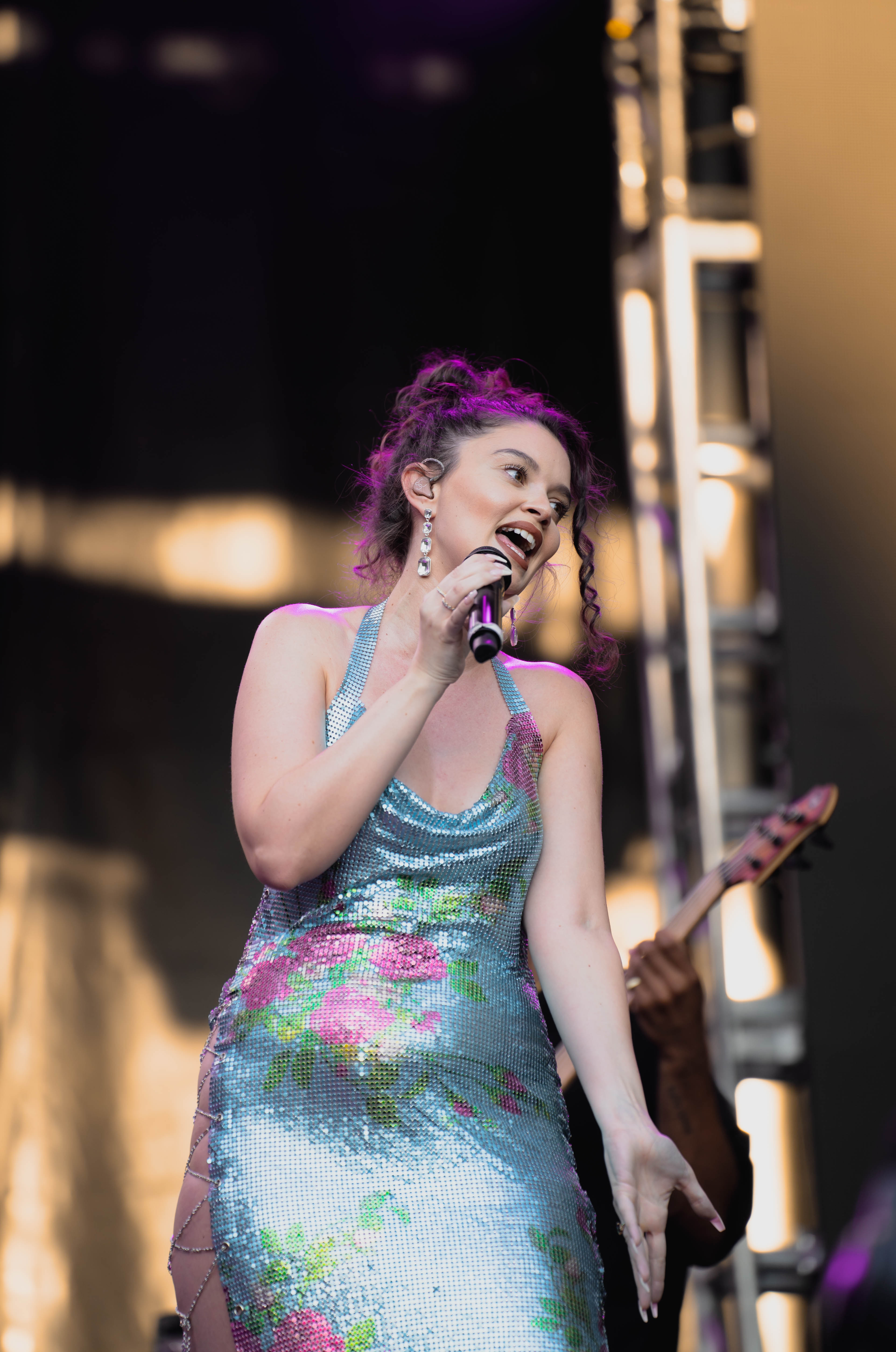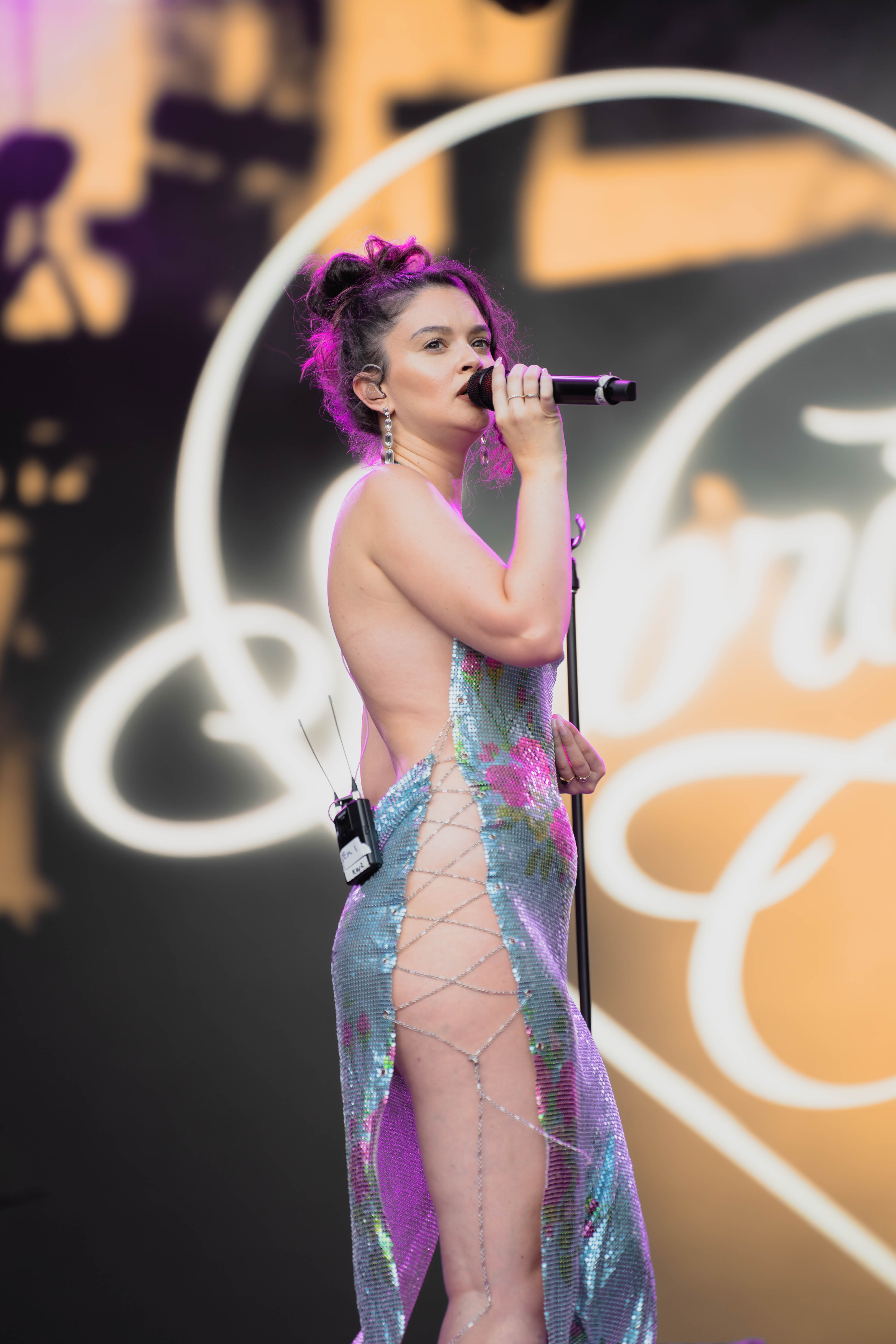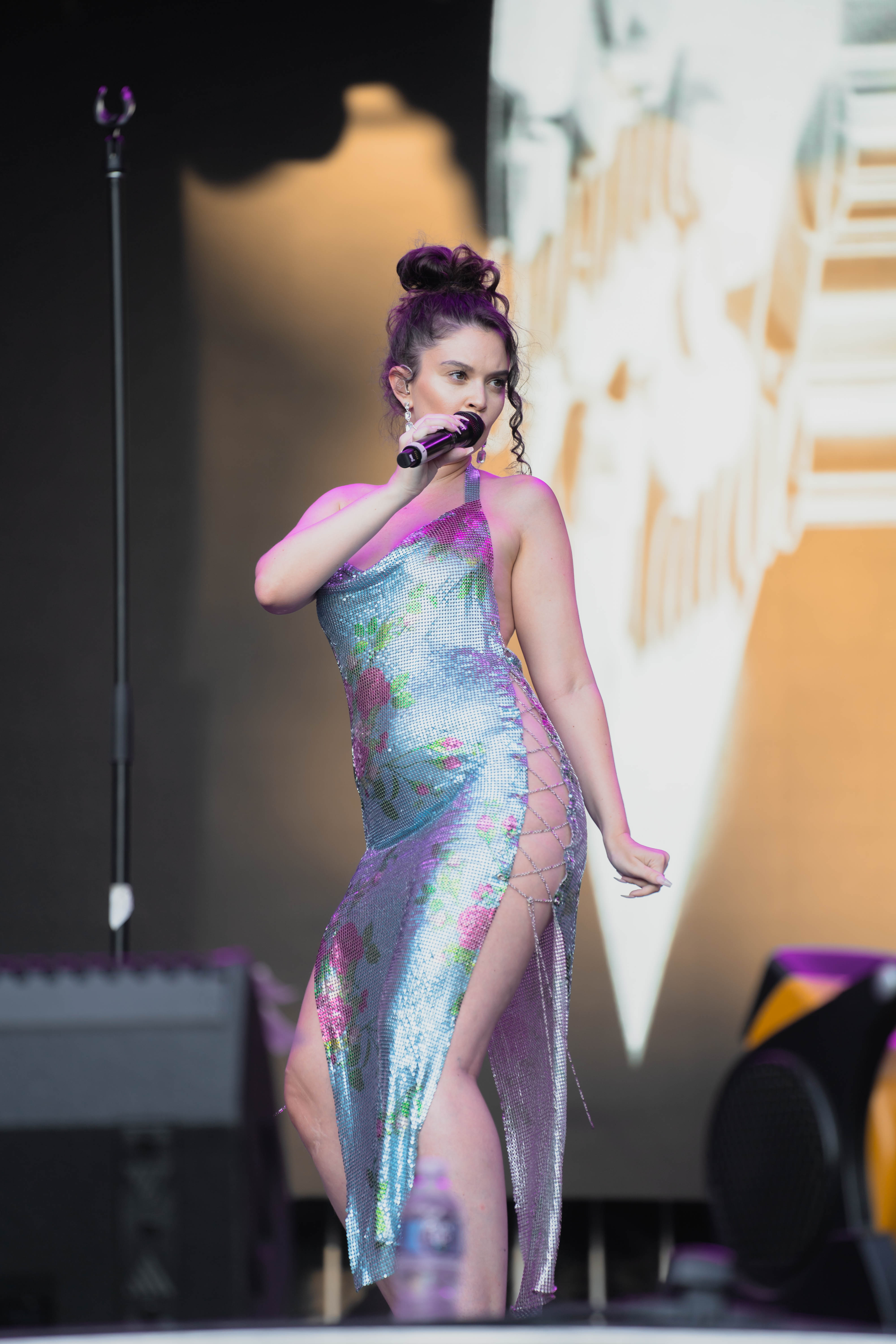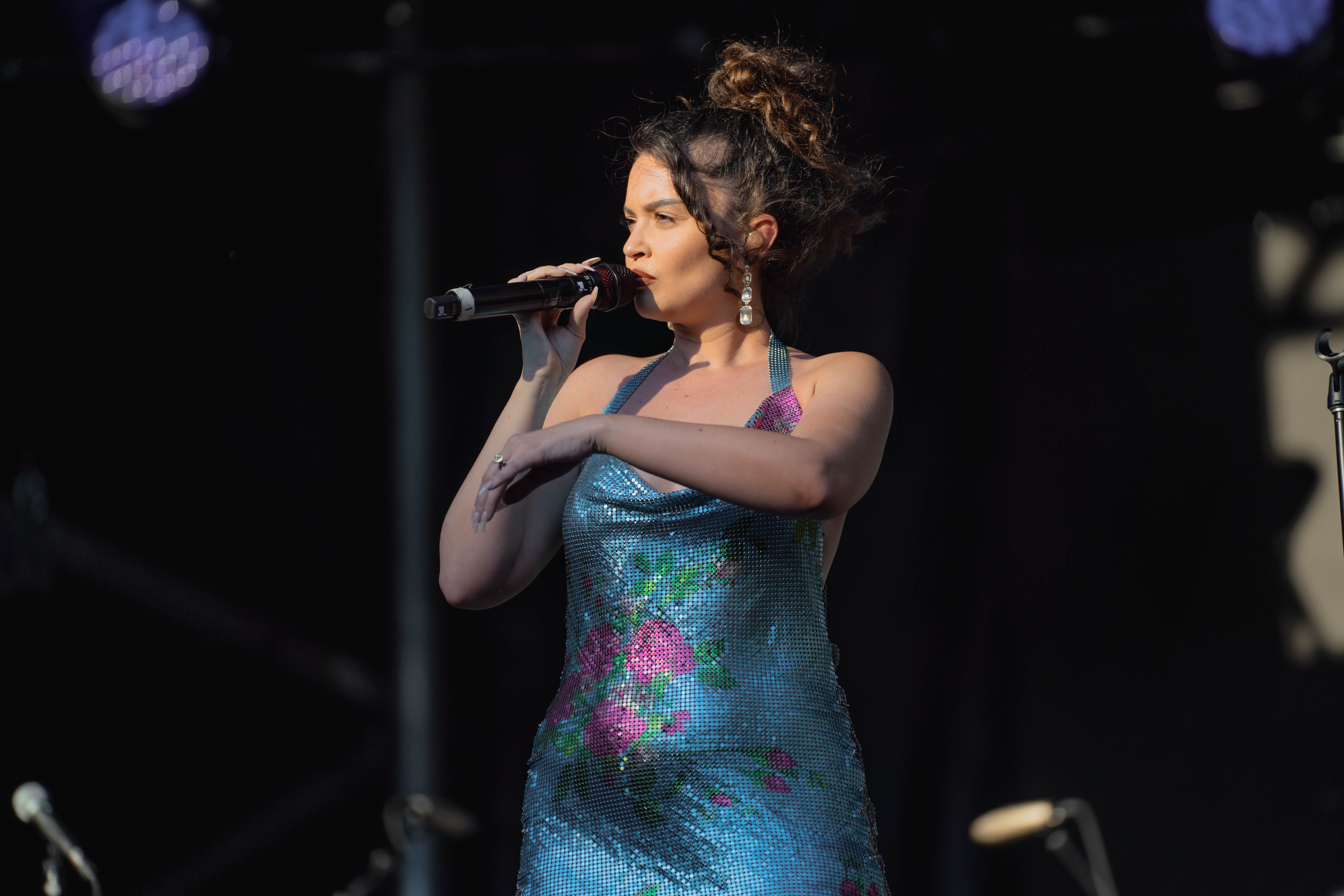 Taking the Blume Stage, Sabrina Claudio delivered an electrifying 30-minute set that left the crowd in awe. Despite the abbreviated performance duration compared to her full concerts, Claudio managed to captivate and invigorate her audience. At precisely 6:30 PM, a beaming Sabrina Claudio emerged onto the stage, eliciting roars of excitement from the crowd. Dressed in a sparkling sequin dress adorned with delicate flowers, she effortlessly commanded attention. An unforgettable moment occurred as Claudio interacted with a fan in the front row, playfully inquiring, “Are you from TikTok? Oh my god, I love your videos.” The exchange, met with laughter, seamlessly melded into her musical journey, leaving the audience yearning for more.