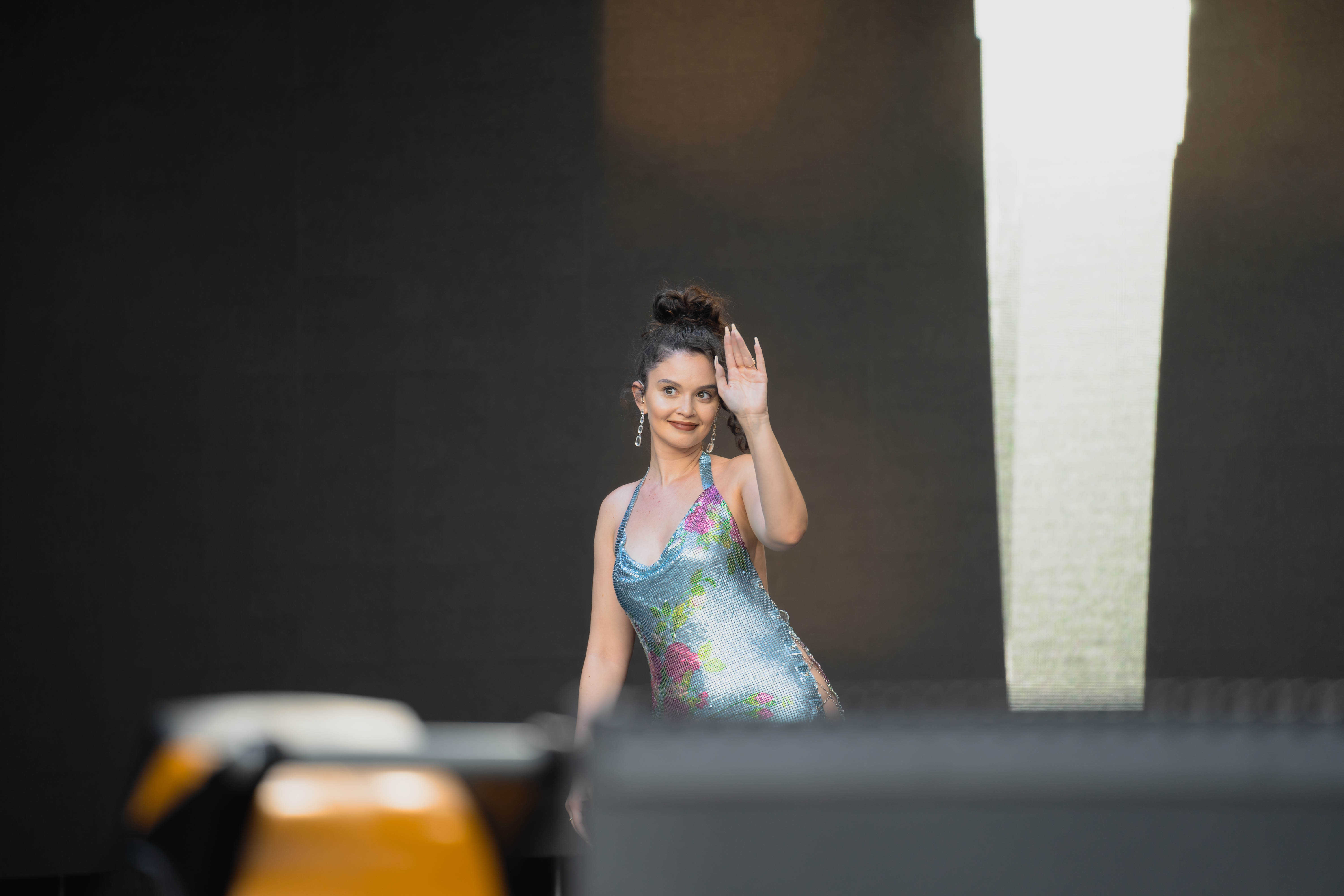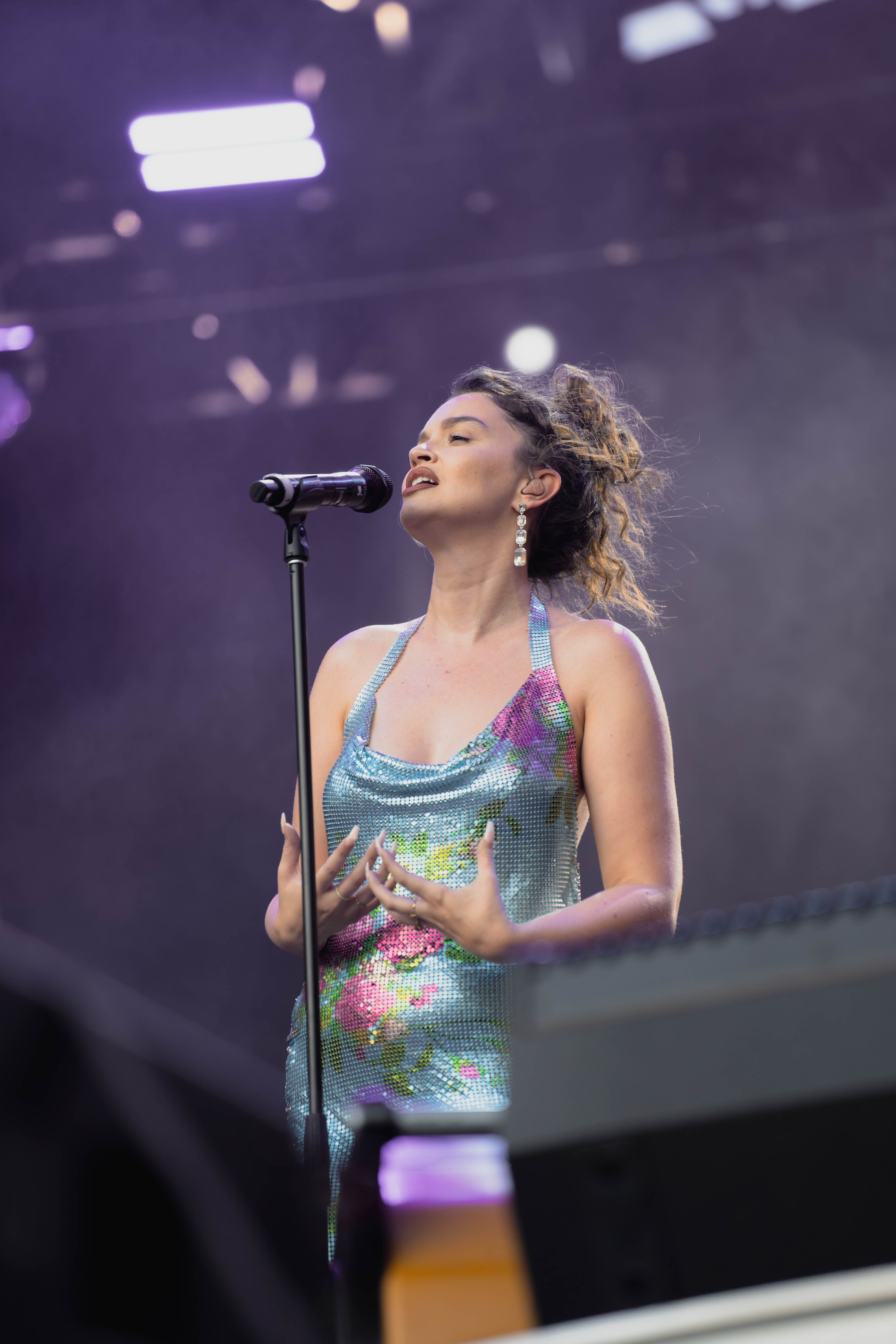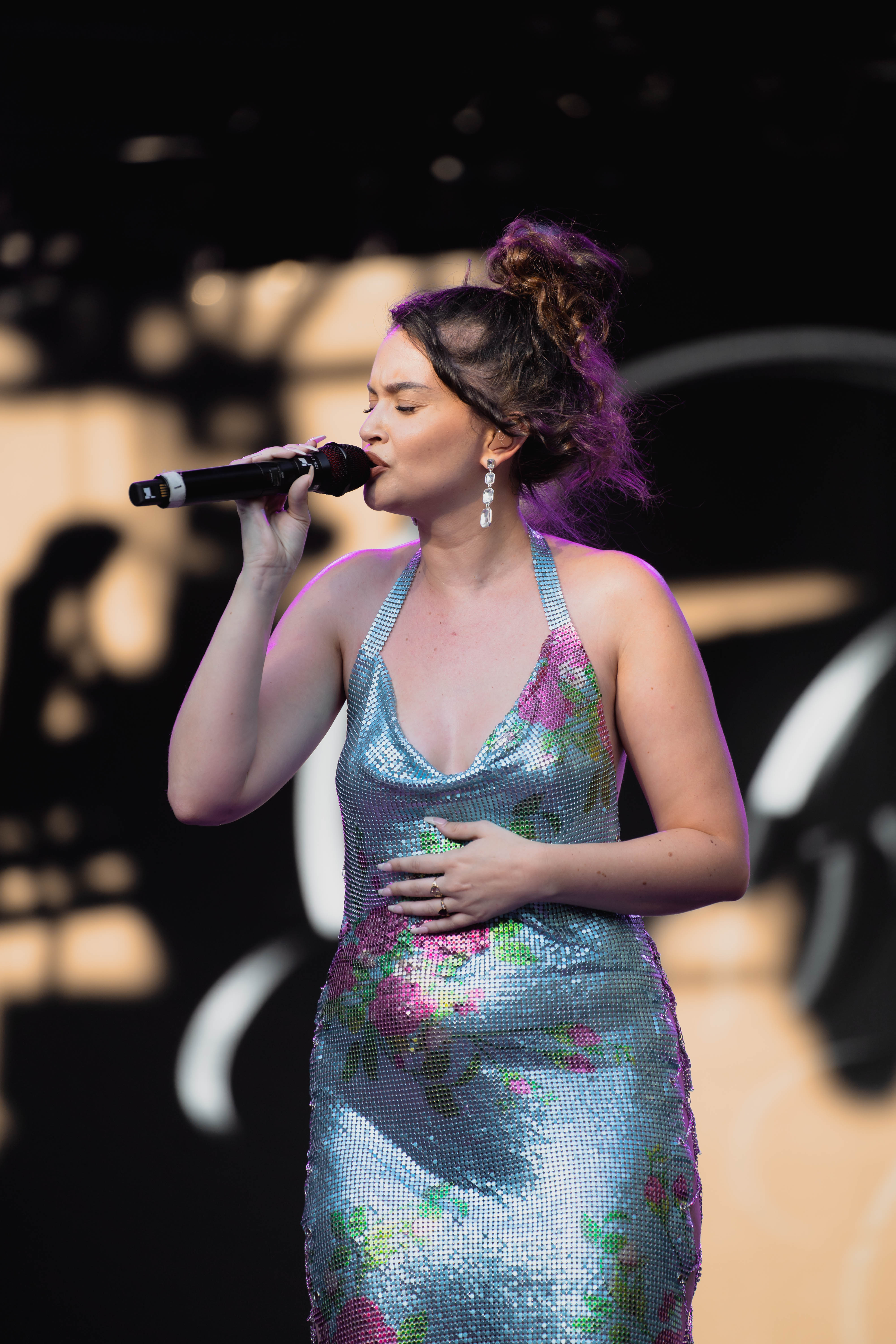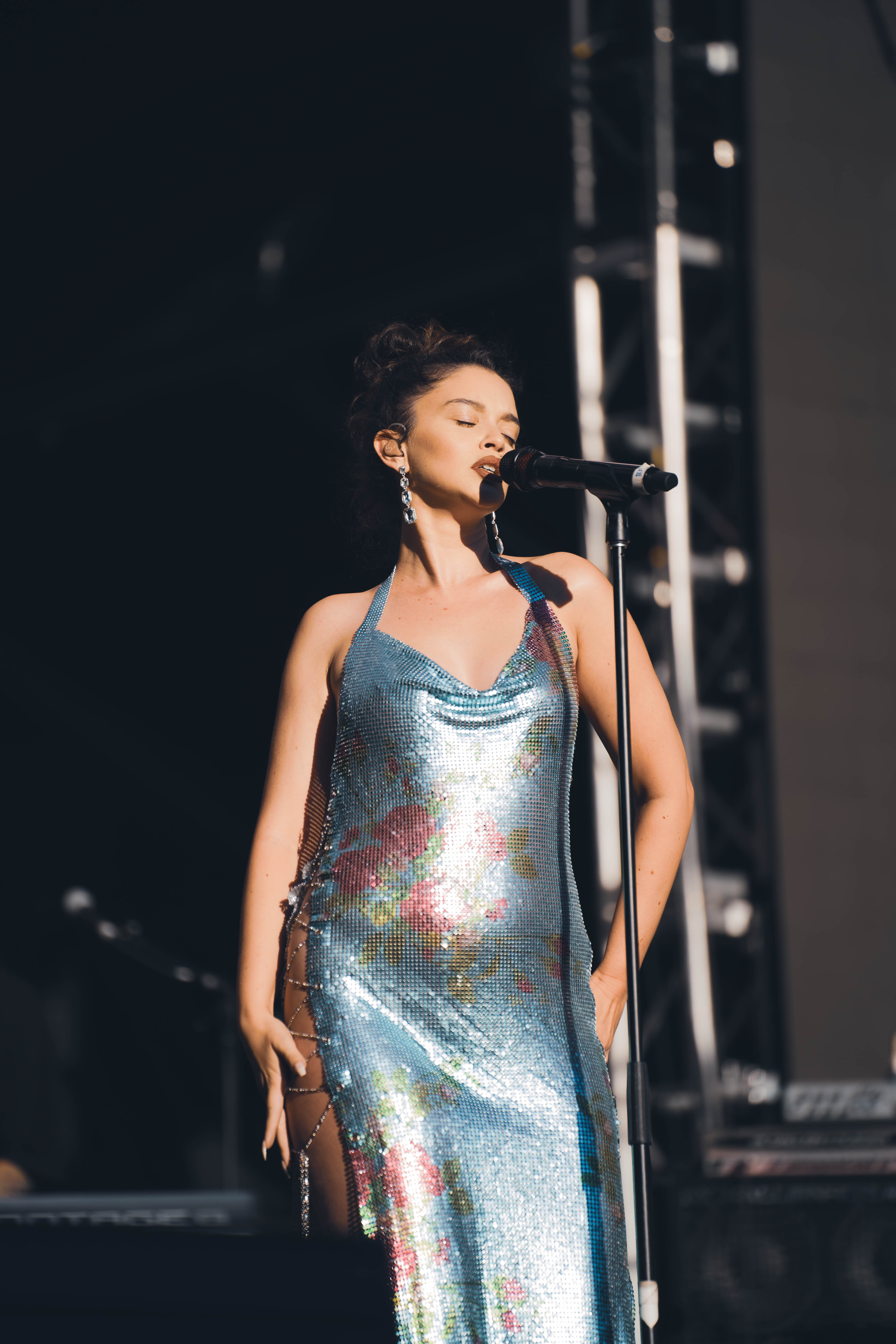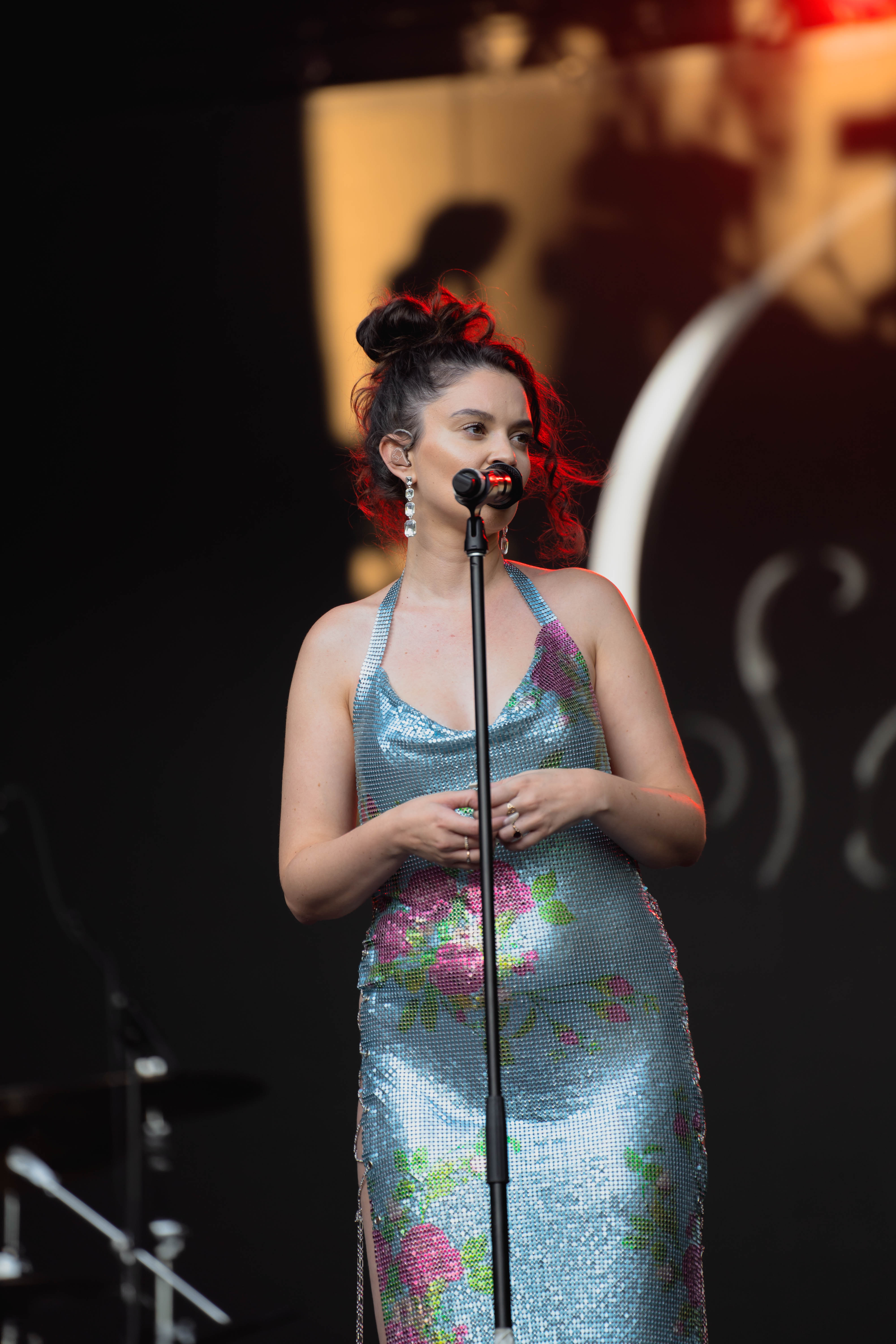 Taking the Blume Stage, Sabrina Claudio delivered an electrifying 30-minute set that left the crowd in awe. Despite the abbreviated performance duration compared to her full concerts, Claudio managed to captivate and invigorate her audience. At precisely 6:30 PM, a beaming Sabrina Claudio emerged onto the stage, eliciting roars of excitement from the crowd. Dressed in a sparkling sequin dress adorned with delicate flowers, she effortlessly commanded attention. An unforgettable moment occurred as Claudio interacted with a fan in the front row, playfully inquiring, “Are you from TikTok? Oh my god, I love your videos.” The exchange, met with laughter, seamlessly melded into her musical journey, leaving the audience yearning for more.