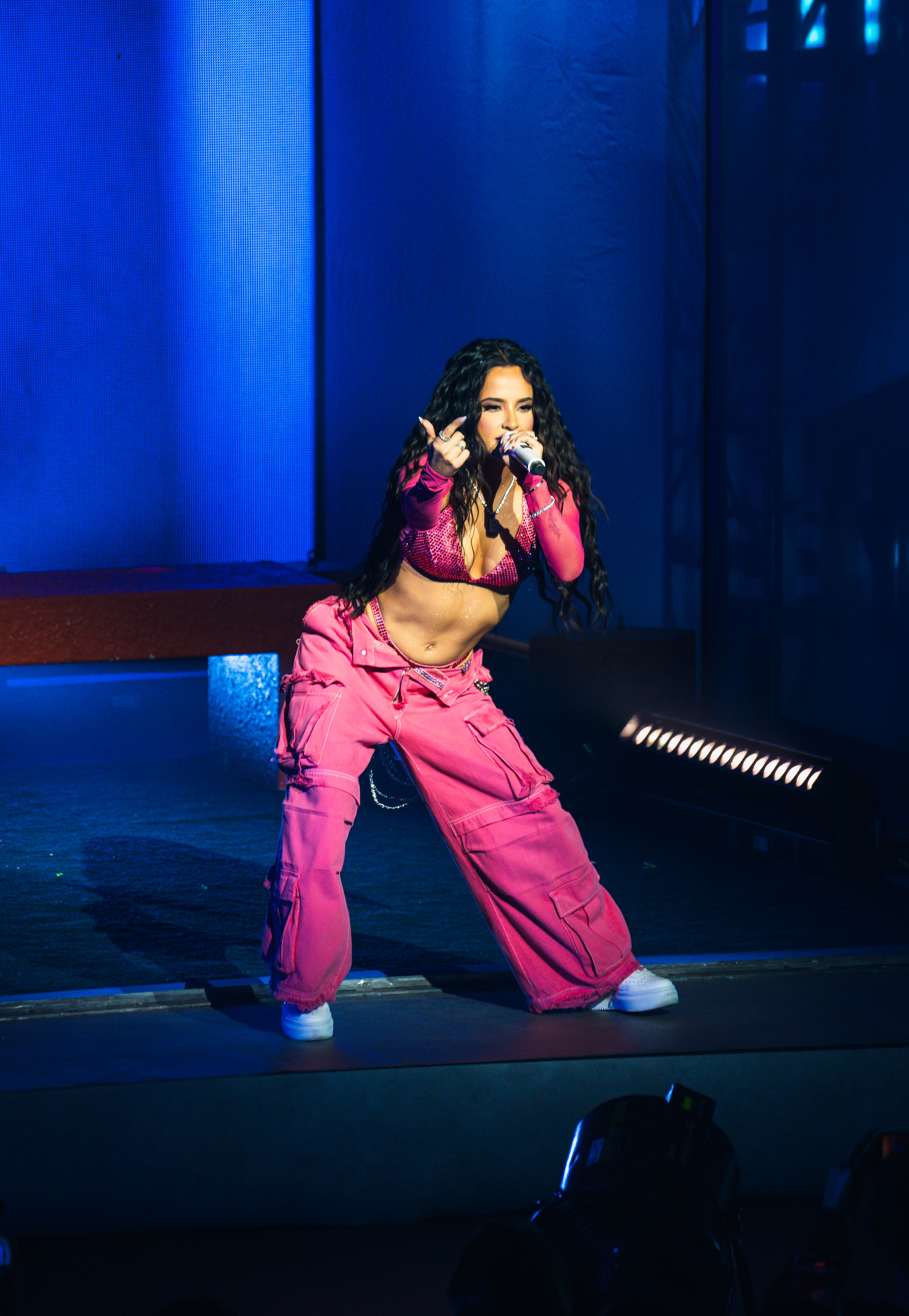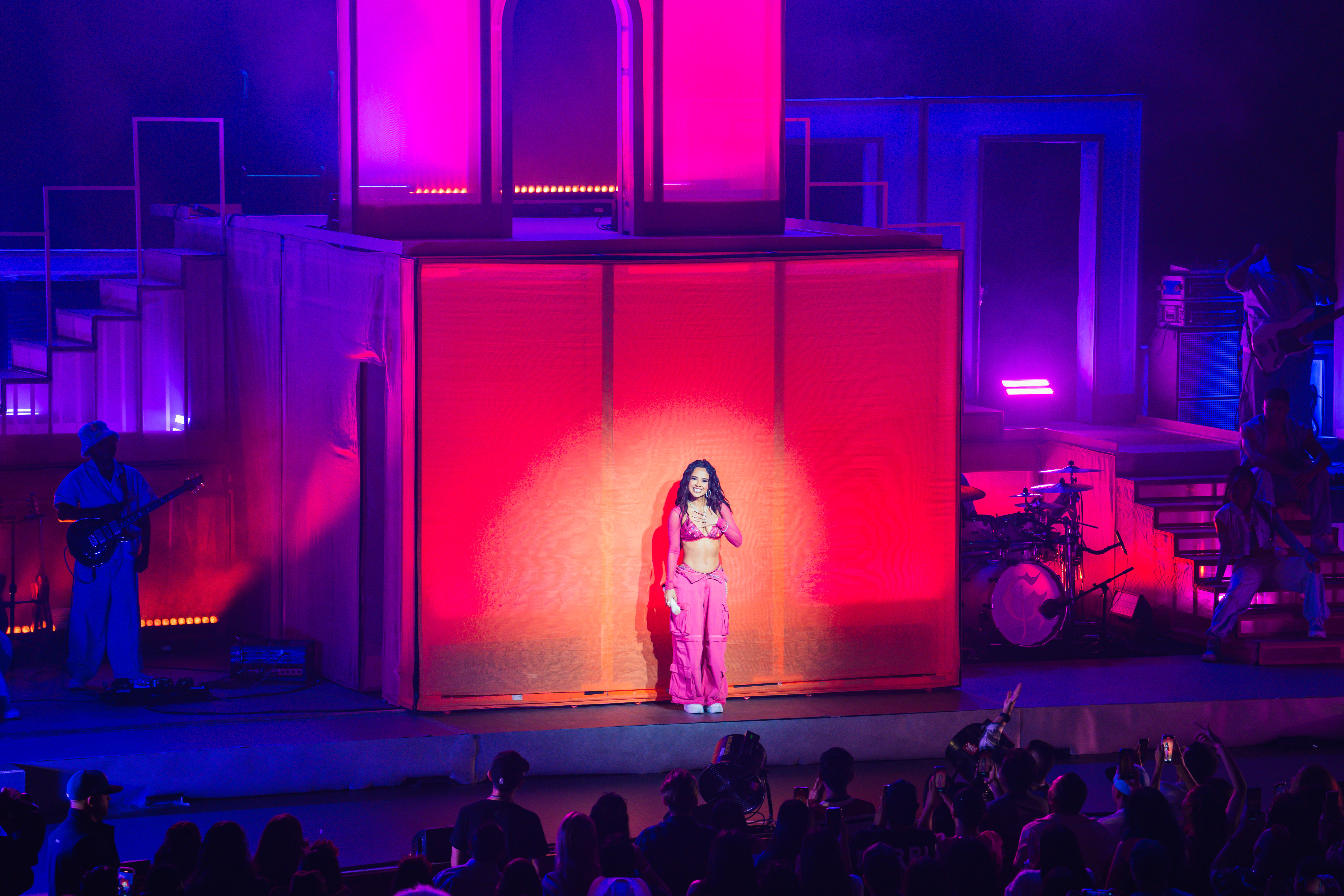 At 9:15, the night kicked off with Becky G’s chart-topping hit “Mayores,” featuring Bad Bunny. As the pre-chorus built up, the house’s door swung open, revealing Becky G herself. The performance gained momentum, and Becky G joined her dancers, captivating the audience with her energy and talent.