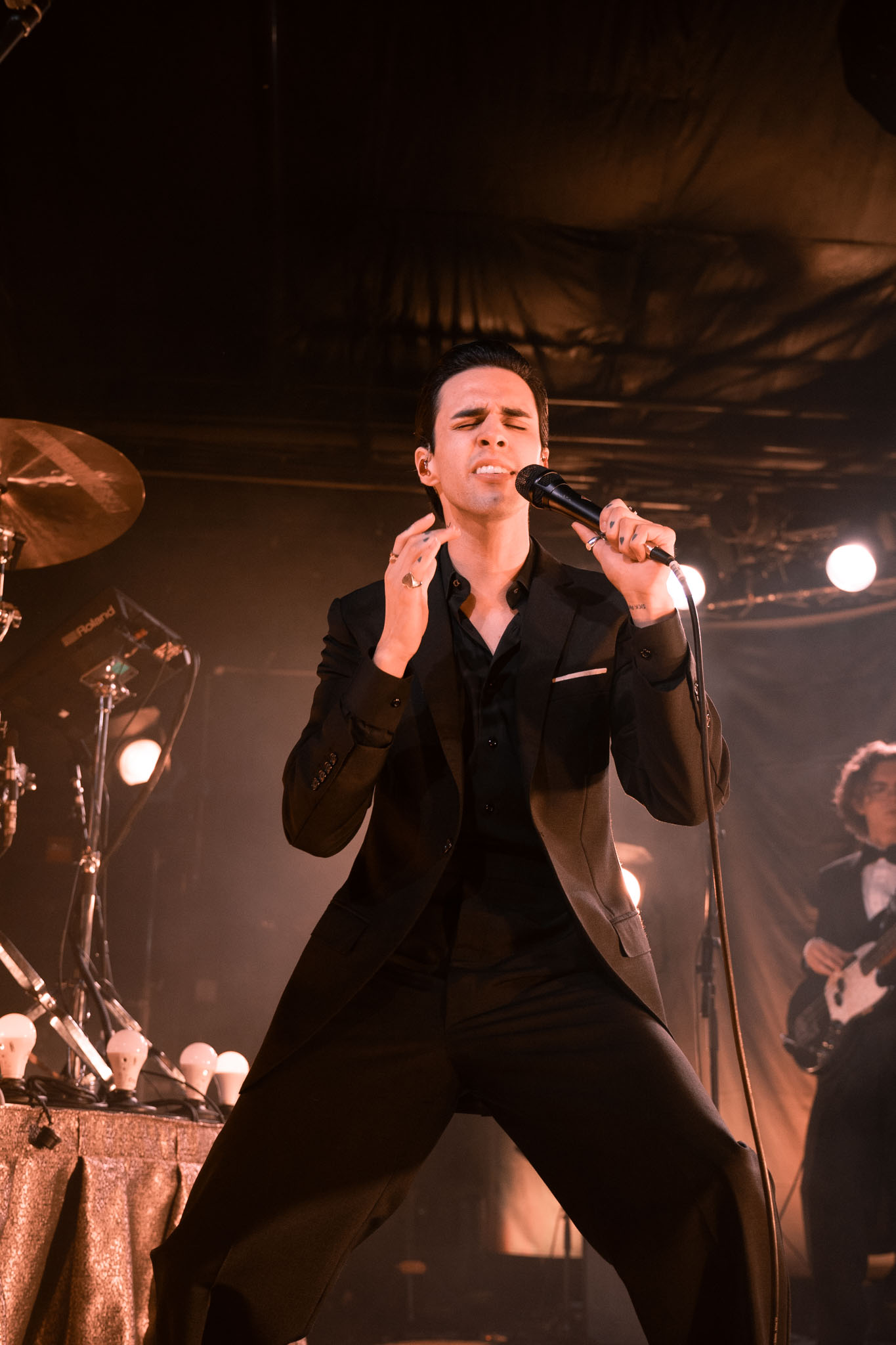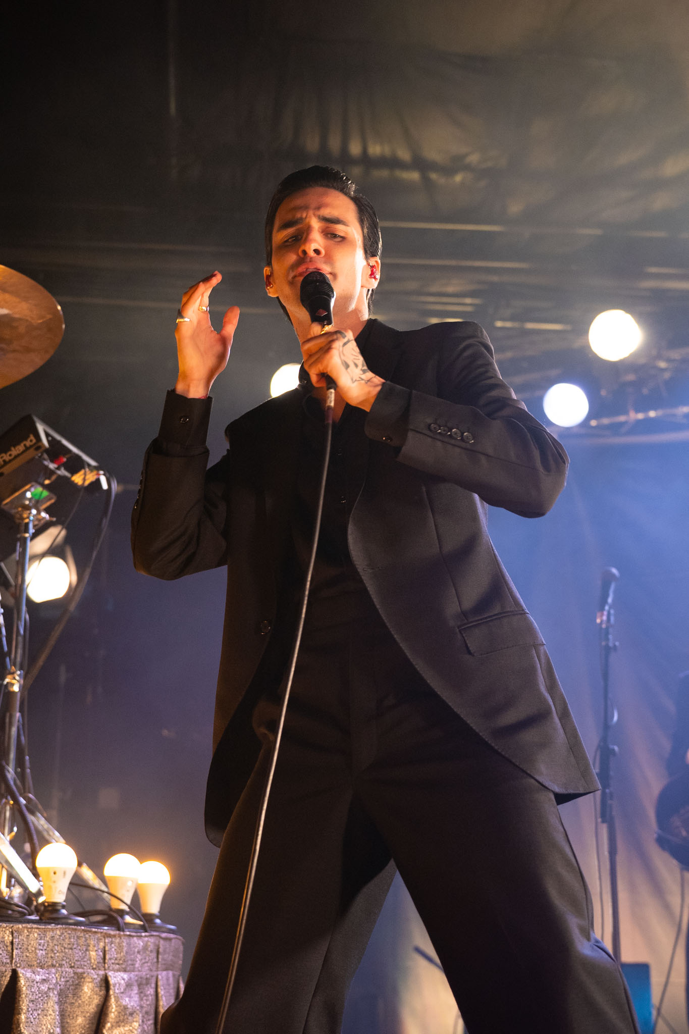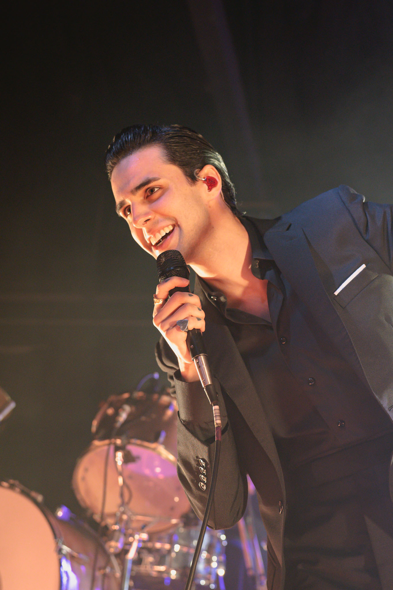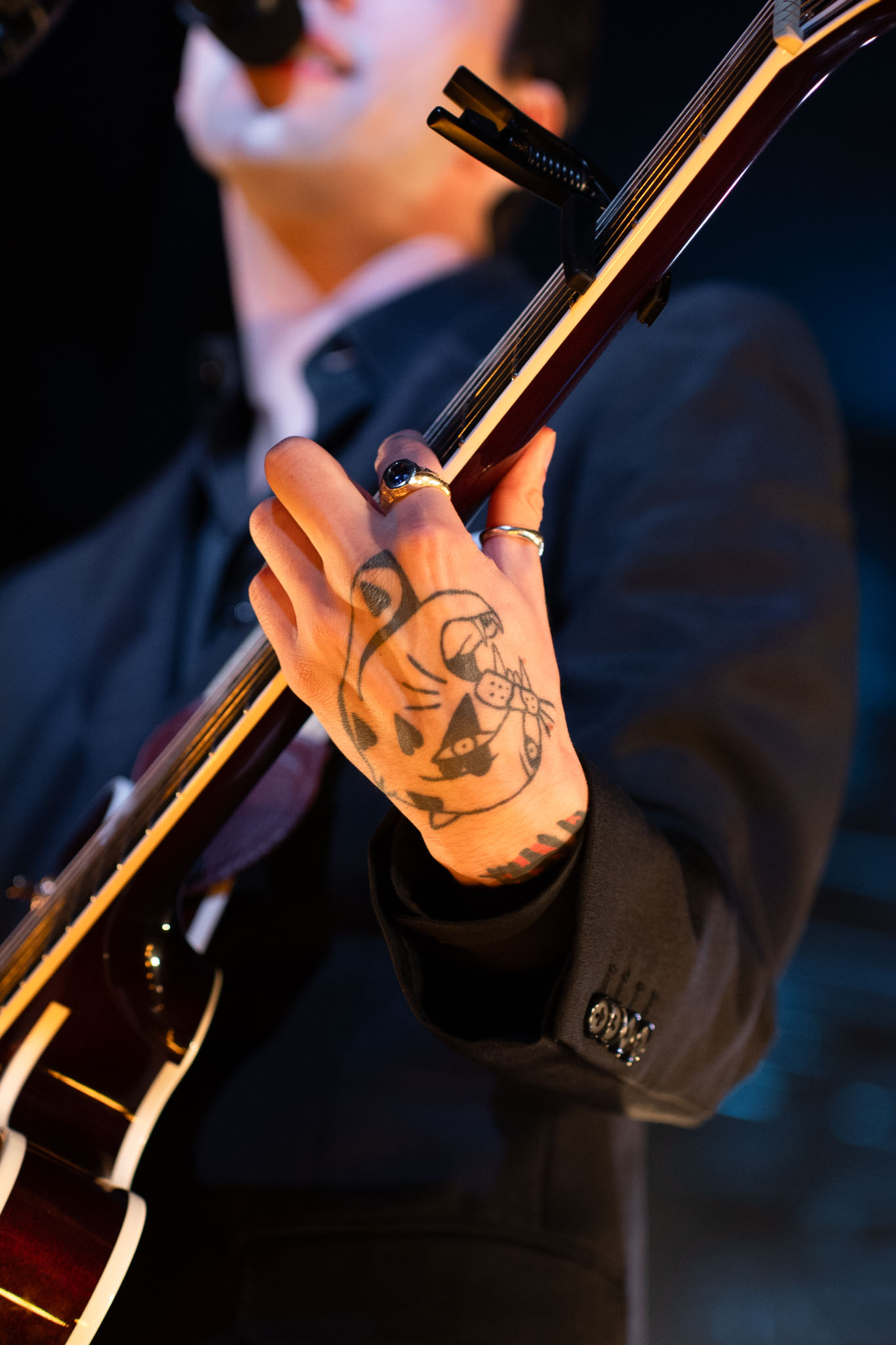 As Sanchez took the stage around 9:30, the audience was met with a captivating vintage atmosphere. A line of light bulbs adorned the front of the stage and surrounded the instruments, casting an enchanting glow that transported us back in time. Sanchez himself made a grand entrance, dressed with the sleek elegance of Elvis Presley, complete with slicked-back hair. The moment he appeared, fans erupted into ecstatic cheers.