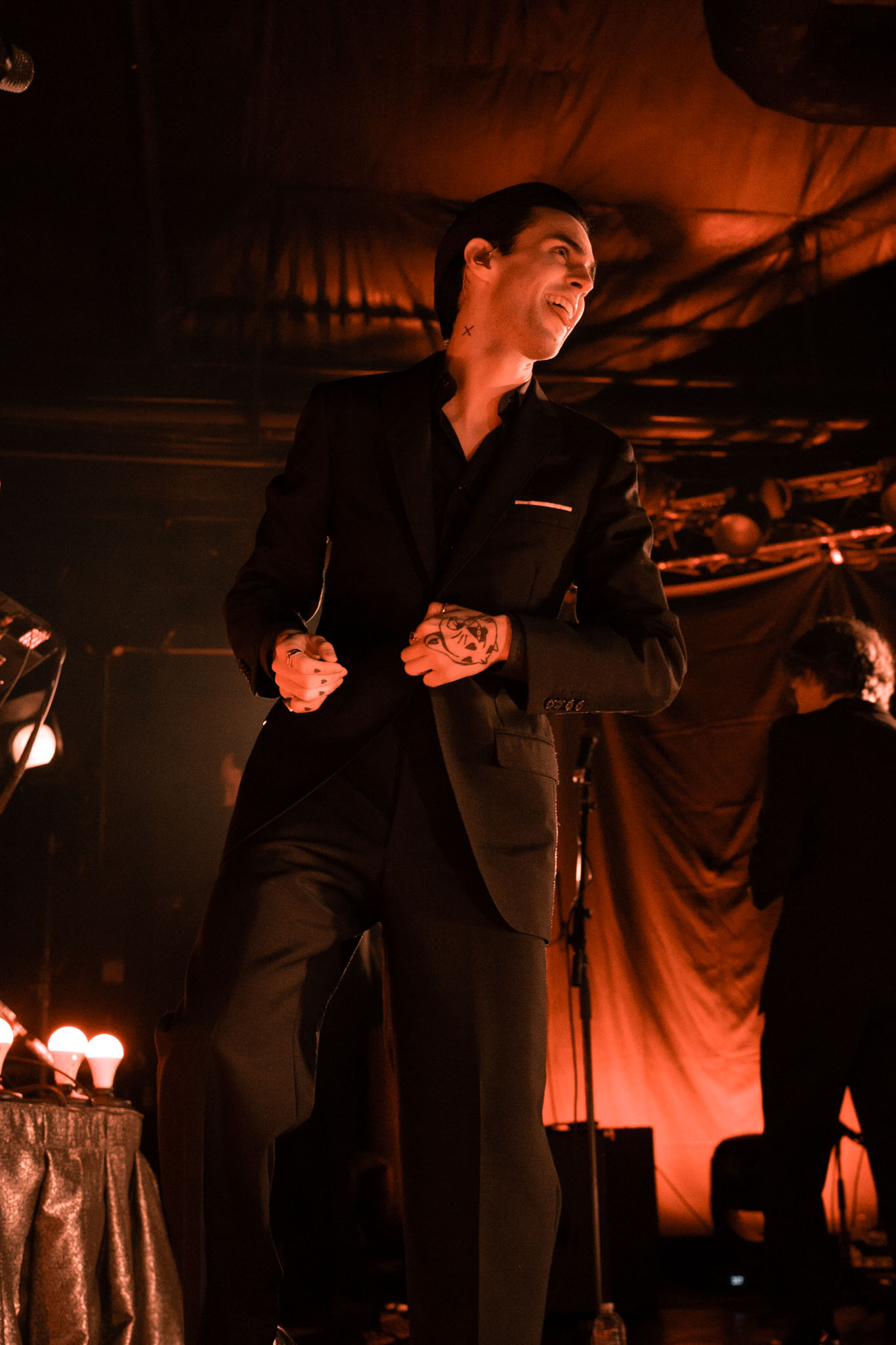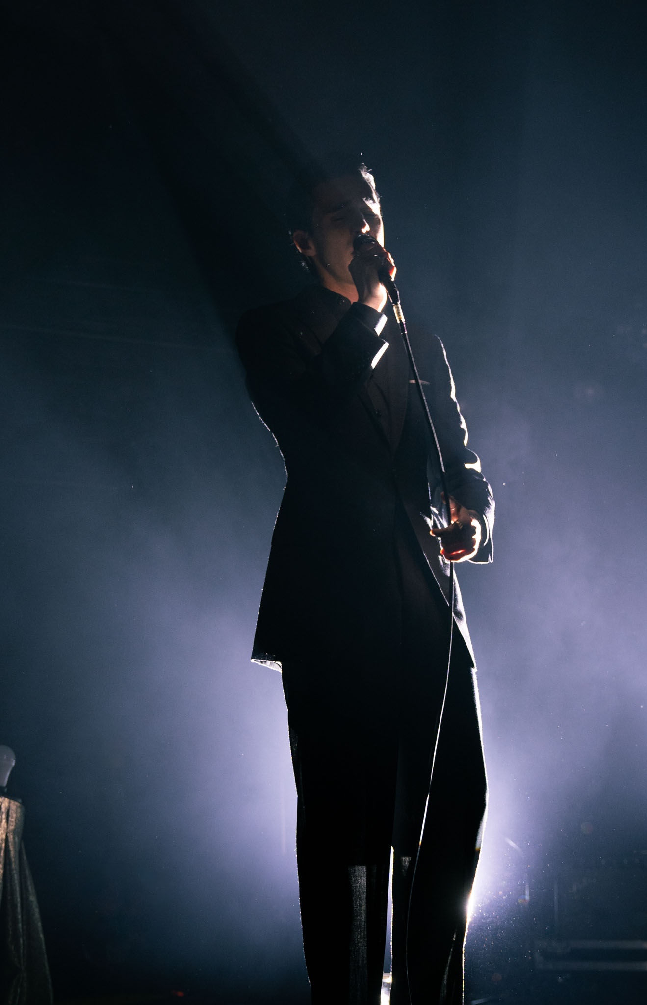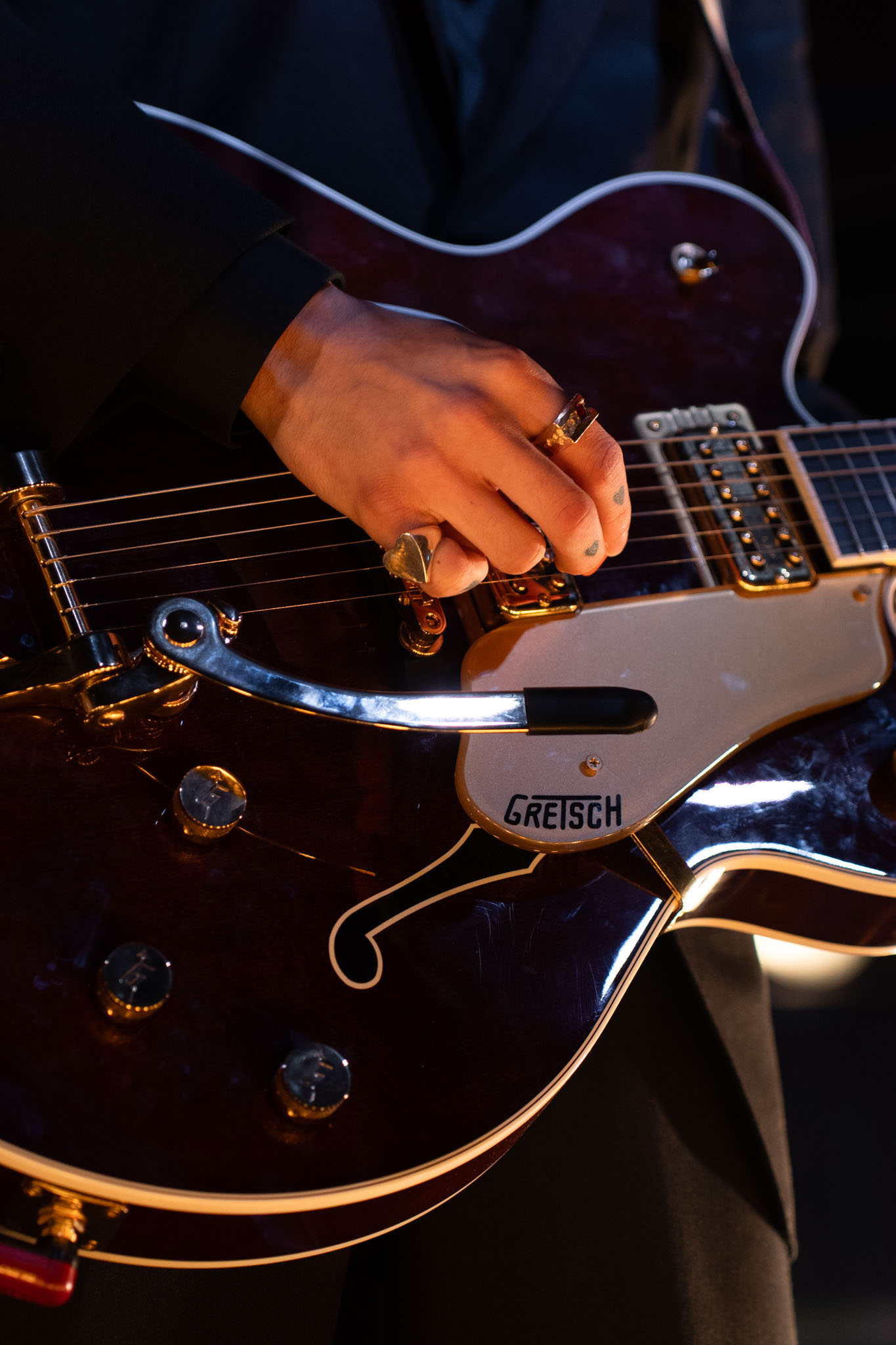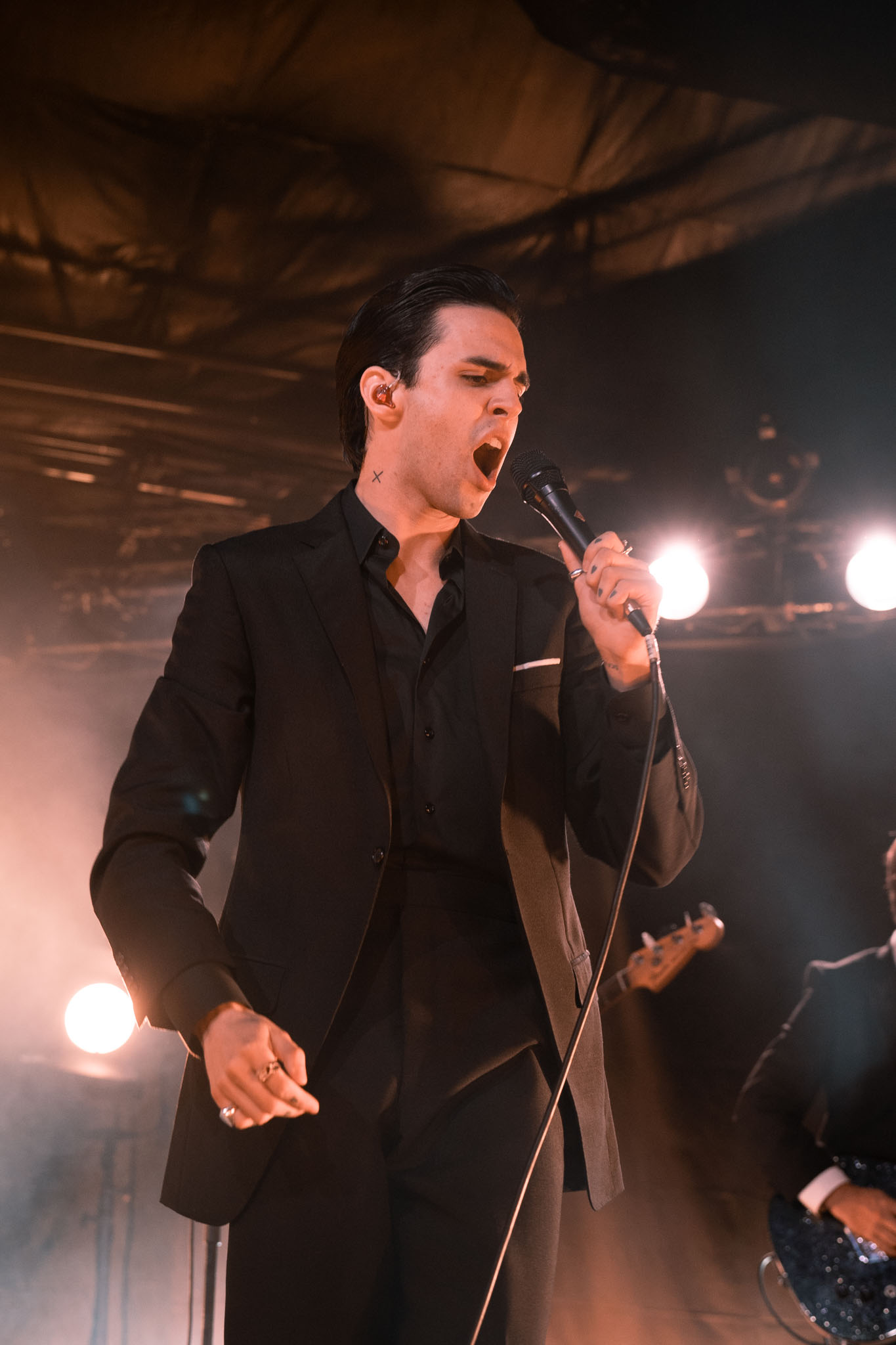 As Sanchez took the stage around 9:30, the audience was met with a captivating vintage atmosphere. A line of light bulbs adorned the front of the stage and surrounded the instruments, casting an enchanting glow that transported us back in time. Sanchez himself made a grand entrance, dressed with the sleek elegance of Elvis Presley, complete with slicked-back hair. The moment he appeared, fans erupted into ecstatic cheers.