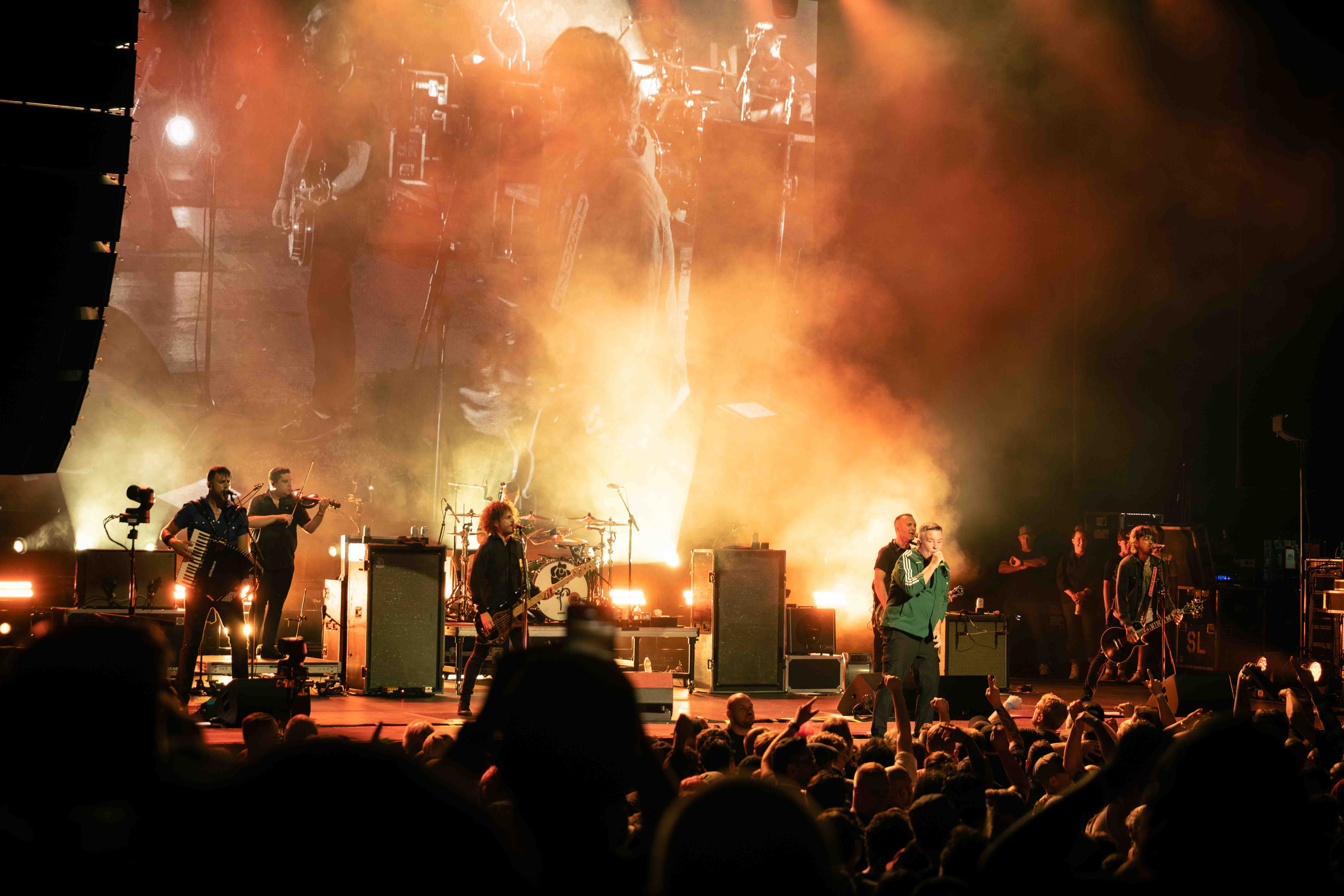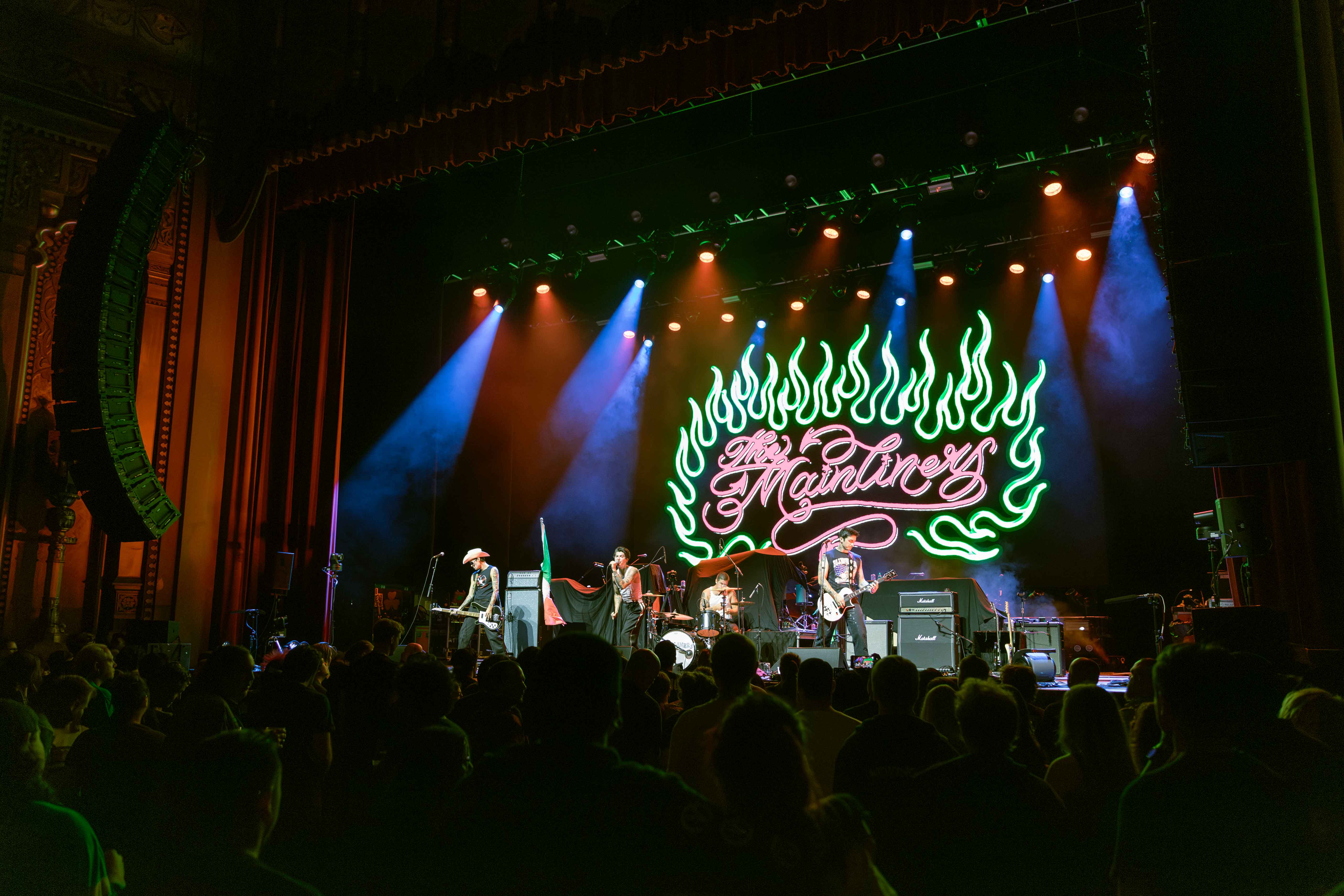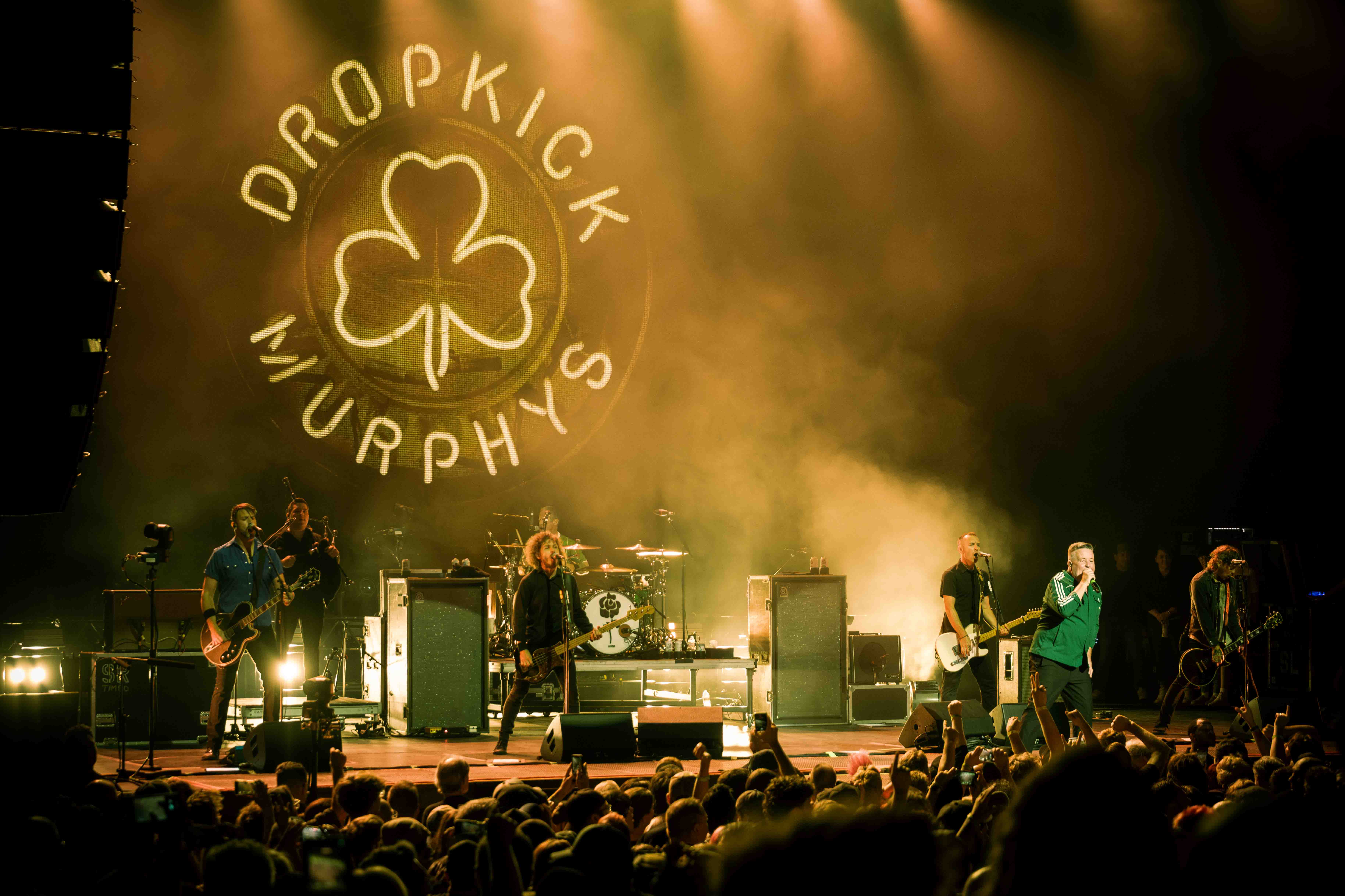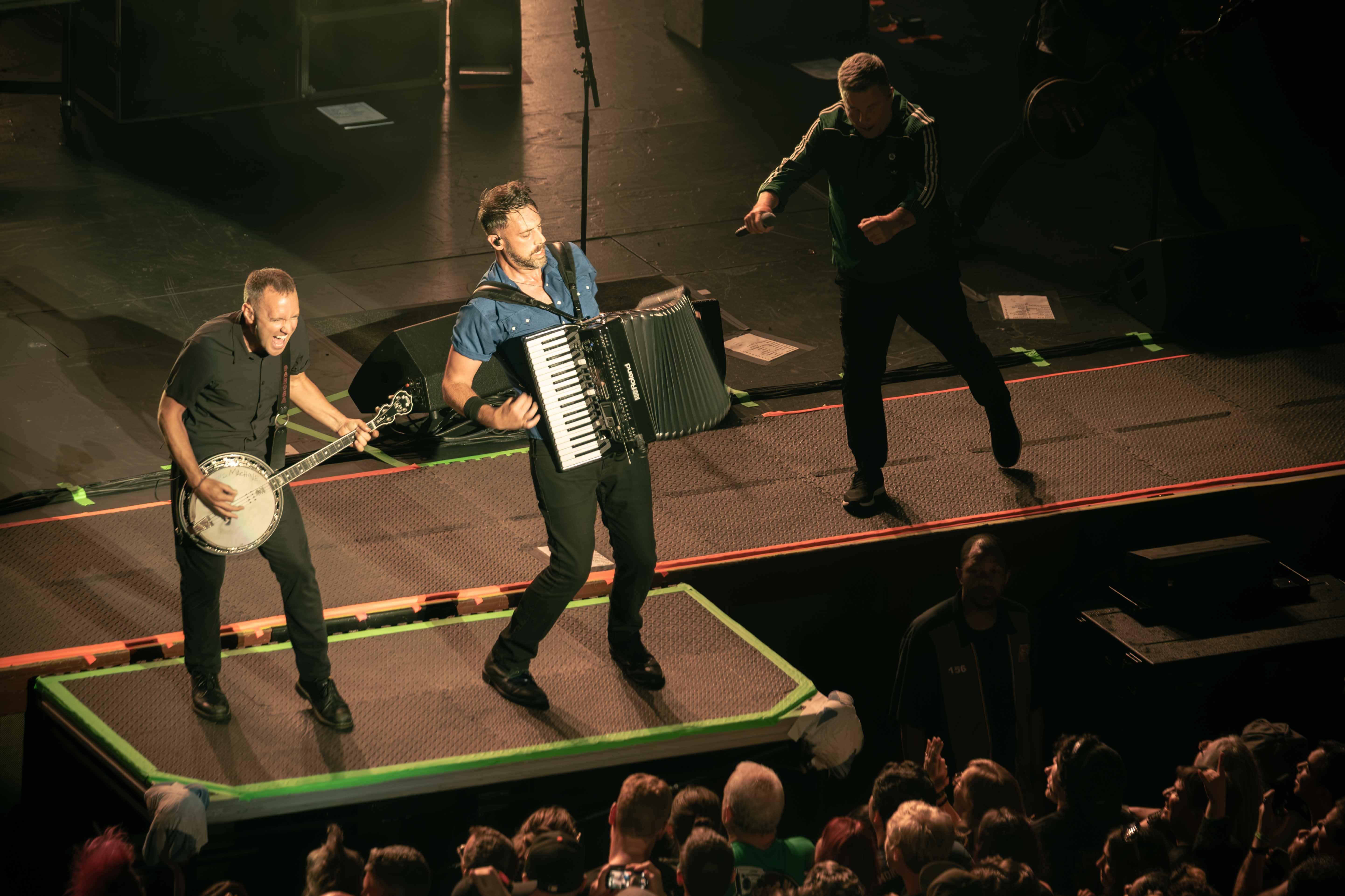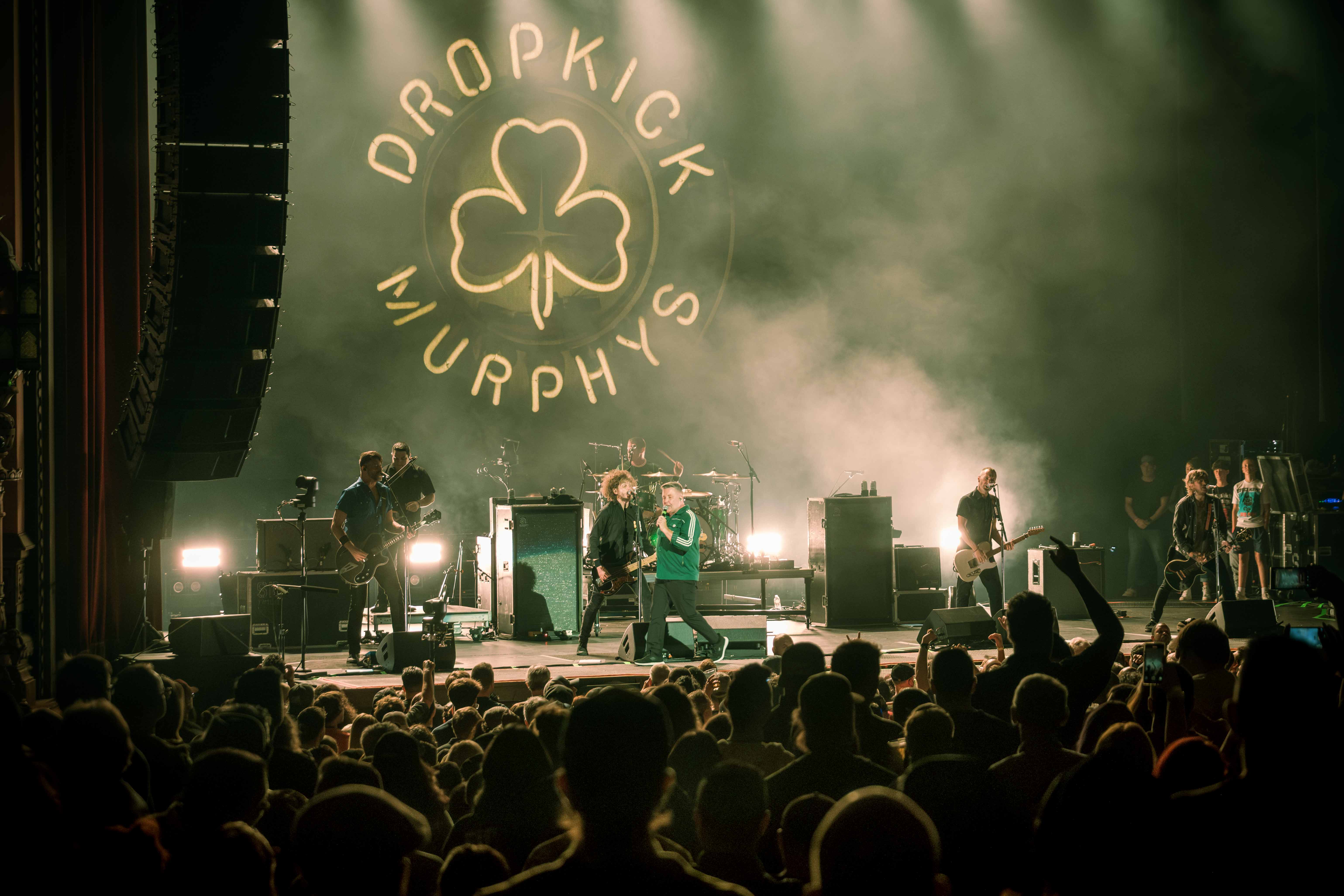 This year has been overflowing with fuel for pointed punk, and Dropkick Murphys are more than happy to keep their tank topped up. Riding the energy from a blistering set on Sunday at the Vans Warped Tour in Long Beach, lead singer Ken Casey spent a full seventy-five minutes weaving between and around the band (Tim Brennan, Jeff DaRosa, Matt Kelly, James Lynch, Kevin Rheault) and singing up-close and personal with the crowd at Oakland’s Fox Theater in a show that was more rousing communal chorus than concert. Picking deep cuts from early albums (“Skinhead on the MBTA”, “Caught In A Jar”) to sprinkle in among selections from their most recent album (“Who’ll Stand With Us?”, “Chesterfields & Aftershave”), their encore of biggest hits had the audience shaking the venue to end the night. Sharing the night’s billing with them were punk veterans Bad Religion, showing that four and a half decades have not dulled their edge in the least. Newcomers The Mainliners, whose brand of fuzzy punk was quick to get the crowd in the rhythm for the evening, effortlessly warmed up the stage for both.