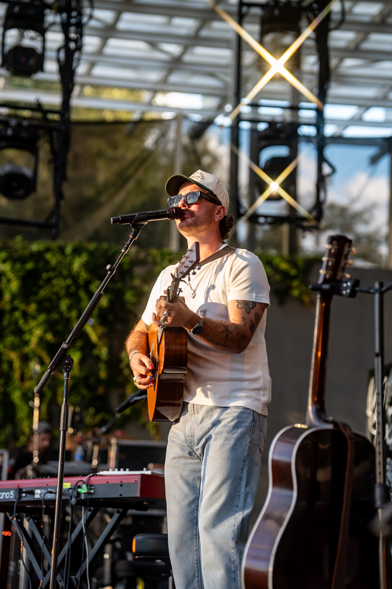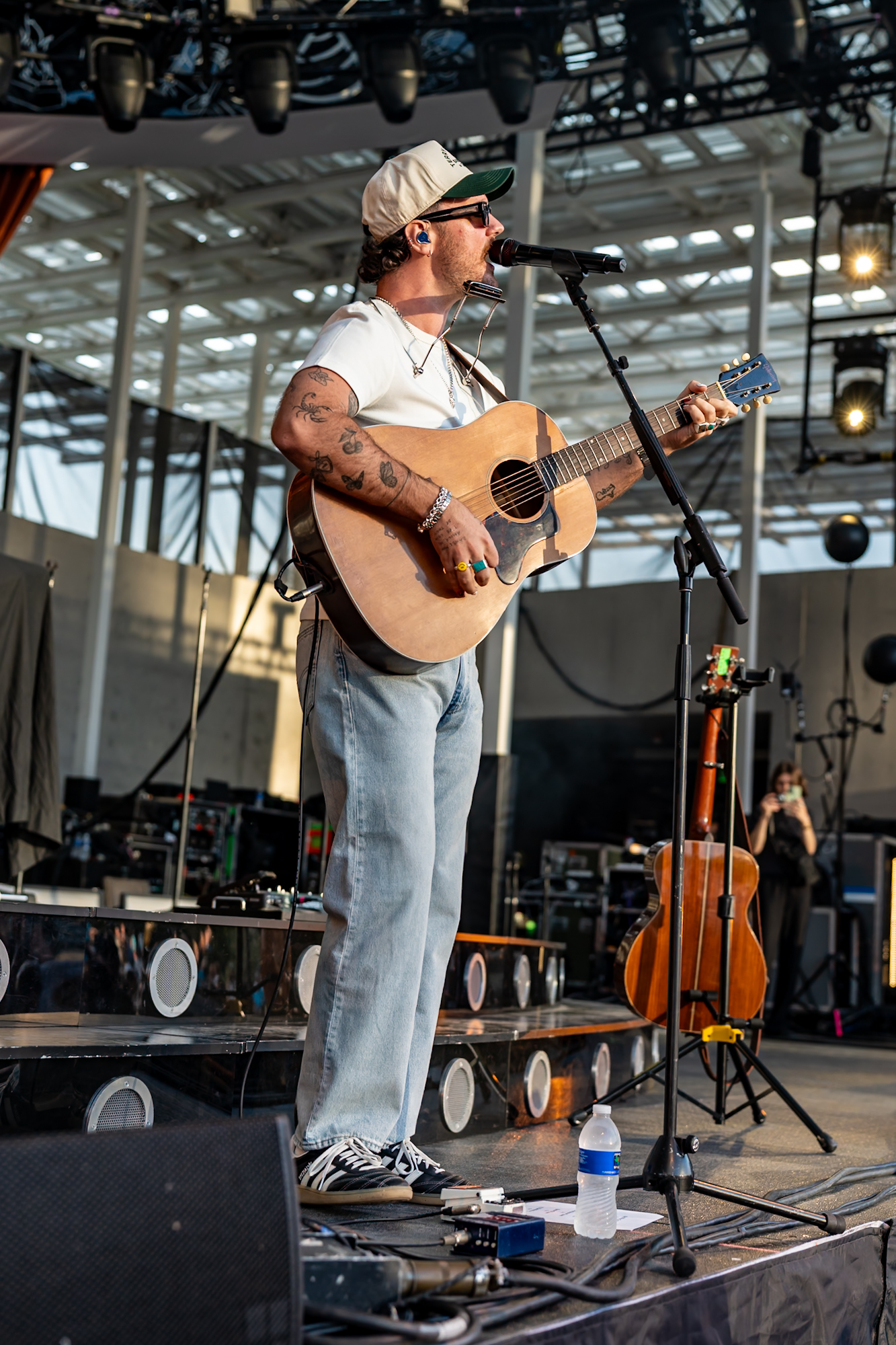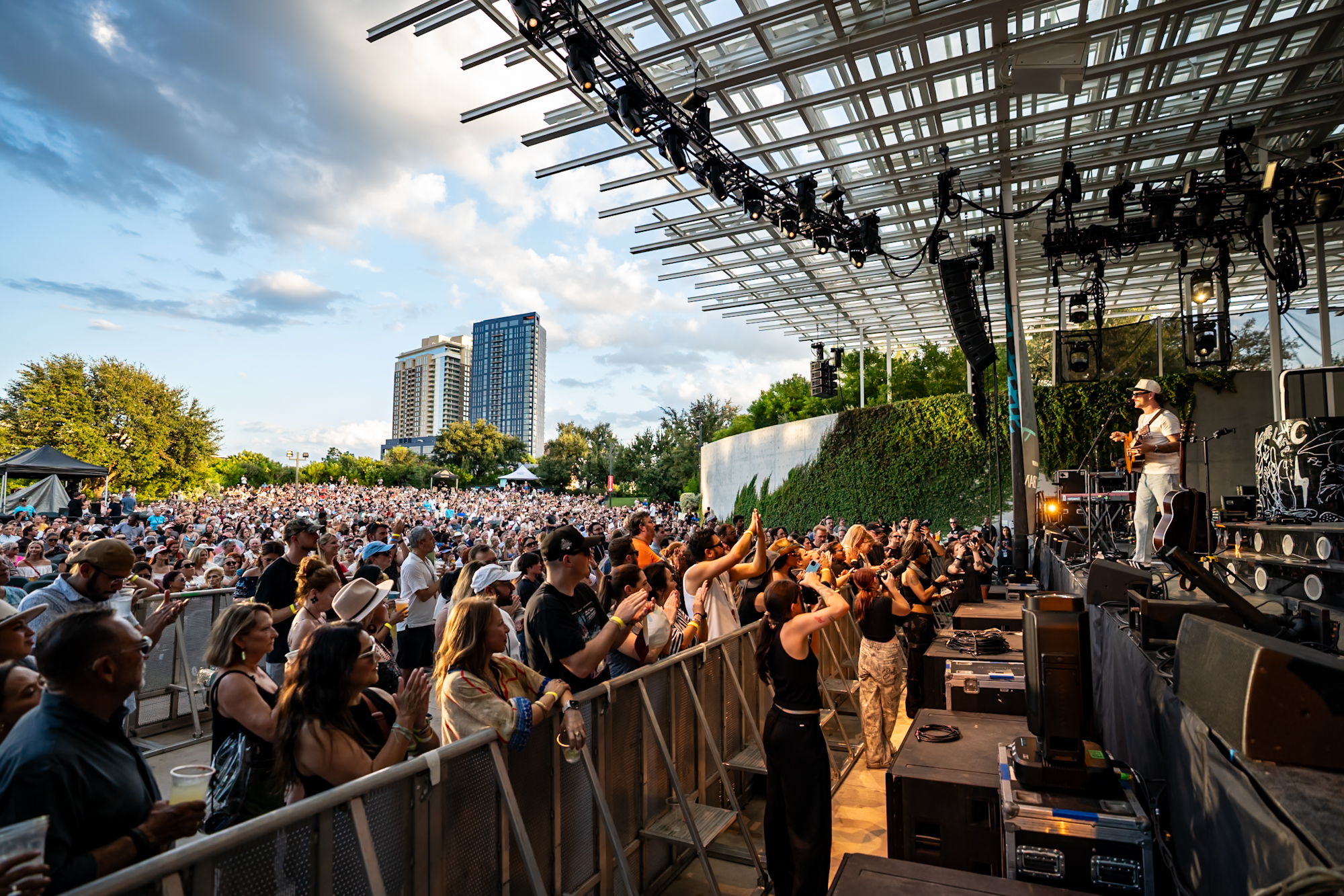 The Texas heat lingered as the sun dipped behind the Capitol, but that didn’t deter Austin fans from filling Moody Amphitheater. The night began at 7:28 p.m. when Cian Ducrot walked onstage with his acoustic guitar, sporting a Terry Black’s hat and immediately charming the crowd with his endearing Irish charm and mellow voice. He confessed his uncertainty about Terry Black’s BBQ quality, saying “it was good but a little bit salty.” The jab drew a mixture of laughter and good-natured boos from locals who are passionate about their brisket. Ducrot wrapped his set at 8 p.m., leaving the atmosphere electric with anticipation for what was about to follow.