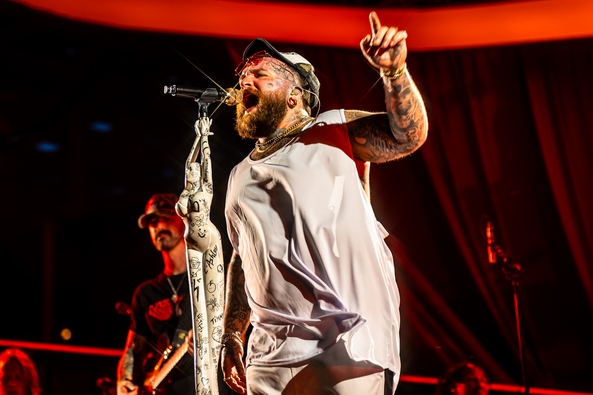 Early in the set, he dedicated “Need You More” to the woman who carried his newborn son. “I’ve been a dad for just over a month,” he said with a smile that made it clear it still didn’t feel real. “It’s the coolest thing I’ve ever done. Natural home birth… my girl is a superhero. Tell your mom any chance you get you’re lucky to have her.” Then as he began “Small Hands,” the crowd went still. With just his voice and an acoustic guitar, the raw emotion became evident. His voice cracked as he delivered each lyric, struggling to maintain composure. “He’s a lucky little fucker, man,” he said as the crowd chanted “Teddy! Teddy!”—their voices lifting him up when he needed it most.