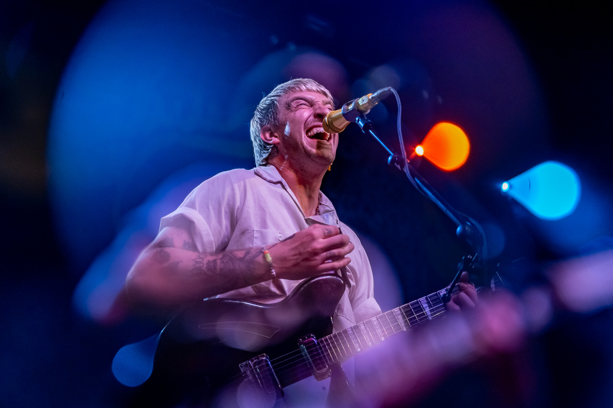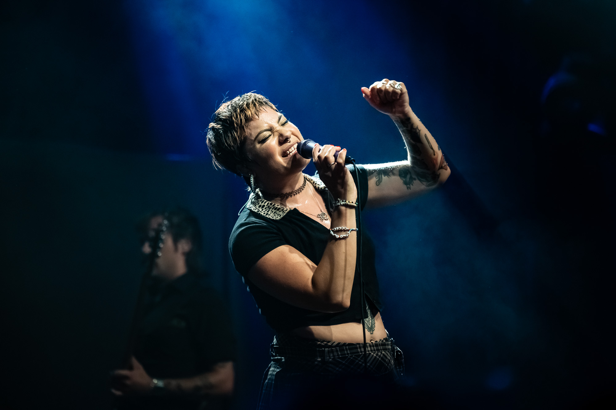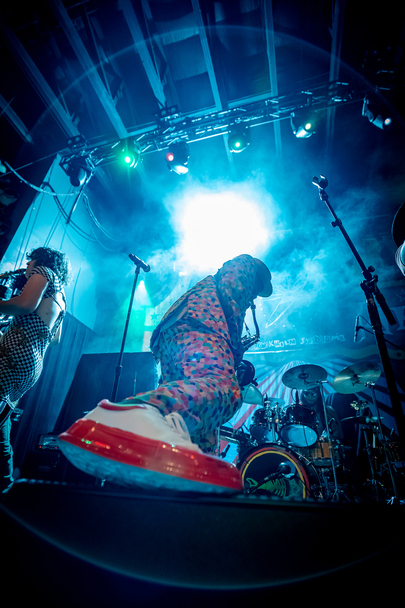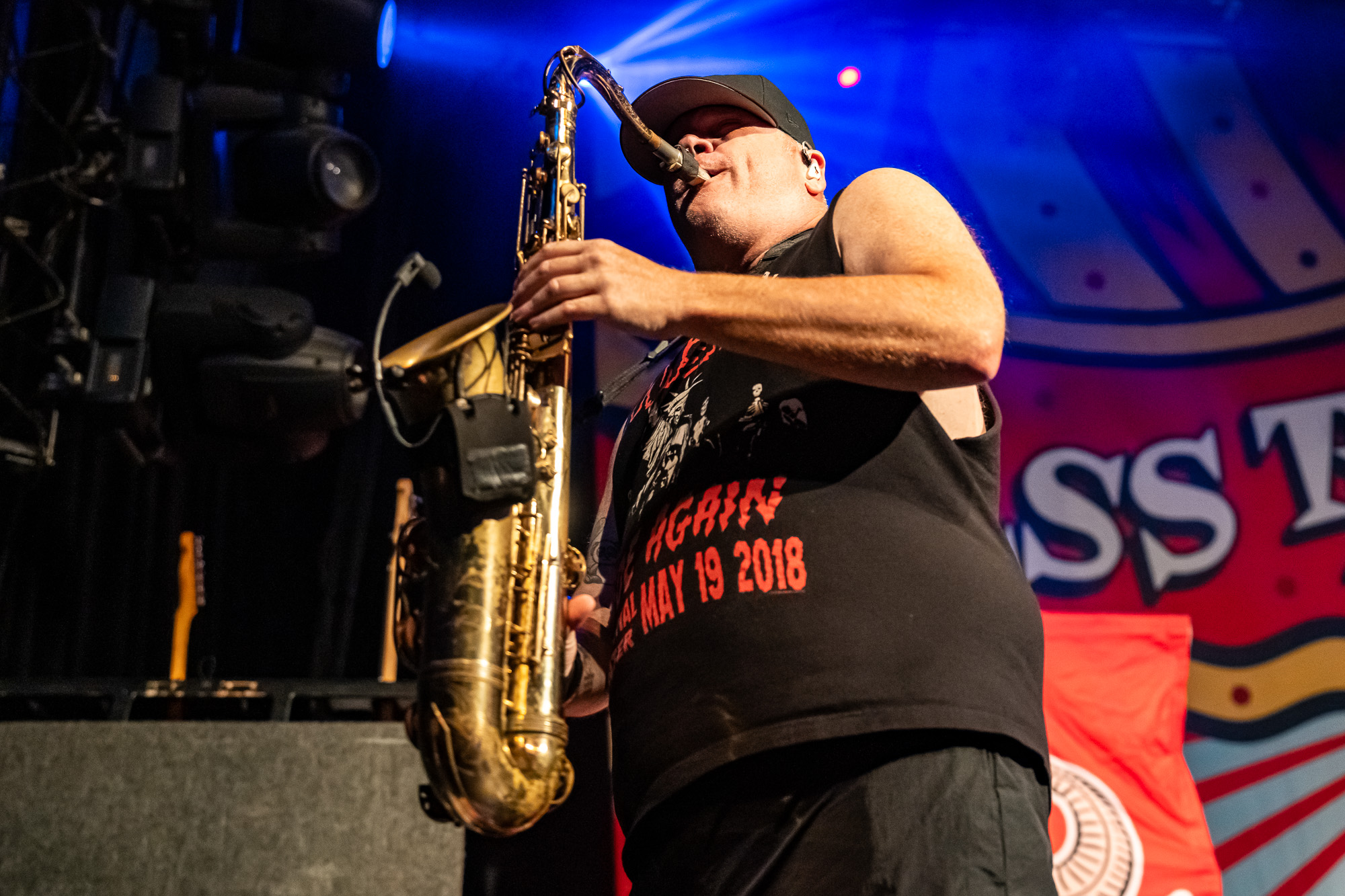 Fishbone took the stage at 8:36 pm, bringing their unmistakable blend of funk, punk, and ska. Saxophone in hand, Angelo Moore commanded every inch of the stage with boundless energy. Their set featured groove-heavy jams, playful audience interaction, and even included the night’s first female guest vocalist. By the time they wrapped up at 9:08 pm, the room buzzed with anticipation.
