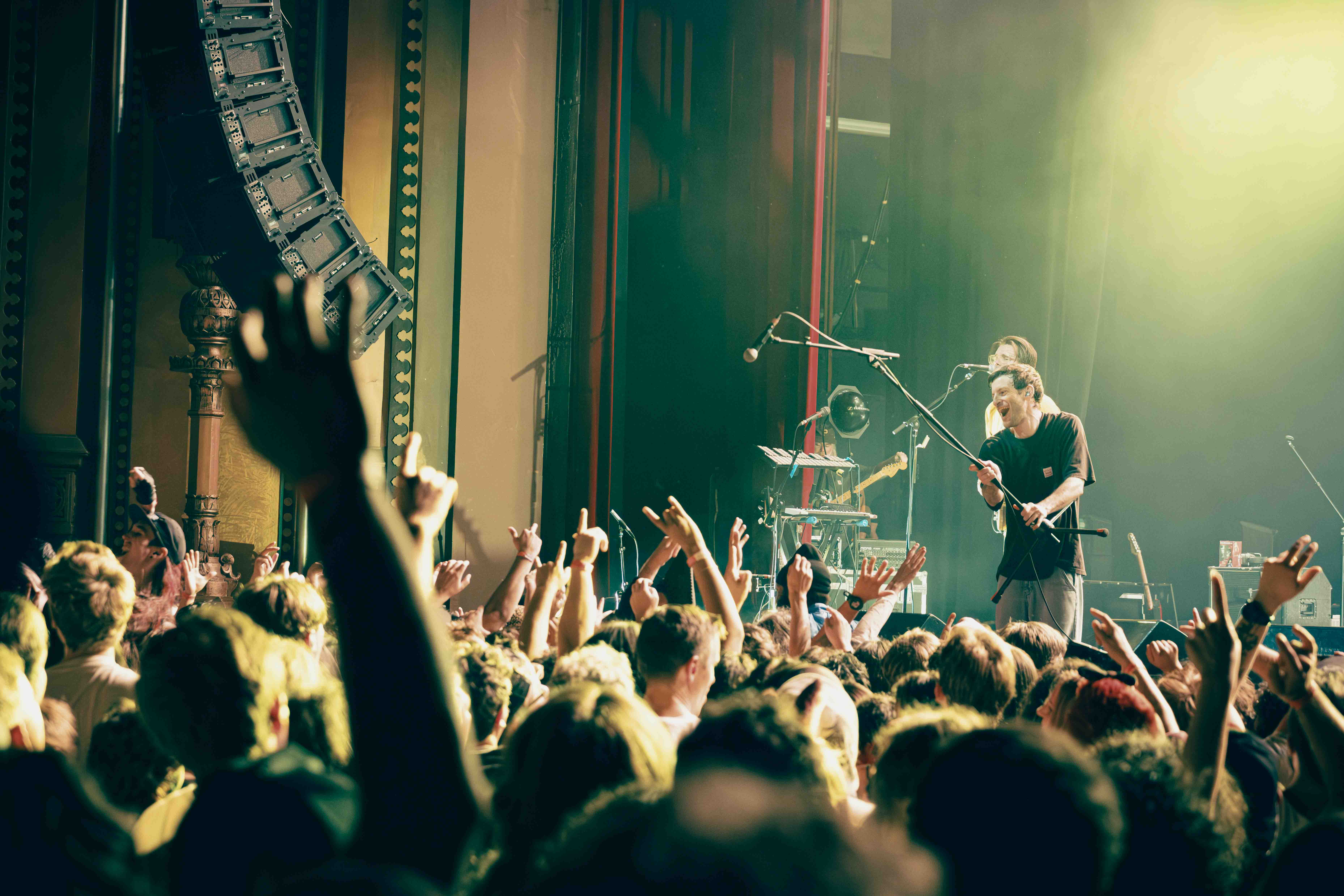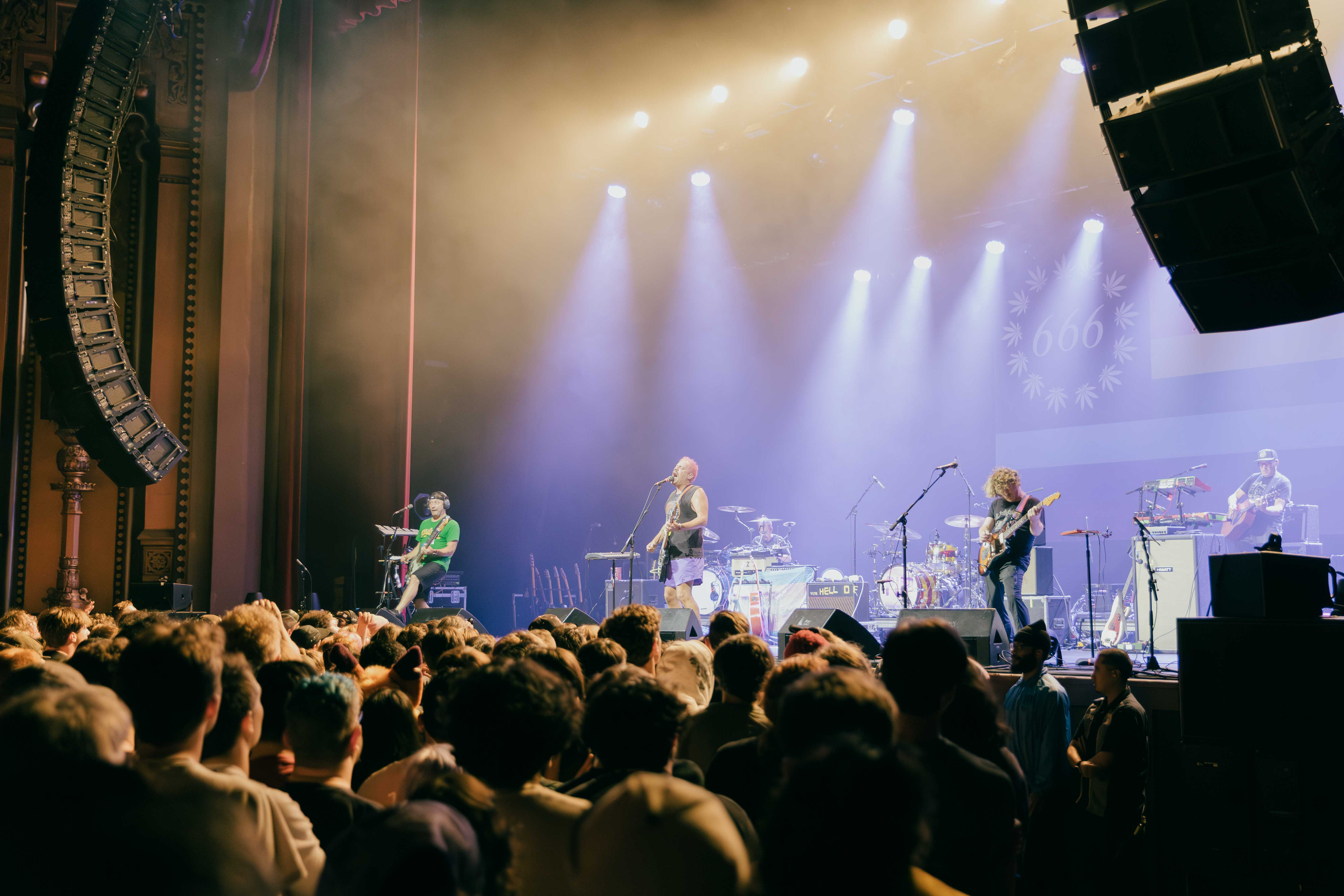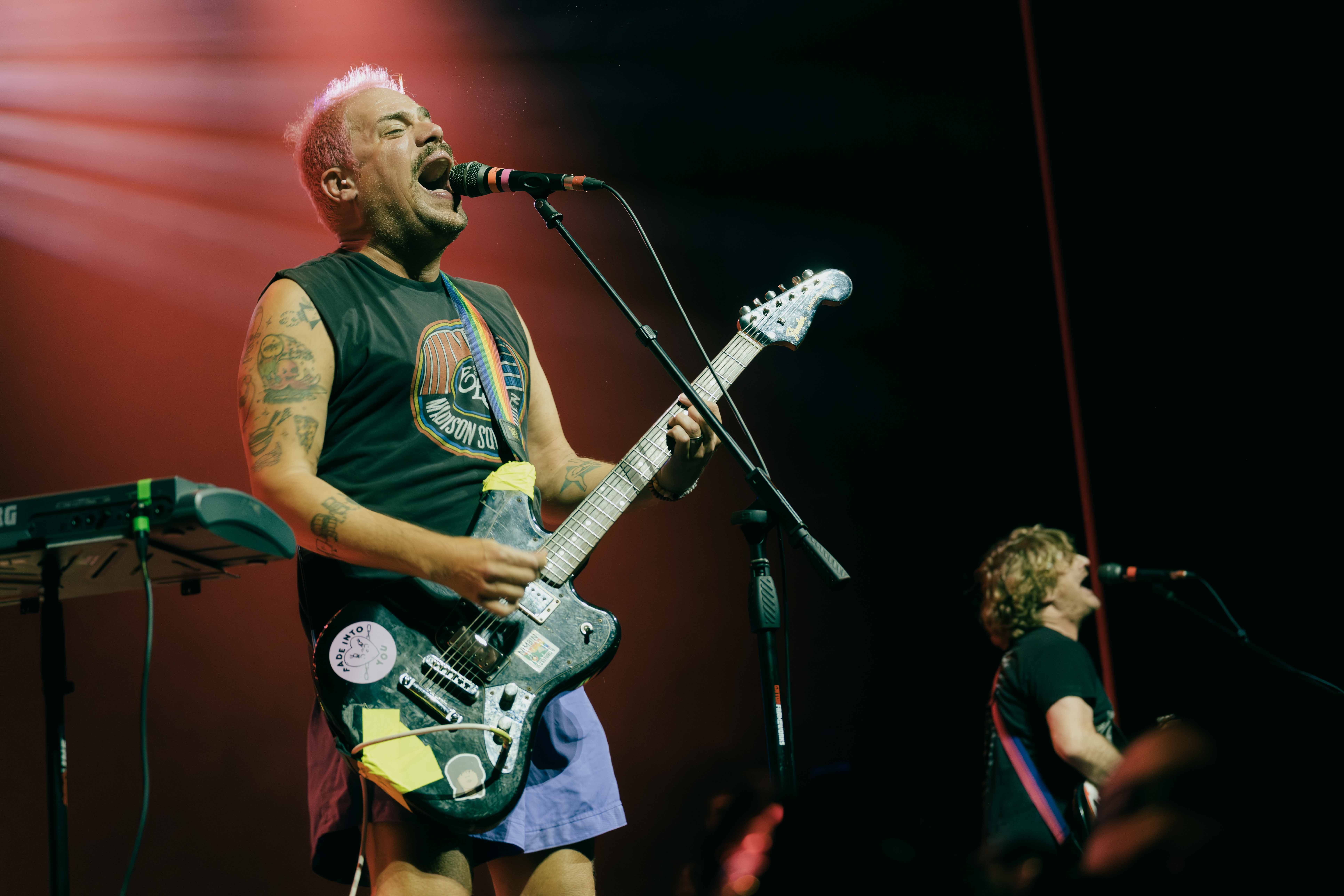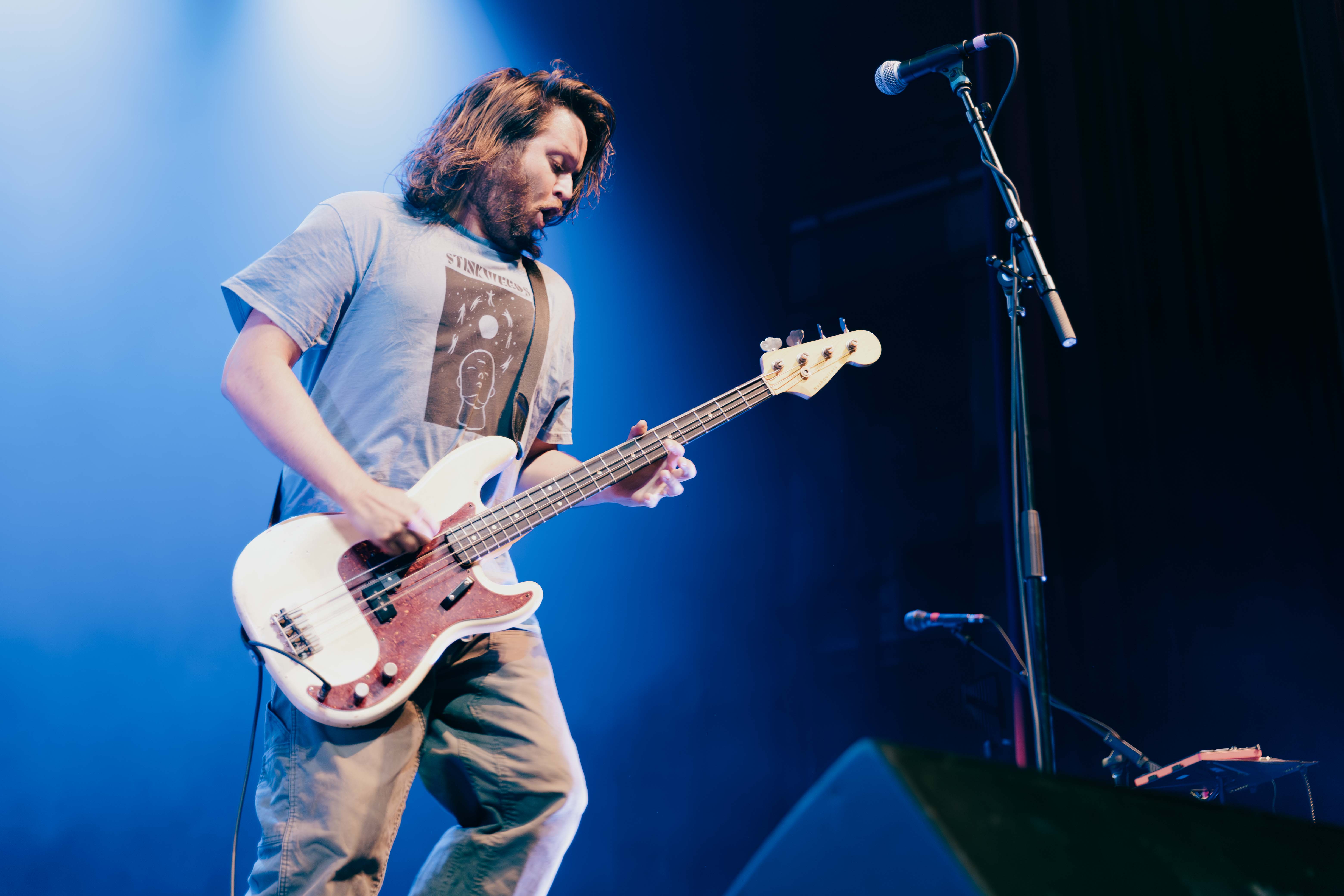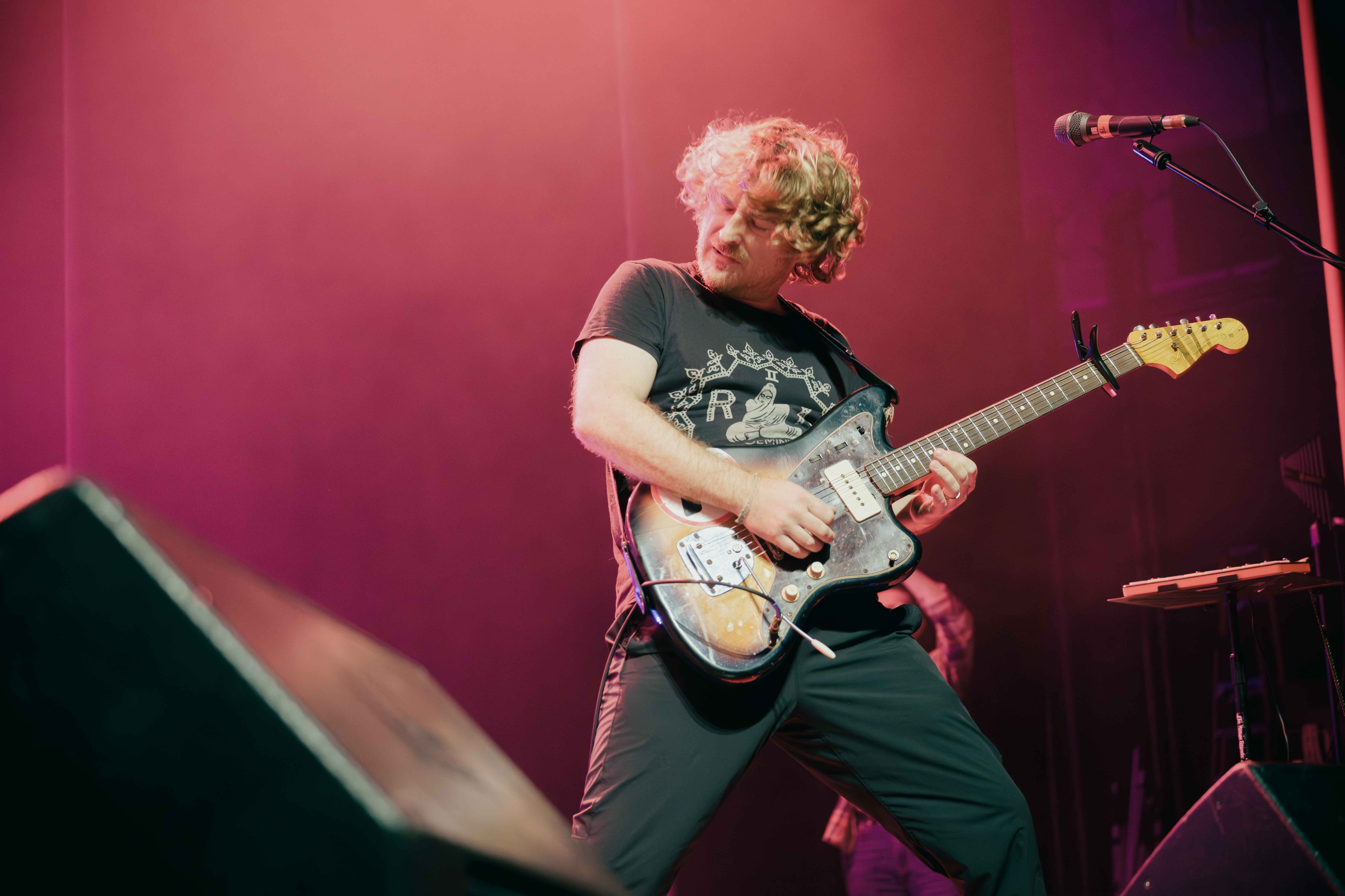 Near the end of the night, Babcock announced that they had prepared a surprise for the audience, and set to the familiar strains of “Thus Spake Zarathustra”, a homemade banner of black cloth and silver gaffer tape rose in the back of the stage, proclaiming “DOUBLE BAND”. So began the highlight of the night, with PUP welcoming Rosenstock and his entourage back on stage to collaborate for four songs. The two bands played together like old friends relishing the height of the party, with Rosenstock whirling around stage between the monitors and Babcock leaping off it for a brief crowdsurf, but the night was not yet finished–both bands invited opener Ekko Astral to share the stage with them as well and closed the night with a raucous cover of Alanis Morisette’s “You Oughta Know” that had concertgoers skipping and shouting out the exits of the Fox Theater–at least, those who didn’t stay for the impromptu dance part in the pit as “Hot to Go!” played post-concert.