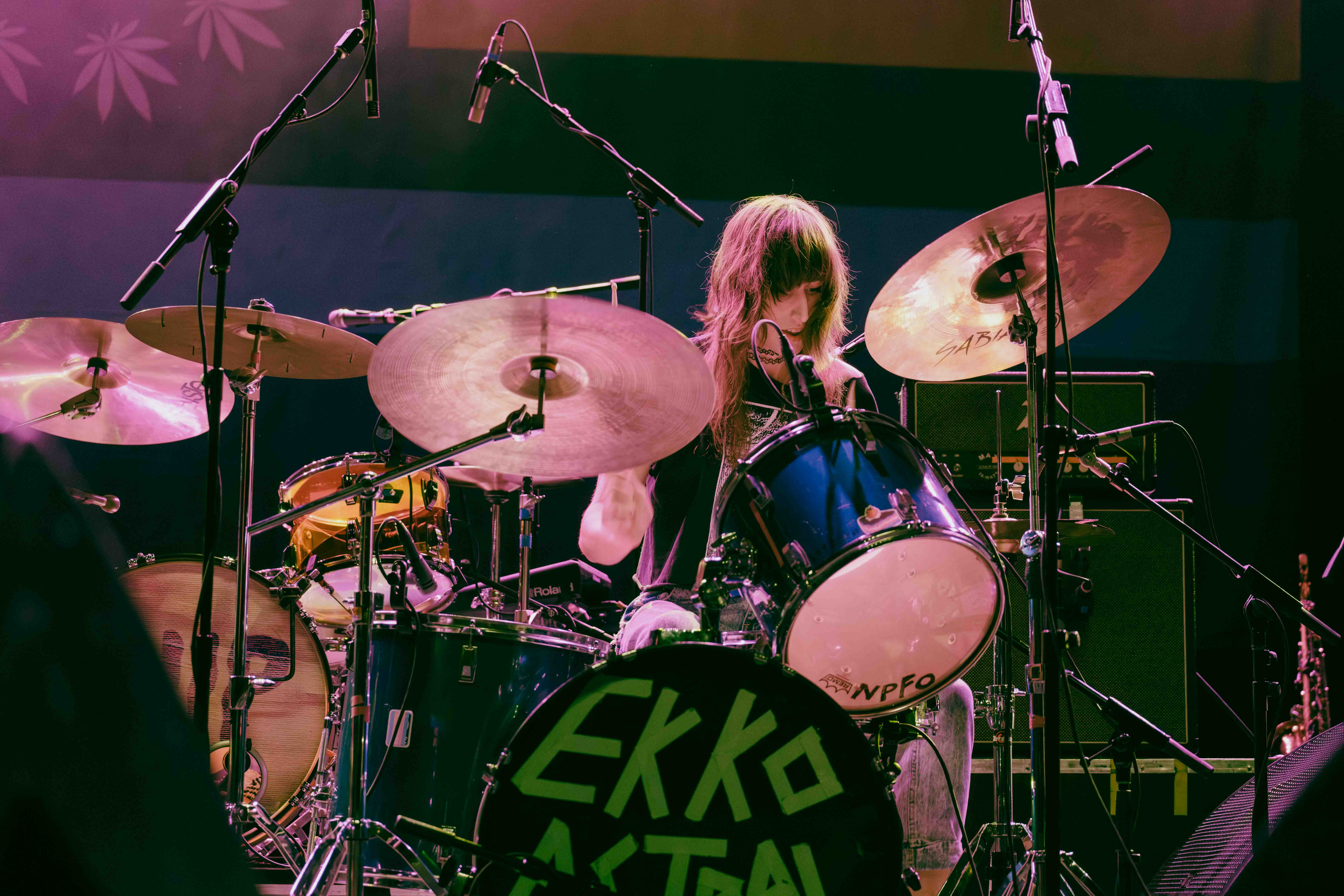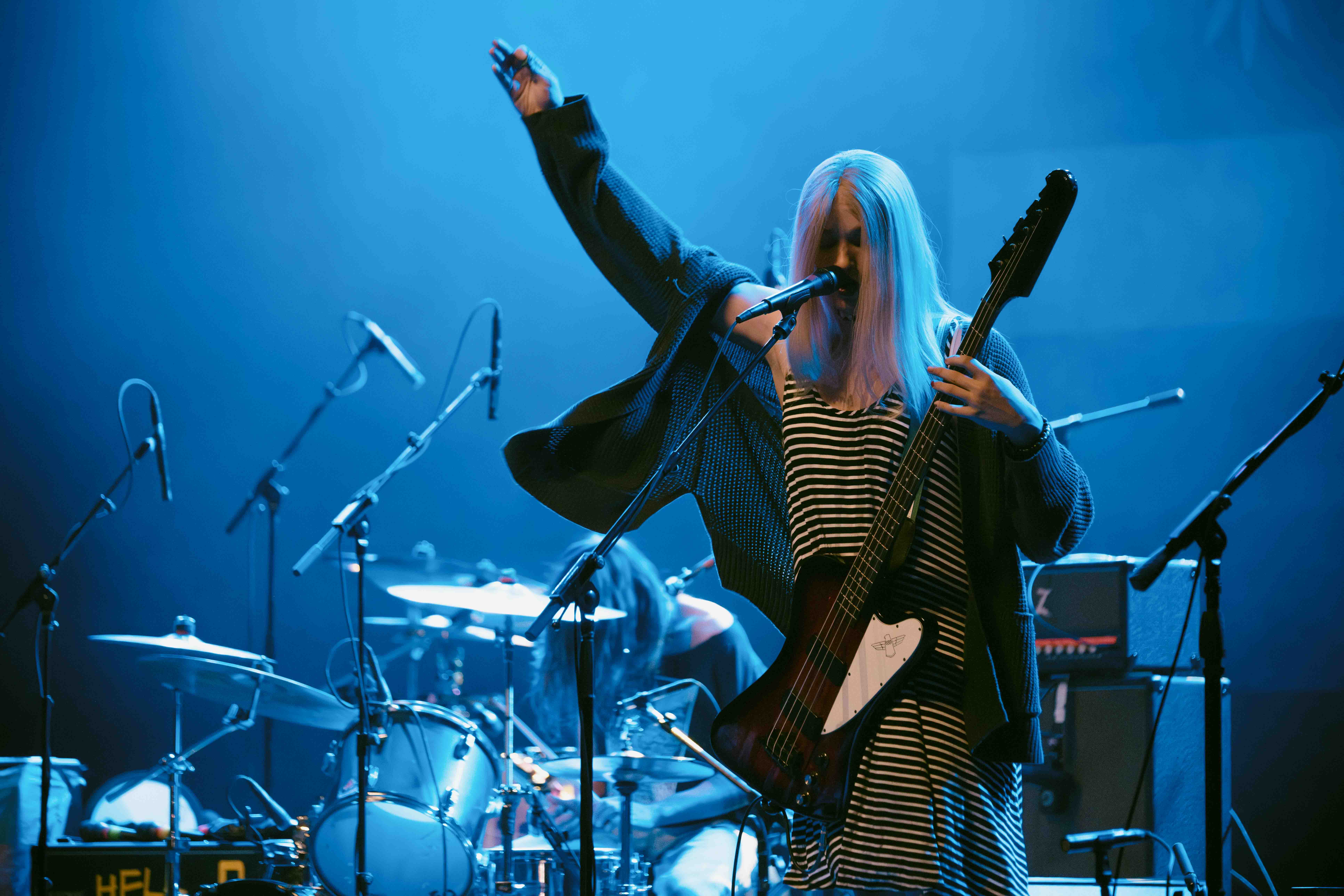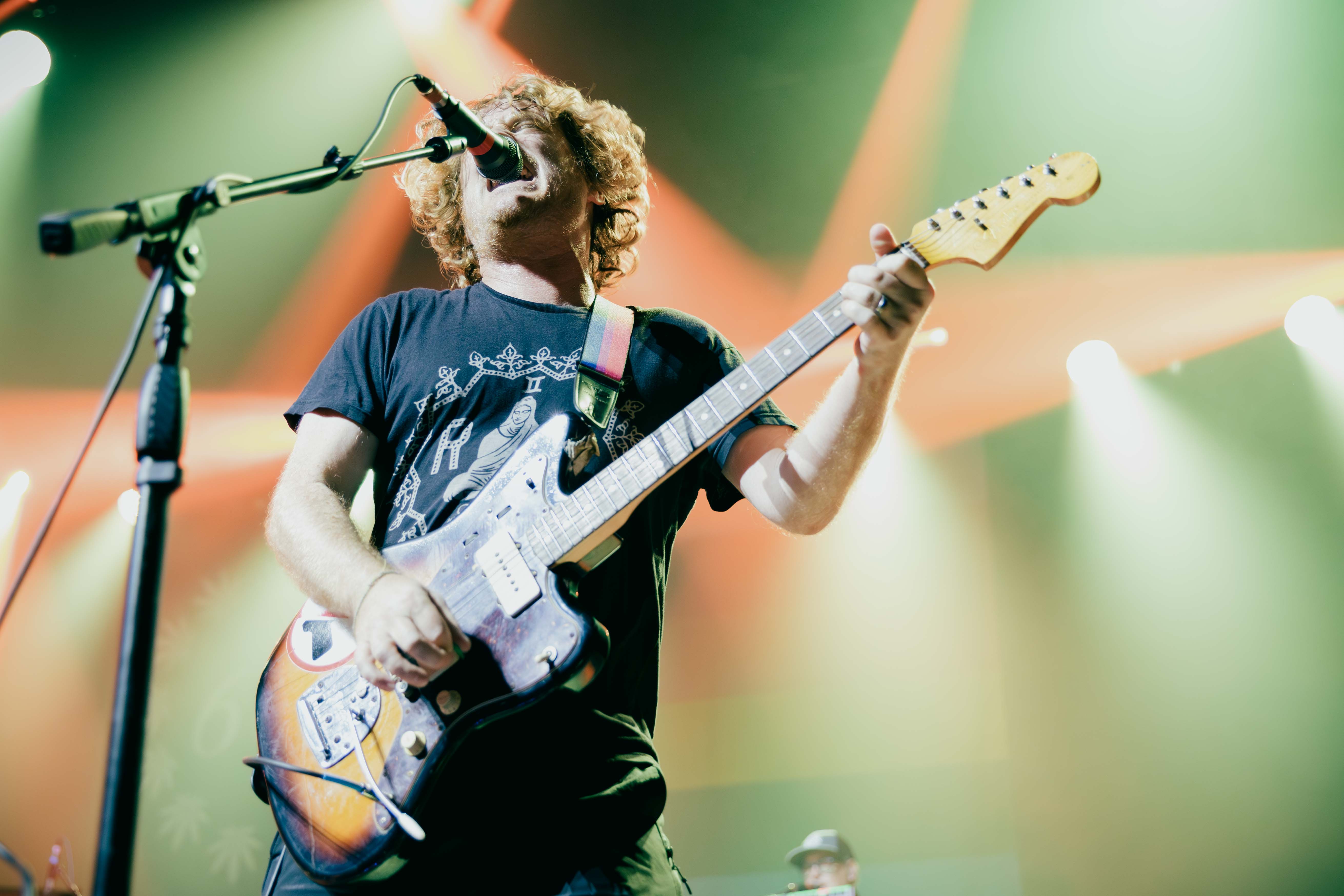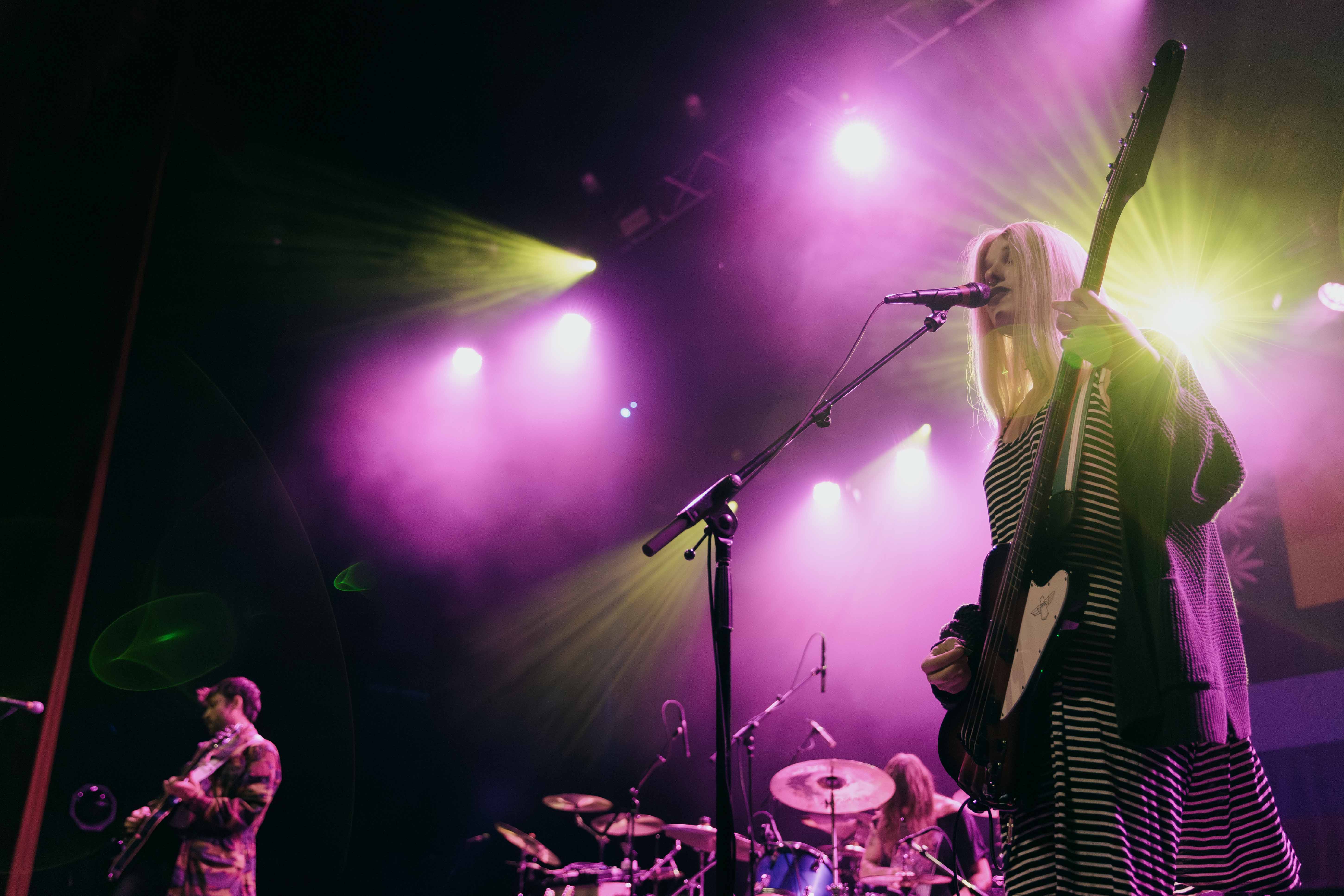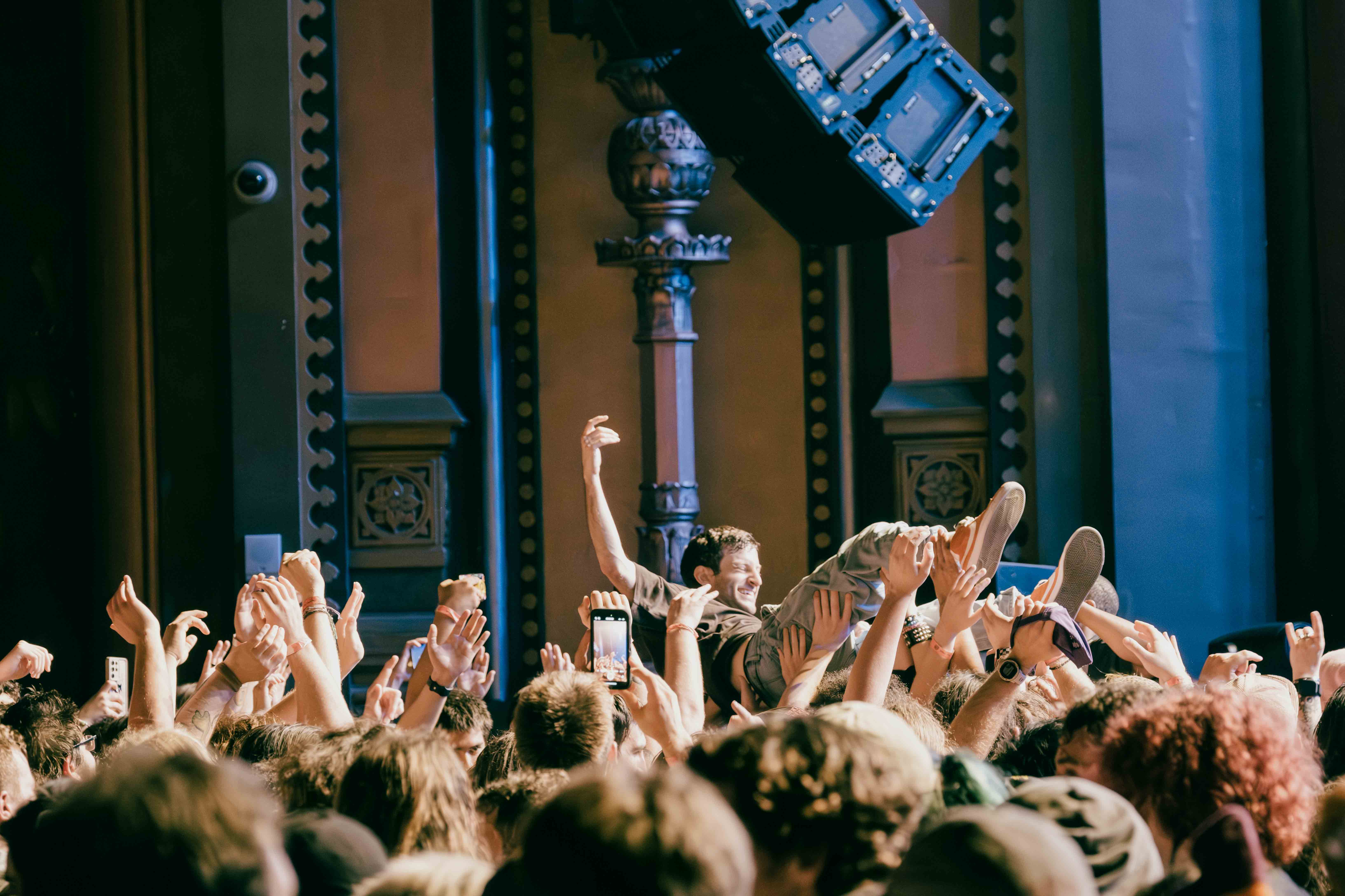 Near the end of the night, Babcock announced that they had prepared a surprise for the audience, and set to the familiar strains of “Thus Spake Zarathustra”, a homemade banner of black cloth and silver gaffer tape rose in the back of the stage, proclaiming “DOUBLE BAND”. So began the highlight of the night, with PUP welcoming Rosenstock and his entourage back on stage to collaborate for four songs. The two bands played together like old friends relishing the height of the party, with Rosenstock whirling around stage between the monitors and Babcock leaping off it for a brief crowdsurf, but the night was not yet finished–both bands invited opener Ekko Astral to share the stage with them as well and closed the night with a raucous cover of Alanis Morisette’s “You Oughta Know” that had concertgoers skipping and shouting out the exits of the Fox Theater–at least, those who didn’t stay for the impromptu dance part in the pit as “Hot to Go!” played post-concert.