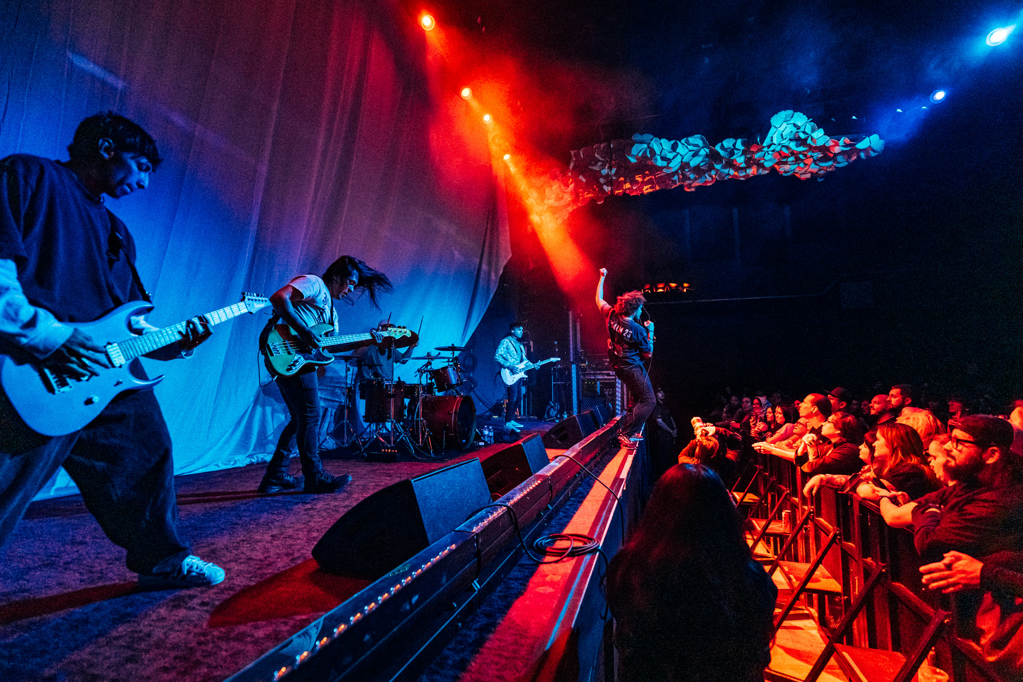 The night opened at 8:00 pm with Notions, who wasted no time making their mark. “This one’s more of a sensitive song, it’s called Confide,” their frontman, Kalan Beal, said as a sea of phone lights filled the room. Midway through, he climbed down to the rail, screaming face to face with the pit while their guitarist crowd surfed through a wall of hands, still playing. They closed their set with “You Got Me,” a final burst of raw emotion that left the crowd buzzing for what was next.