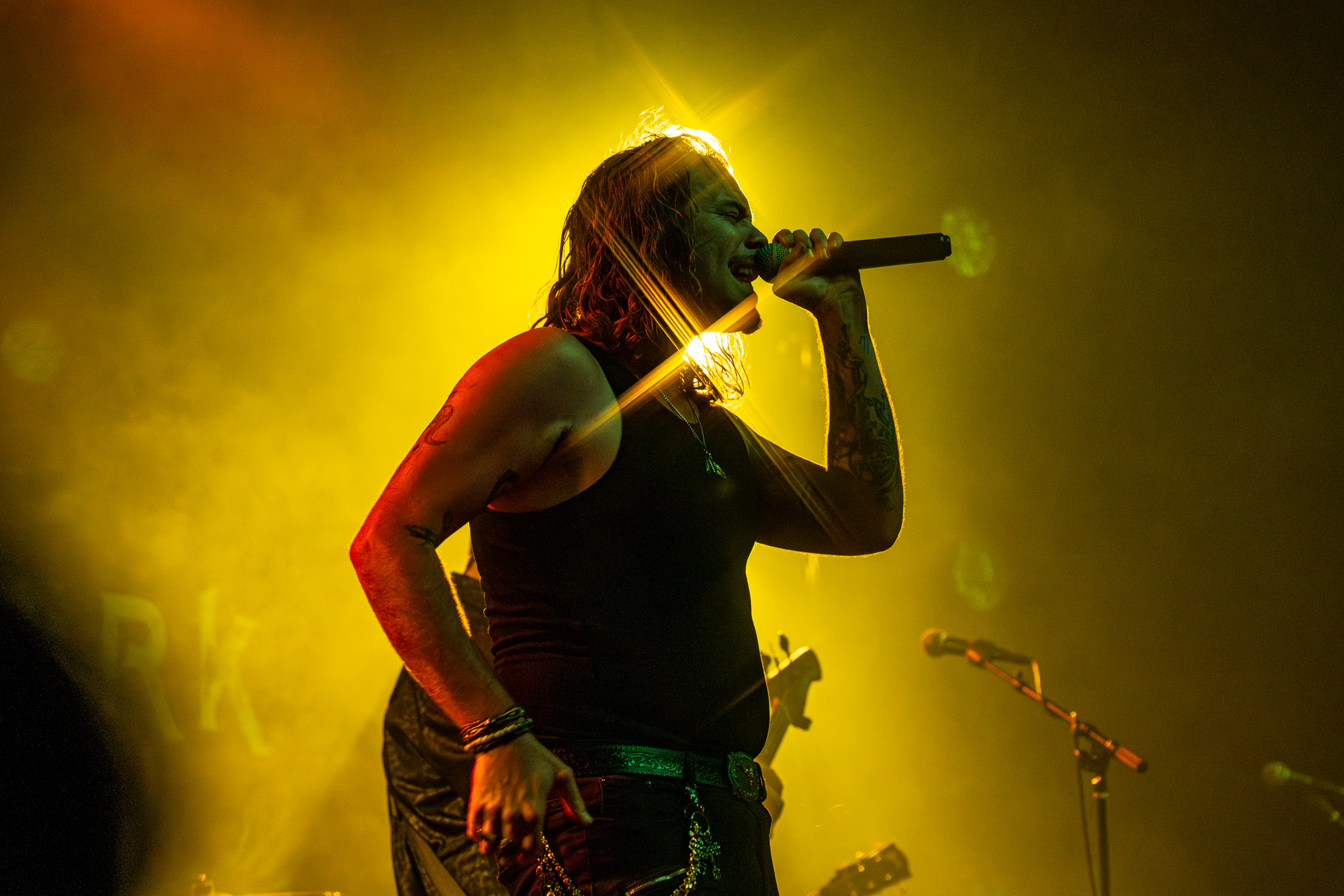At 7:50 pm, Mark Daly opened the night with a short but strong set. His voice carried the kind of grit that wins a crowd quickly, and his sincerity came through between songs. “From the bottom of our heart, America is the best place to play,” he said sincerely with a grin. He closed with “Better Off Alone,” thanked the crowd, and his band stepped off at 8:29 pm to well-earned applause.
