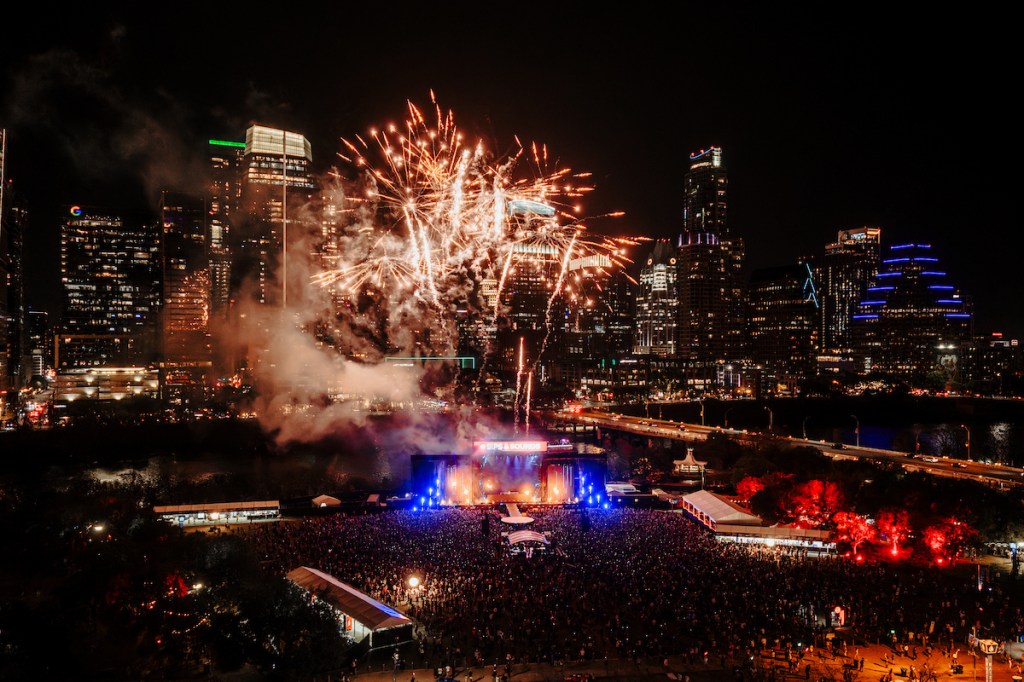 Then came the moment the entire night had been building toward. When Christina Aguilera stepped onto the Coca-Cola Stage just before 8:45 pm, the scale of the festival instantly jumped to arena level spectacle. From the crowd the full production came into view. Towering lighting rigs, bursts of pyro, and a rotating lineup of elaborate staging and lighting transformed the riverfront into a full theatrical show. Aguilera’s voice cut through the night air with the kind of power that reminds you why she has remained one of pop’s most commanding performers for decades. By the time the first chorus hit, thousands of voices across the lawn were singing every word back toward the stage. Looking up from the crowd, the Austin skyline framed the entire performance as the stage exploded with light and color. The final notes rang out, and fireworks lit up the downtown night sky as the crowd buzzed from the spectacle they had just witnessed.