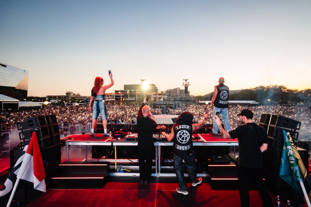 As the sun began dropping behind the skyline, the entire festival started shifting into nighttime mode. Major Lazer Soundsystem took over the Coca-Cola Stage with Diplo behind the decks. Massive lighting rigs fired bursts of neon across the park while the bass rolled across the water and echoed off the buildings across the river. At one point Diplo shouted that Austin was his favorite city in America before dropping “Lean On,” turning the entire lawn into a dance floor that stretched nearly to the shoreline.