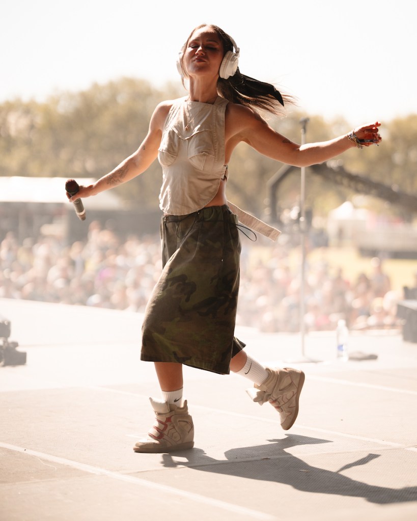 By the time Ravyn Lenae stepped onto the Coca-Cola Stage, the sun had softened slightly and the crowd had noticeably doubled. Her voice floated effortlessly across the park as she reminded everyone early in the set to stay hydrated in the Texas heat. Standing along the side of the stage you could see the full picture of the festival come into focus. Fans swaying in the grass and the skyline glowing softly in the distance as Lenae’s smooth blend of soul and pop carried across the water.