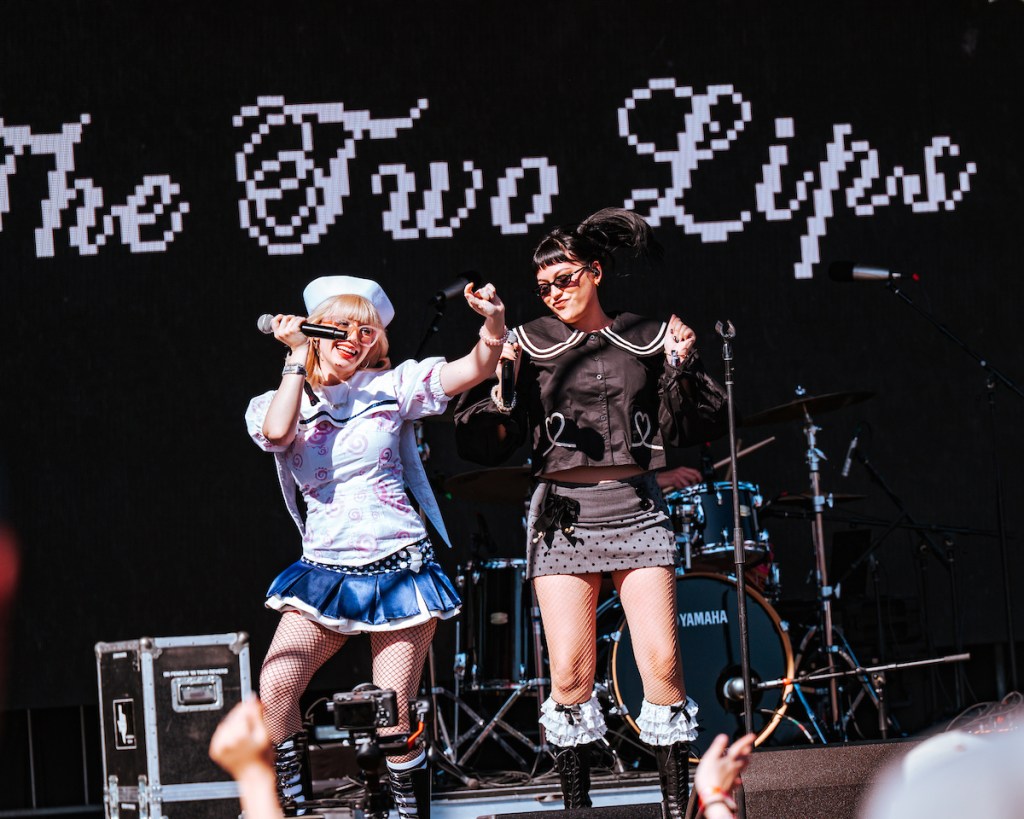 Meanwhile, the SXSW Stage leaned into something more intimate with The Two Lips. Their set felt playful and self aware, acknowledging the internet era audience that had helped build their following. At one point they joked about bringing their TikTok fans into real life before ripping into a surprisingly emotional cover of No Doubt’s “Don’t Speak.” Later they warned the crowd they were about to play their “emo song,” encouraging the front rows to start head banging as guitars kicked in and the afternoon crowd continued to grow.