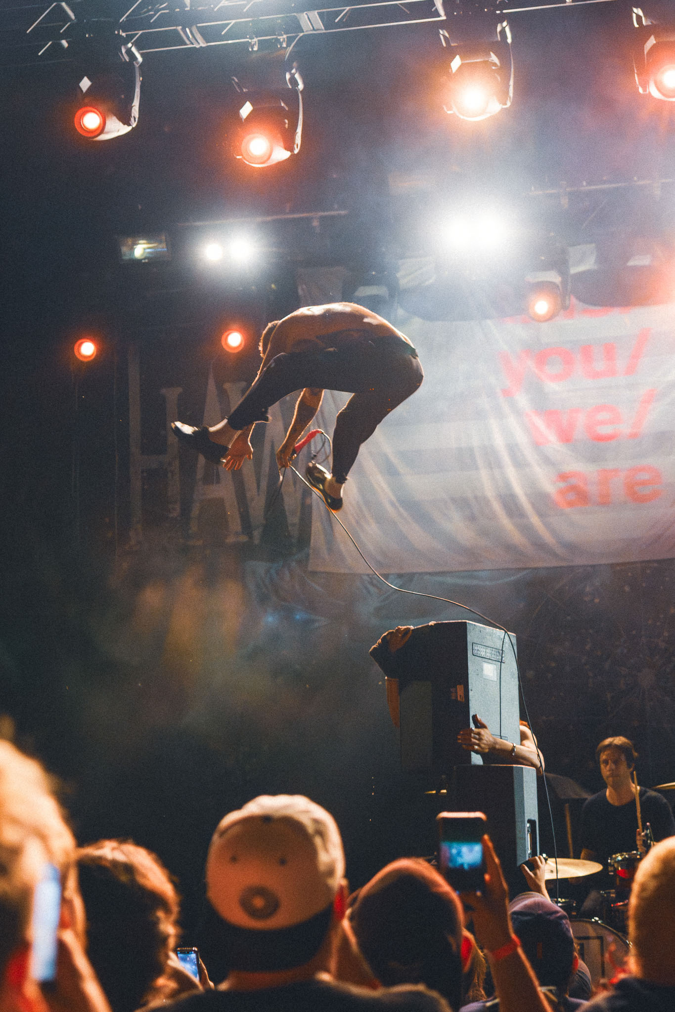 Creeper opened at 7:00 pm, the stage washed in red light. The Southampton outfit has spent years building something well beyond what a punk band is expected to produce, weaving gothic drama and richly layered storytelling into their music, and the crowd felt every bit of it. Letlive. followed, and anyone who has witnessed the Los Angeles band live knows that what comes next is never conventional. Frontman Jason Butler grabbed a long mic cord midway through the set and stepped directly into a mosh pit, working the floor while the room crashed around him. Just as the energy peaked, he climbed a towering stack of speakers and launched himself off into the crowd below. Before wrapping, he looked out and said simply, “Every man out here, I see you. And thank you for making it safe.” He dedicated “Mother” to the crowd, and the quiet of that moment landed harder than anything before it. Letlive. closed at 8:25 pm, leaving the floor shaking.